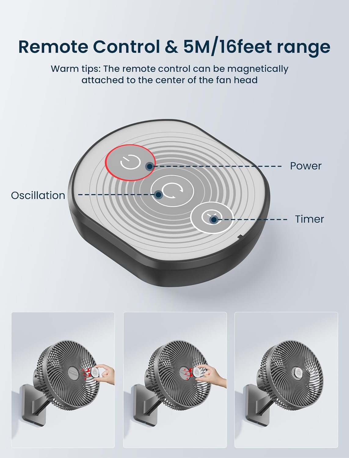 10 Inch Wall Mount Oscillating Fan with Remote and Timer, Small Bedroom RV Fan with 4 Speeds, Quiet Operation,90°Oscillation, Adjustable Tilt,5.92 ft Wire, 12 V, Cooling Bathroom Wall Mounted Fans