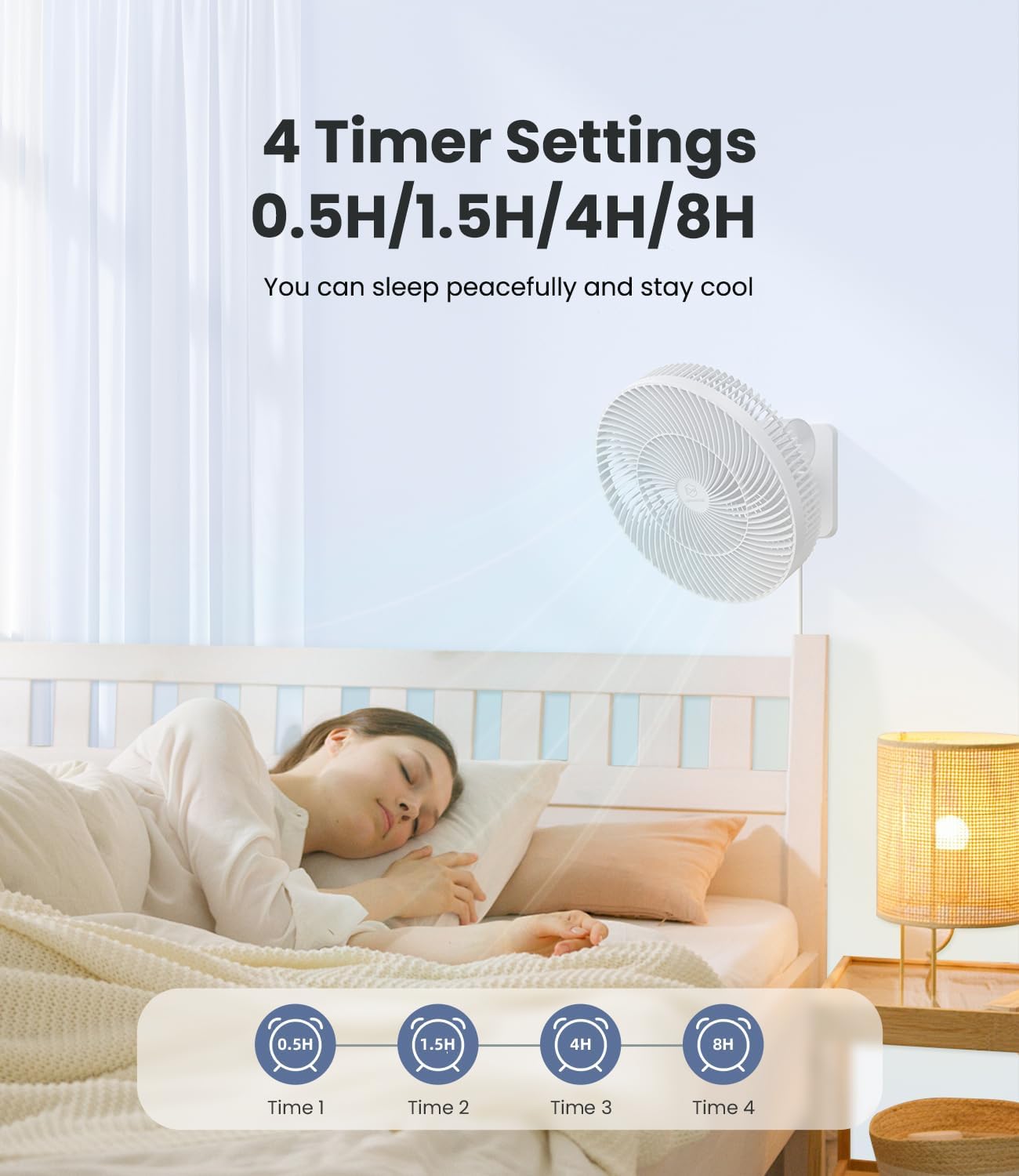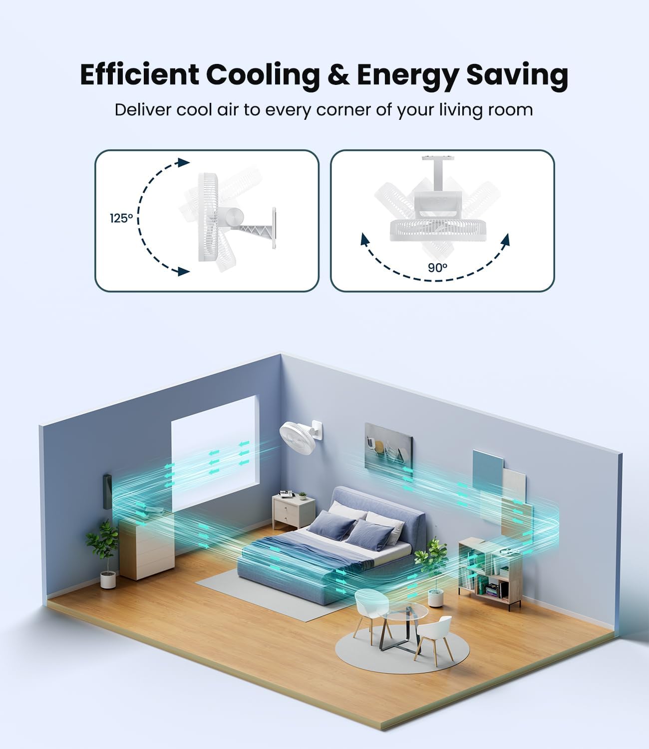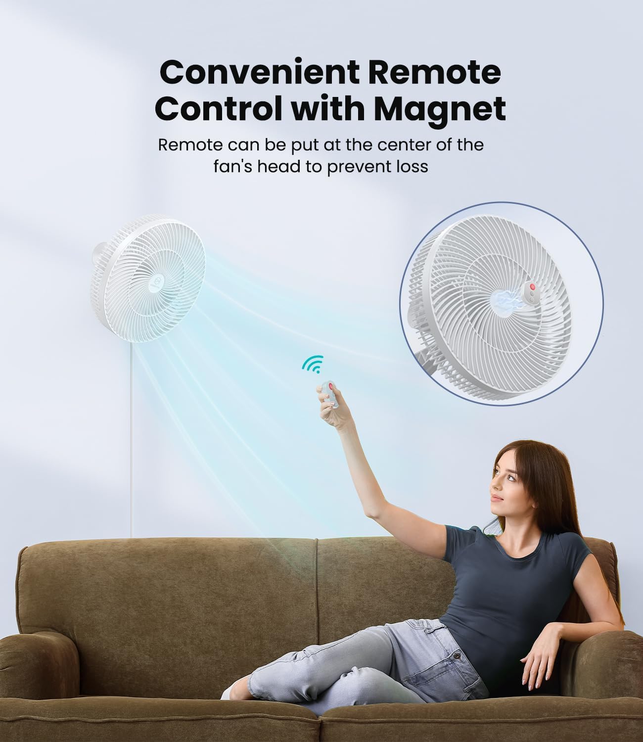 12″ Wall Mounted Fan with Remote Control, 90° Oscillating, 4 Speeds Timer and Adjustable Tilt, 8.2ft Cord, Quiet, Ideal for Home, Bedroom, Gym, Garage, RV, Office-White