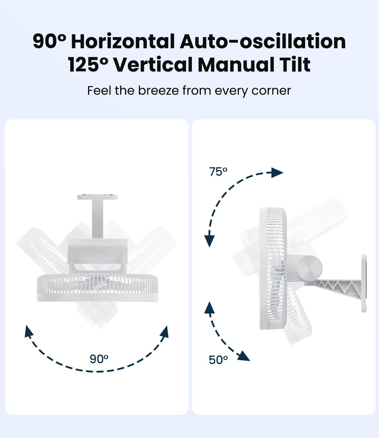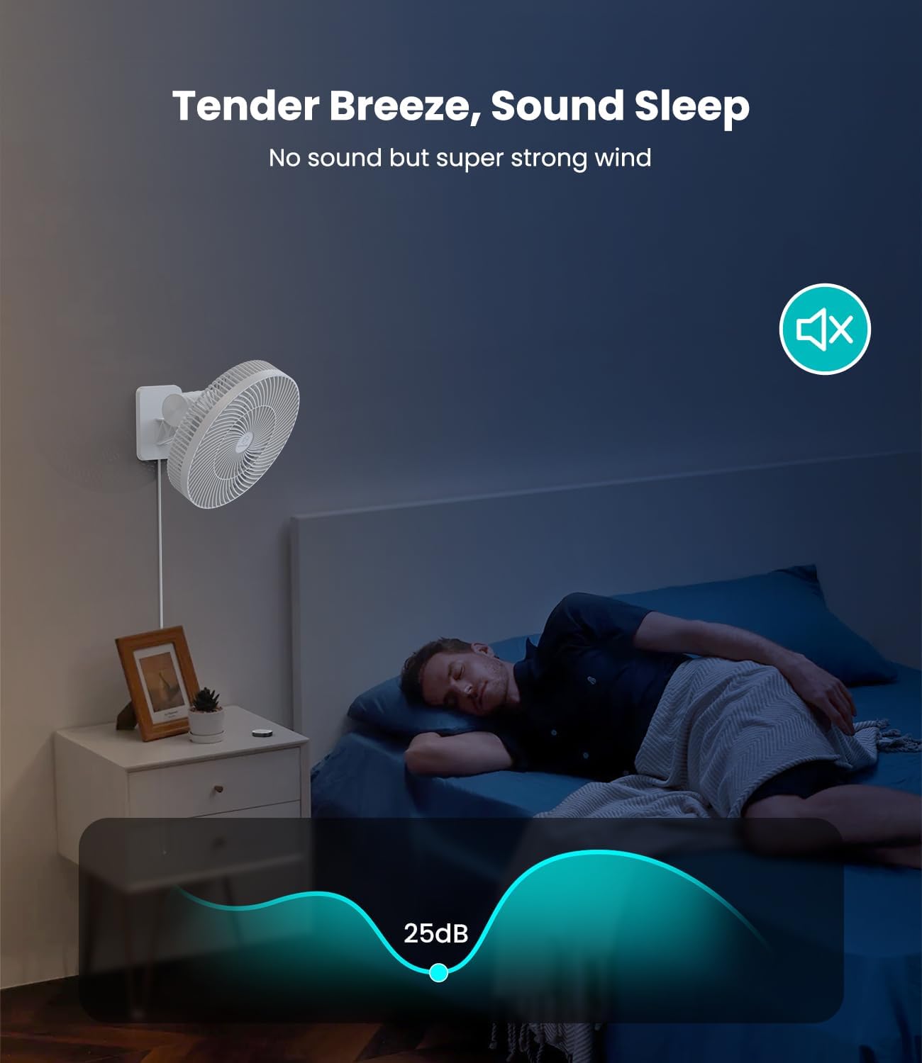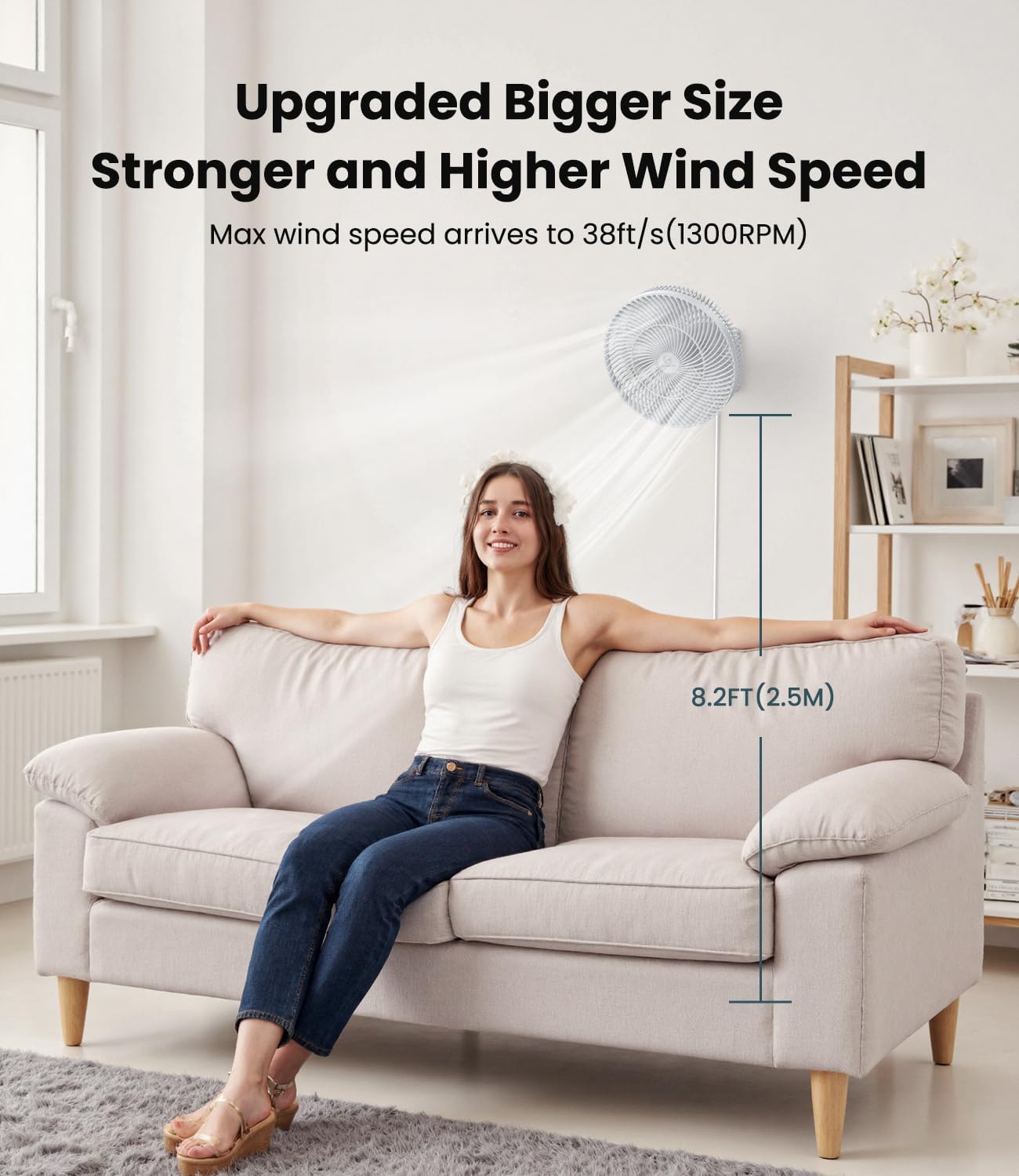 12″ Wall Mounted Fan with Remote Control, 90° Oscillating, 4 Speeds Timer and Adjustable Tilt, 8.2ft Cord, Quiet, Ideal for Home, Bedroom, Gym, Garage, RV, Office-White