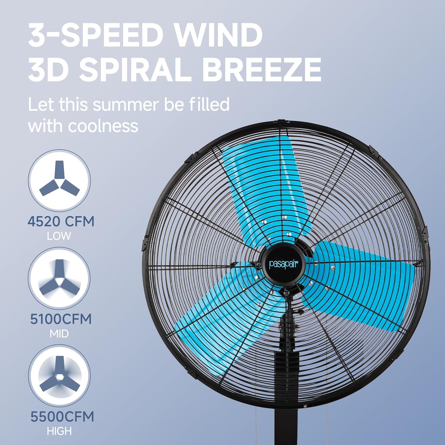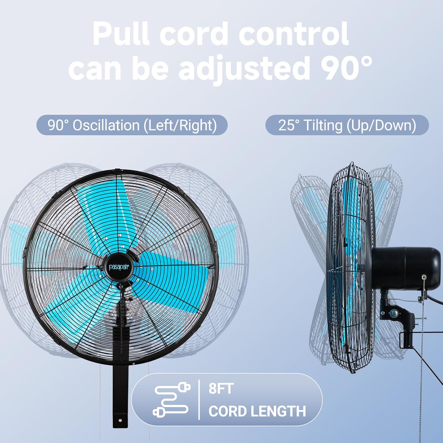 20″ Wall Mount Fan Oscillating High-Velocity Fans 5500 CFM, 3 Speed Industrial Wall Fan with 90°Horizontal 30°Tilt Oscillation for Warehouses, Workshops, Factories, Commercial Indoor Greenhouses