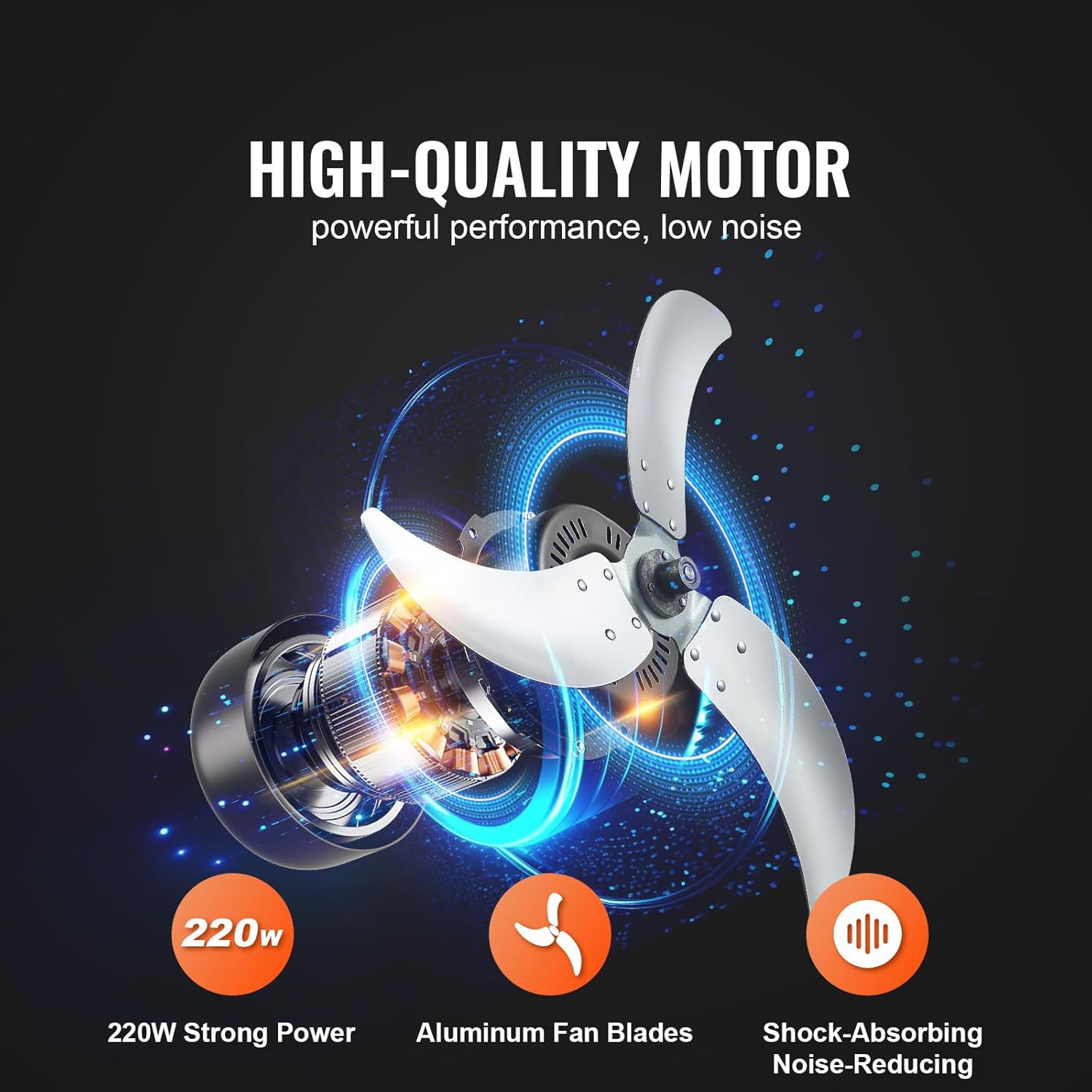 The 30-Inch High Velocity Industrial Drum Fan is designed for effective ventilation in various commercial spaces, including warehouses and workshops. It features a powerful 220W motor that delivers an impressive airflow of up to 13,000 CFM. This fan operates at three adjustable speeds, allowing you to customize airflow according to your needs. The low-noise performance ensures minimal disruption, making it suitable for environments requiring quiet operation.