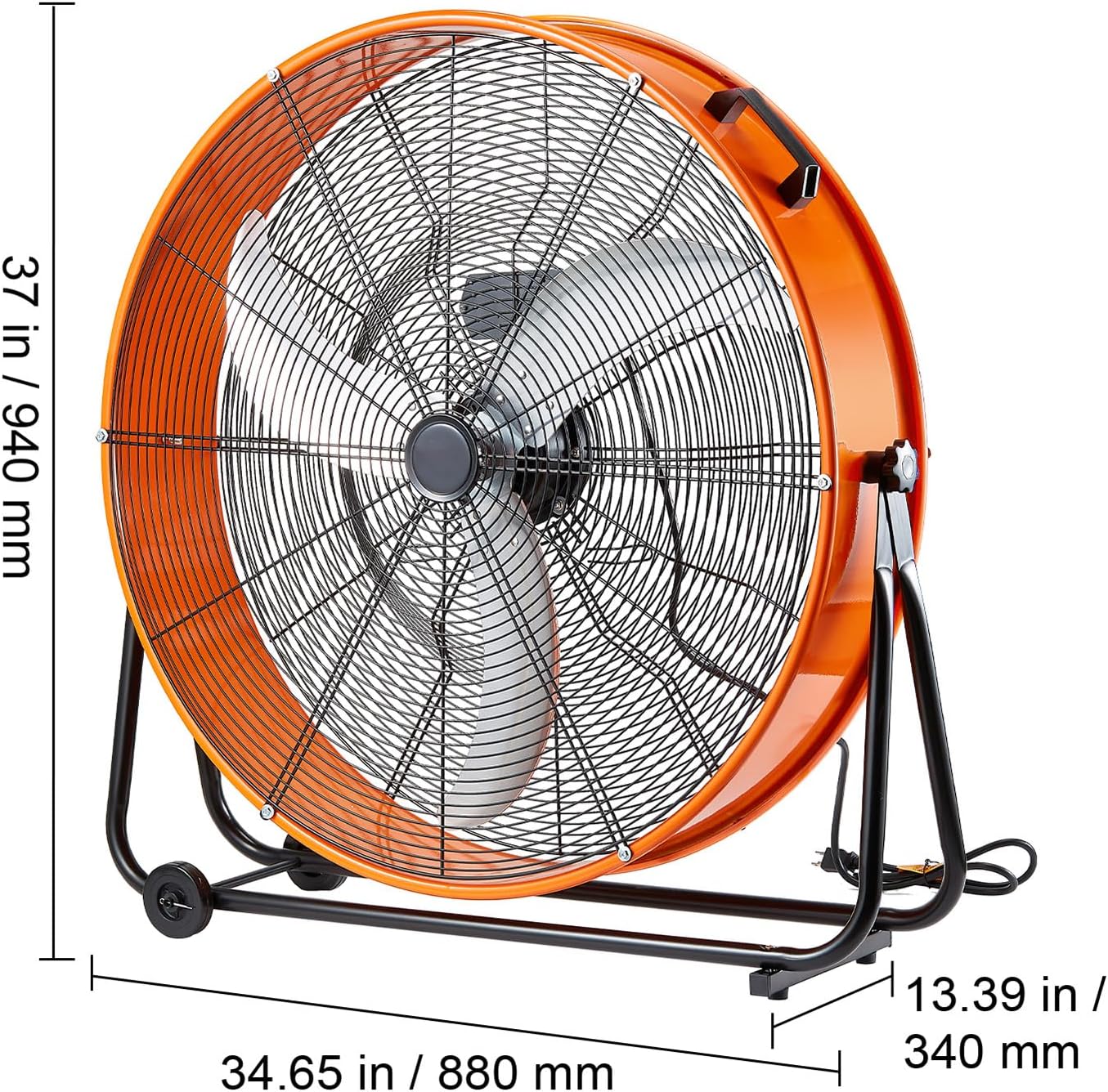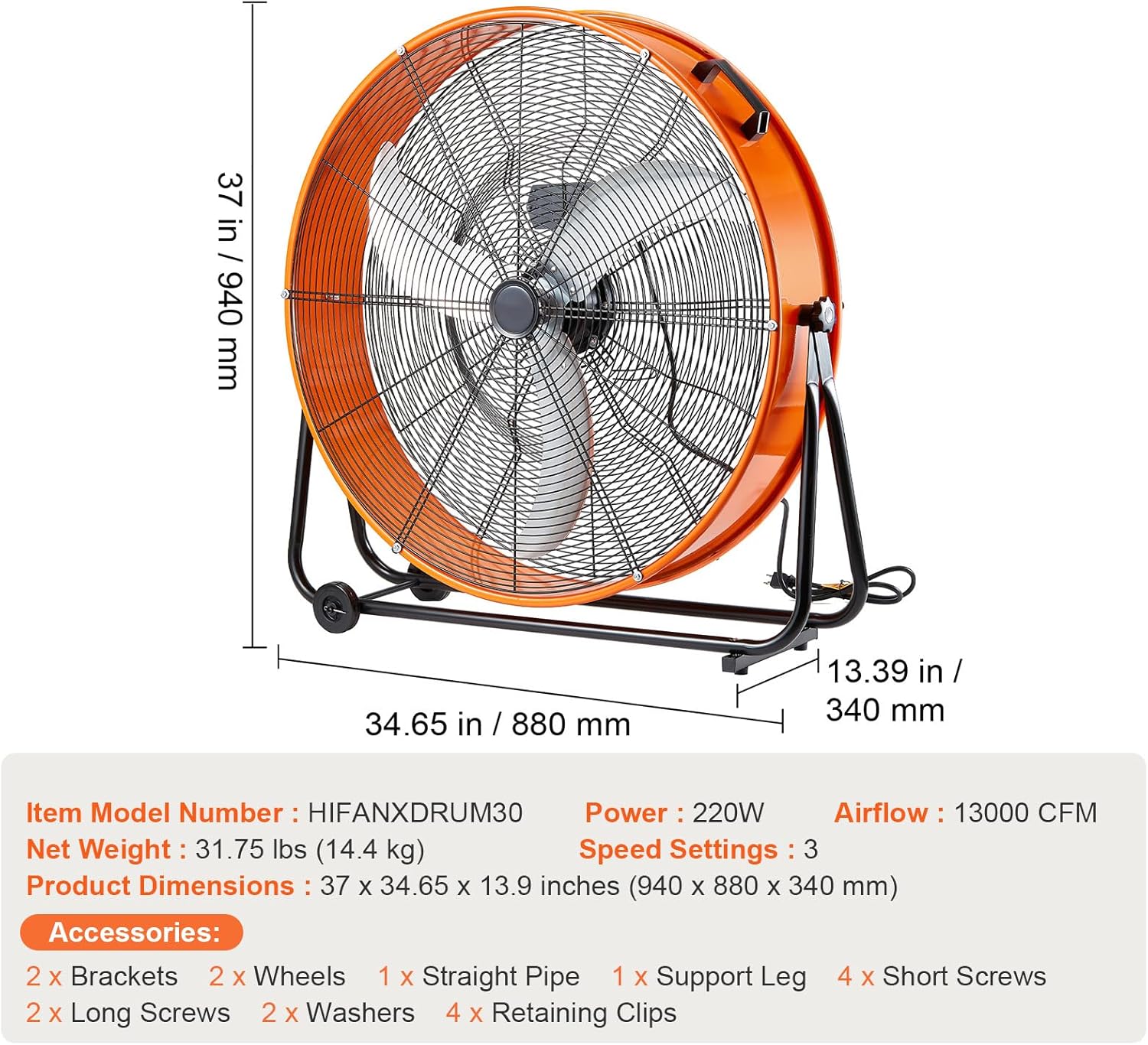 30-Inch High Velocity Industrial Drum Fan, Heavy-Duty 3-Speed Floor Fan with 360° Adjustable Tilt for Commercial Spaces, Warehouses, Workshops, and Basements