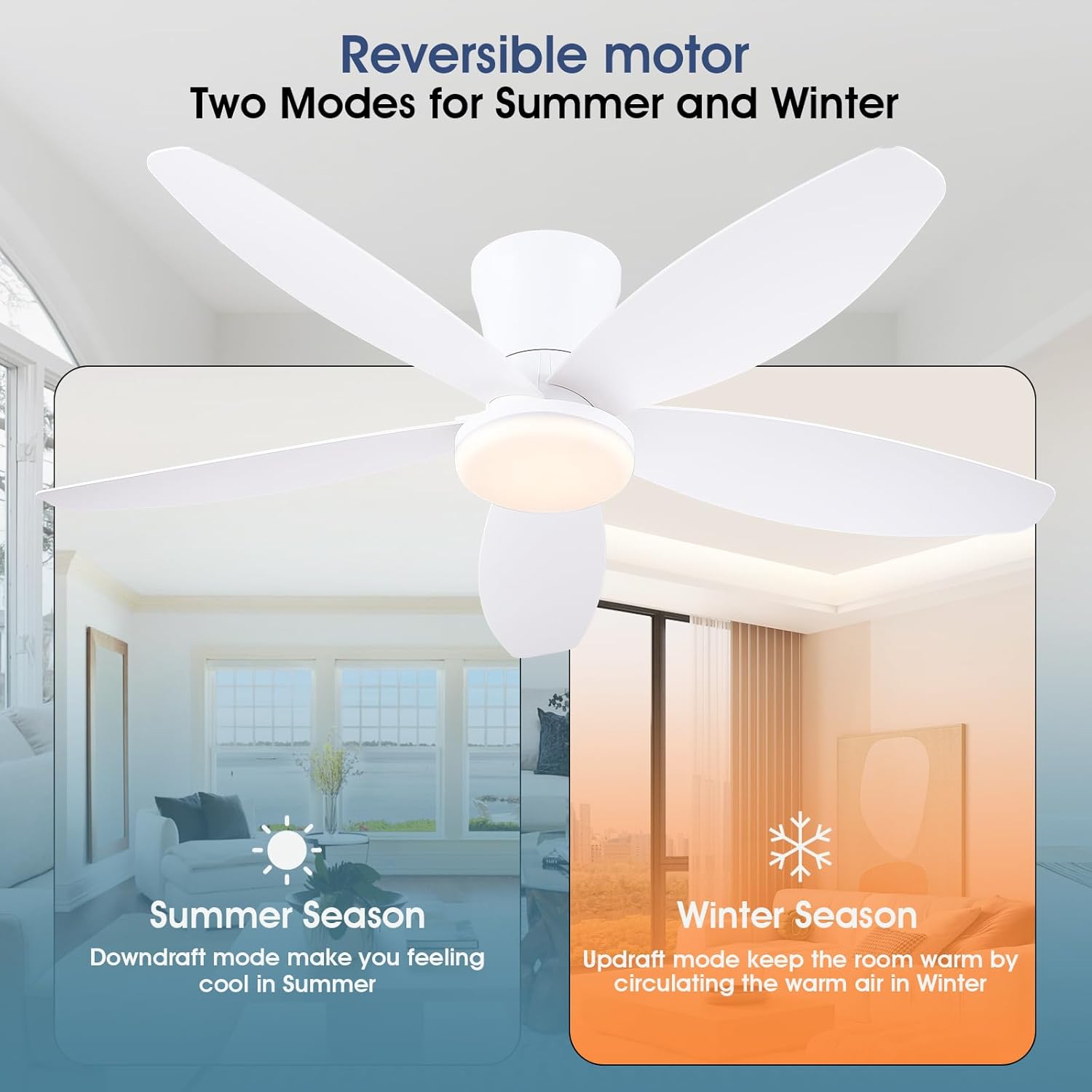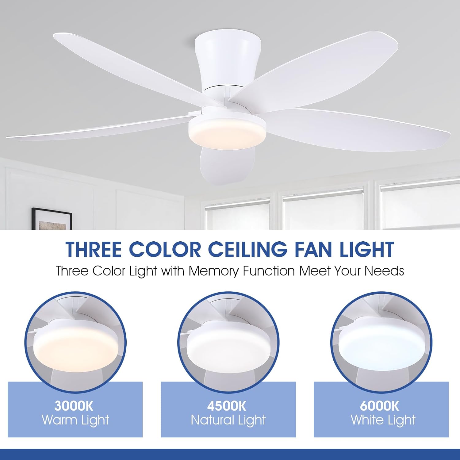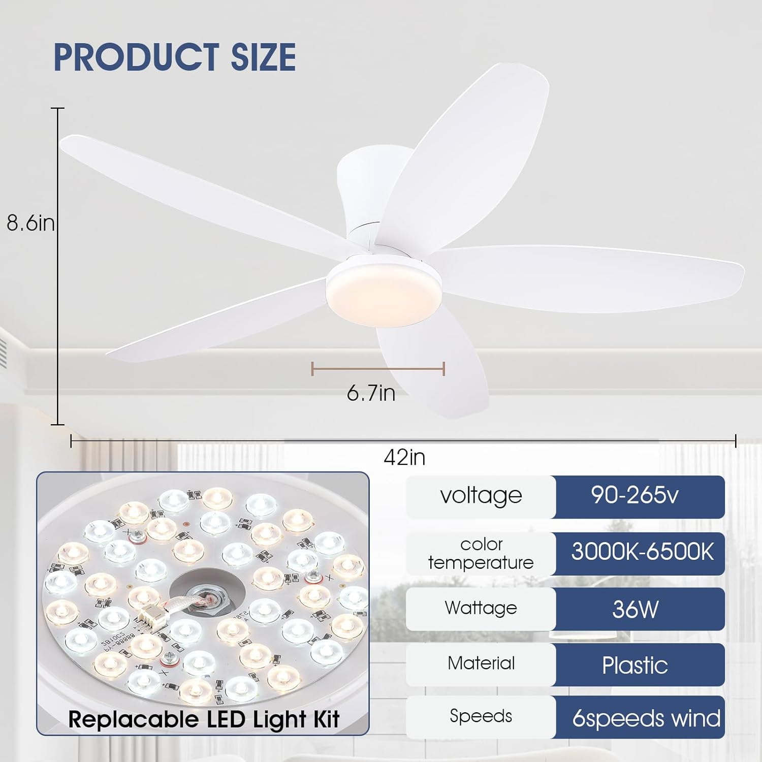 42″ Ceiling Fans with Lights-Low Profile Ceiling Fan with Light and Remote/APP Control,Flush Mount,DC Reversible,LED Dimmable Modern Ceiling Fans for Bedroom,Indoor/Outdoor Patio Use(White)