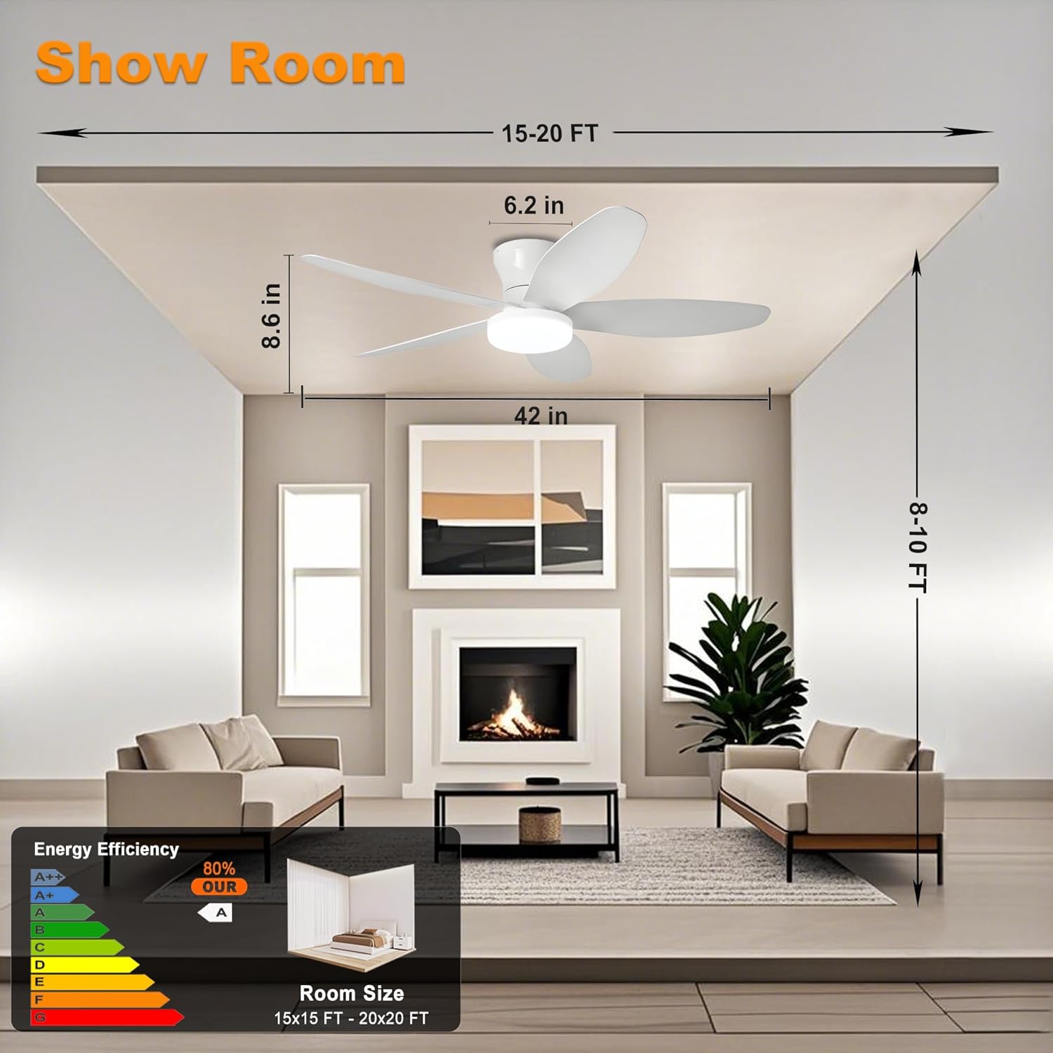 - Low profile design suitable for rooms with low ceilings
