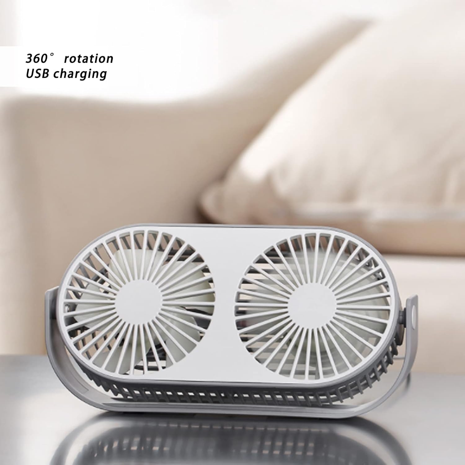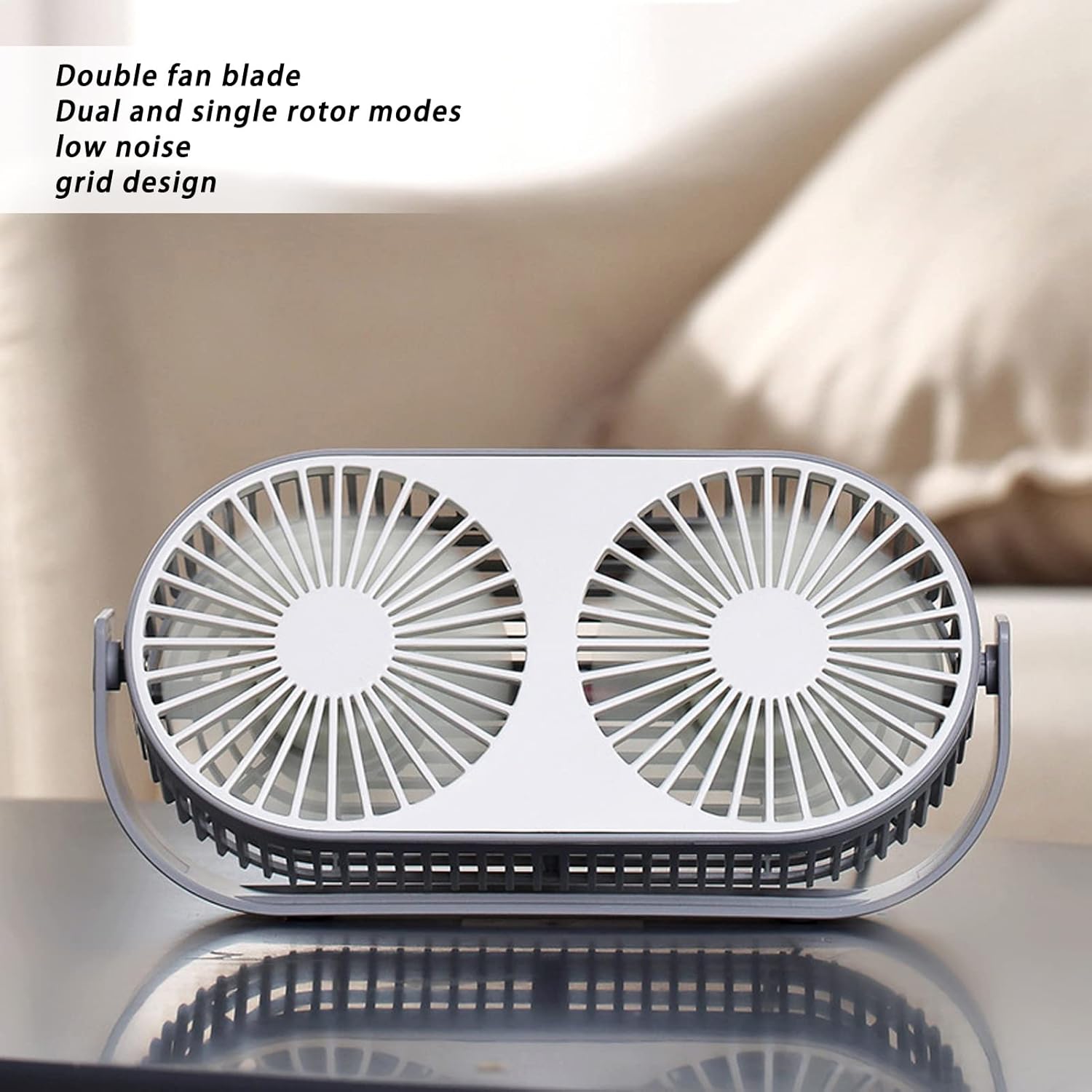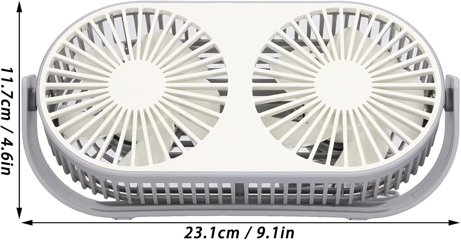 9.1in Twin Window Desk Fan 360?? Rotation USB Charging Double Head Fan Low Noise Grid Design Mini Desk Fan USB for Outdoor,Double Fan, Indoor, Commute, Office, Travel, Double Fan, 9.1in Twin Wind