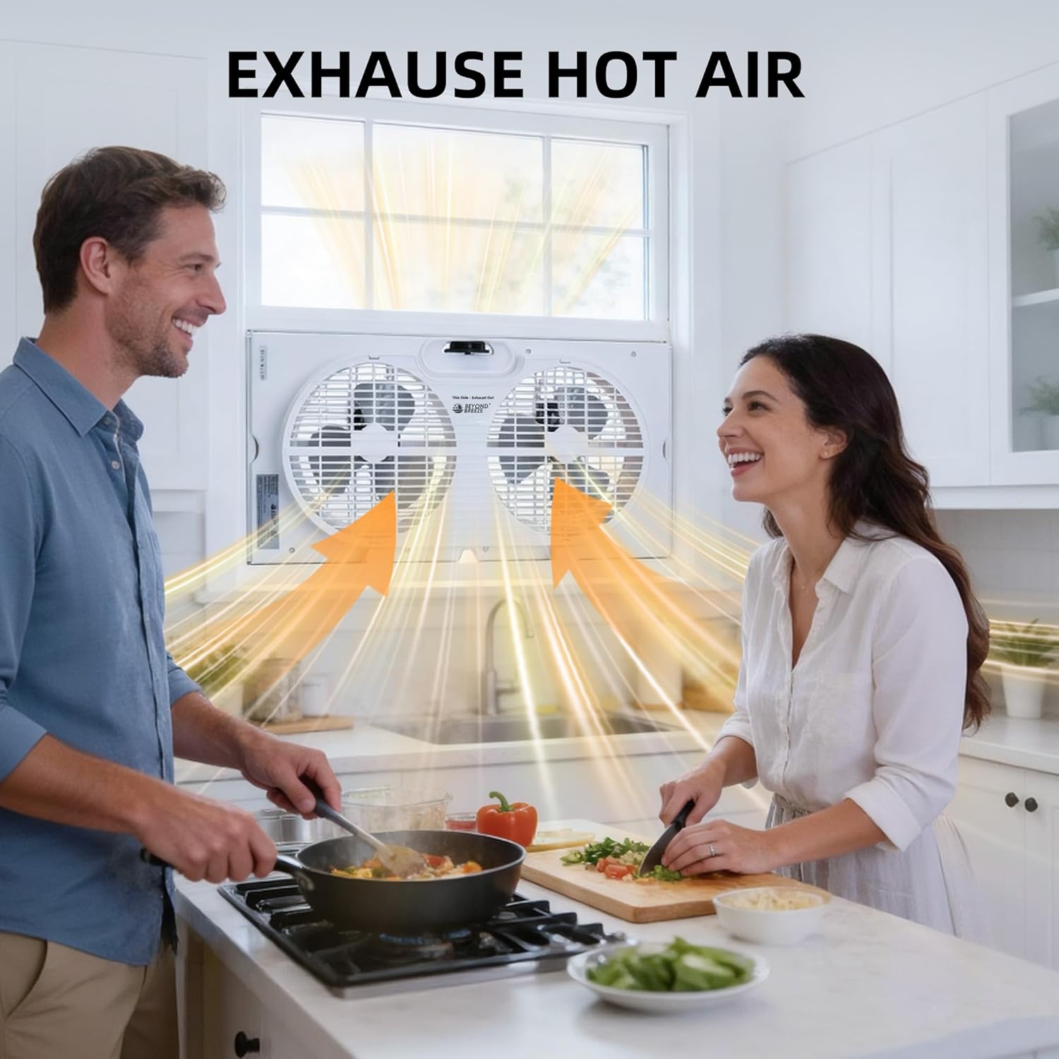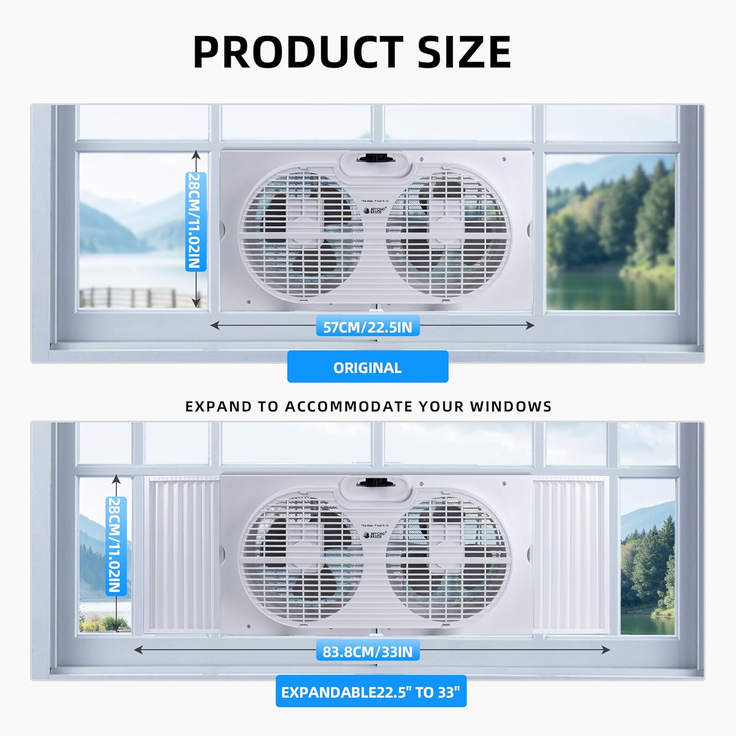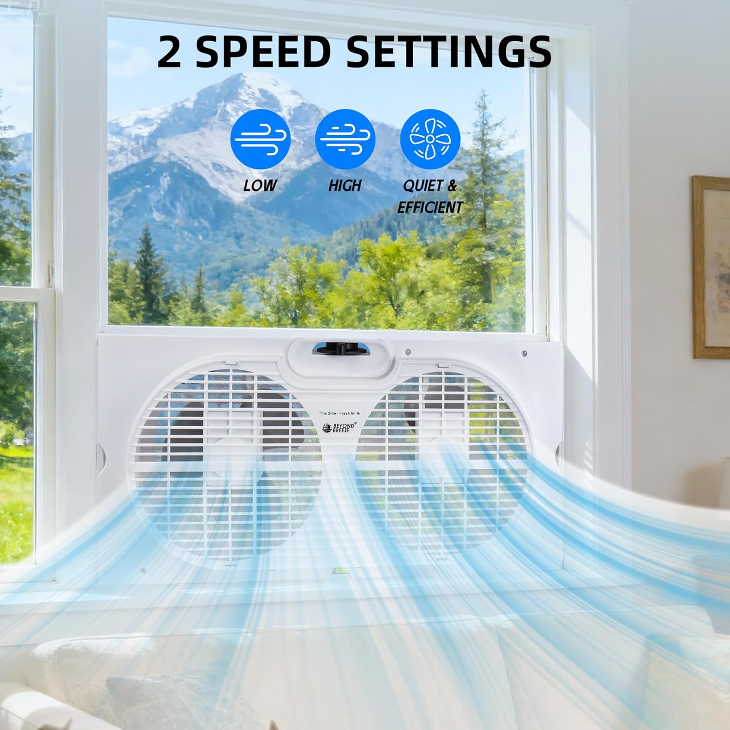 BEYOND BREEZE 9 Inch Twin Window Fan with 2-Speed Settings, Dual Exhaust Fan with Adjustable Width for Home Kitchen