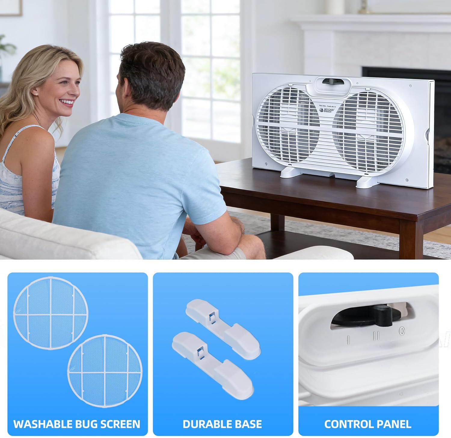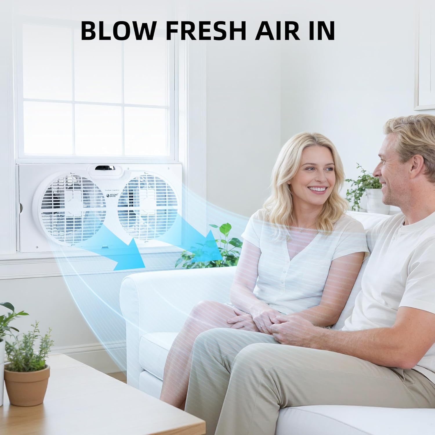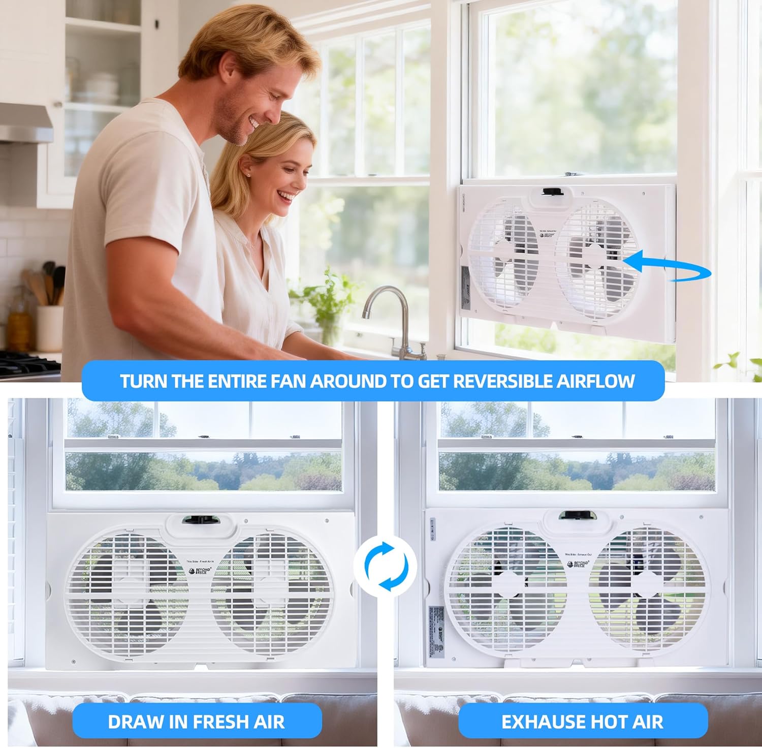 BEYOND BREEZE 9 Inch Twin Window Fan with 2-Speed Settings, Dual Exhaust Fan with Adjustable Width for Home Kitchen