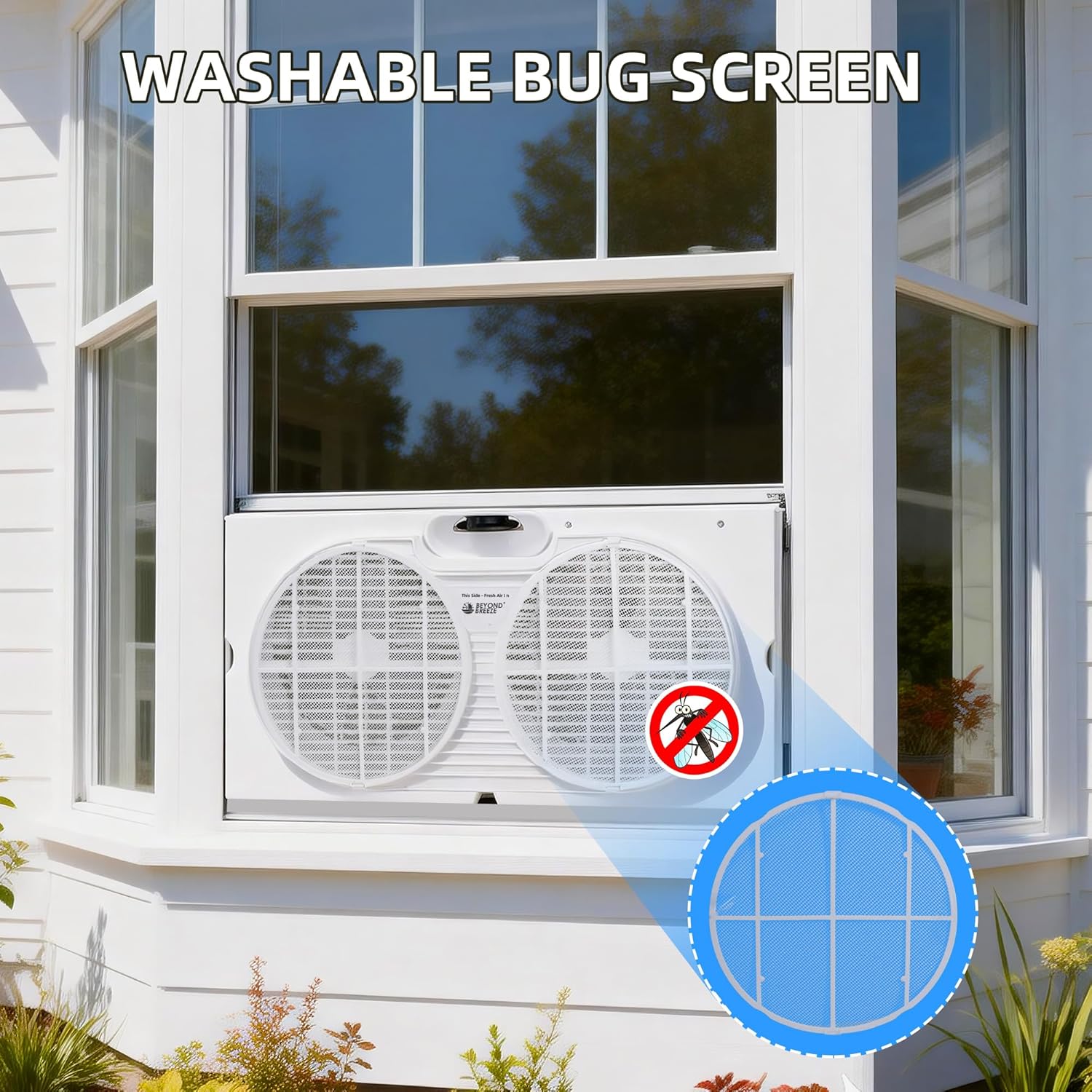 The BEYOND BREEZE 9 Inch Twin Window Fan is designed to enhance your comfort with its dual speed settings. Whether you prefer a gentle breeze or a stronger airflow, this fan adapts to your needs. The adjustable side panels fit windows ranging from 22.5" to 33", making installation straightforward and secure. Its versatility allows it to be used as a tabletop fan, and the removable mesh screen simplifies maintenance by keeping dust and bugs out.