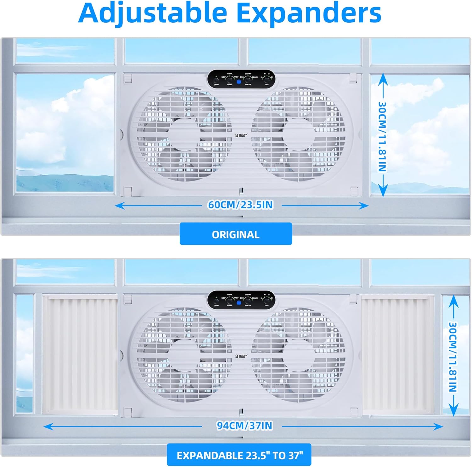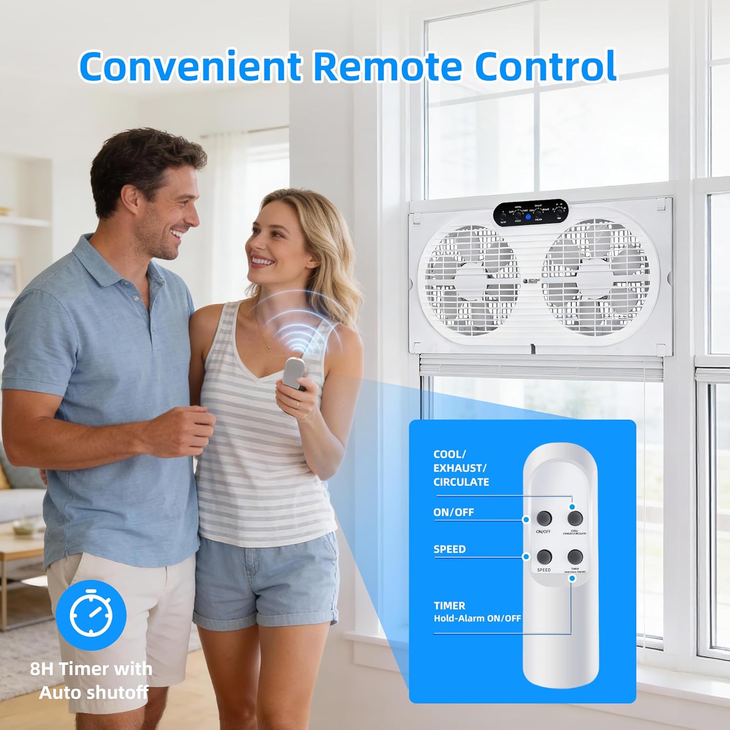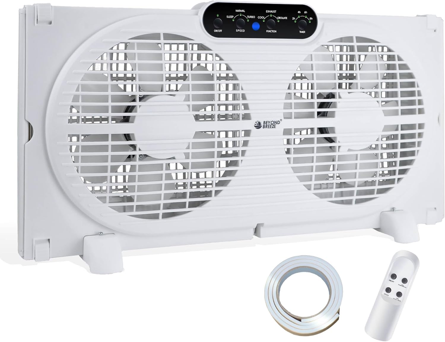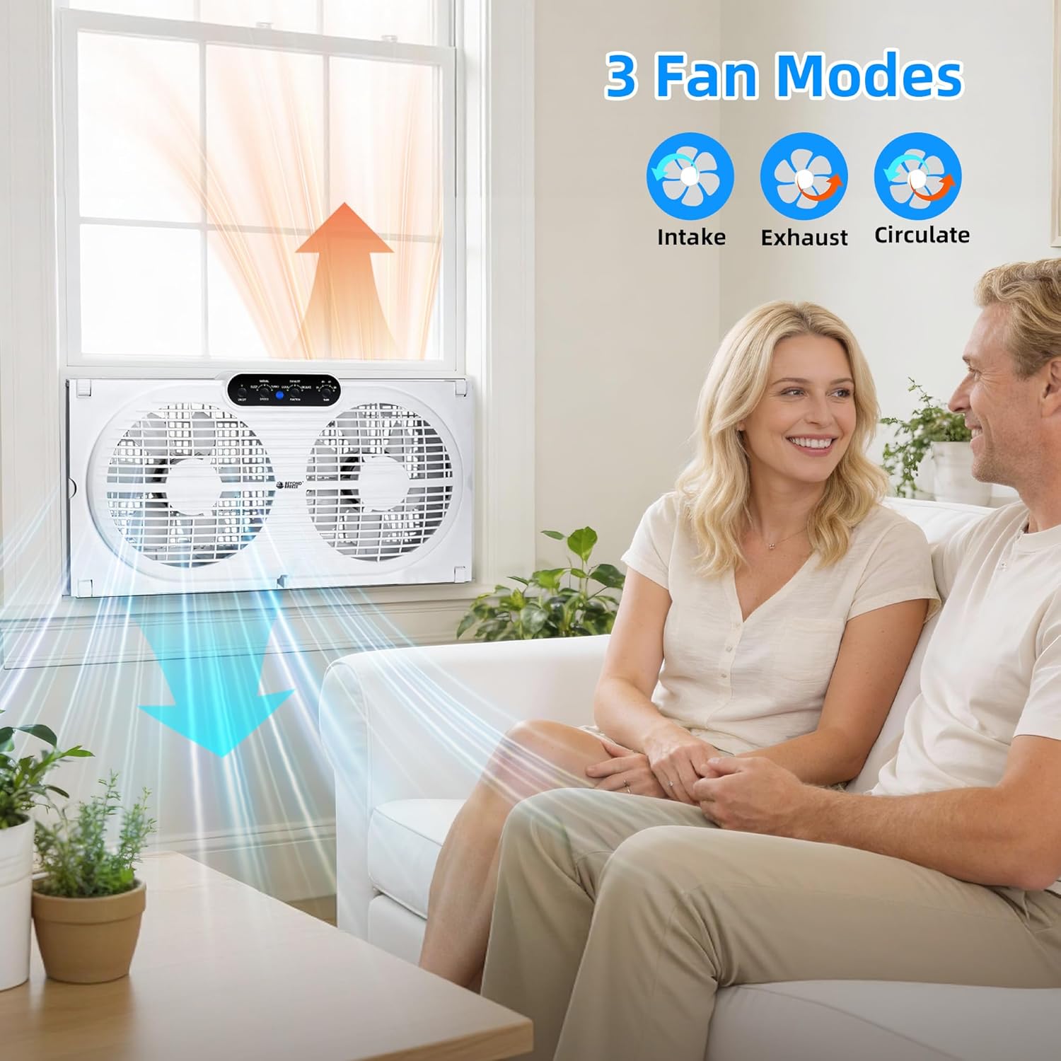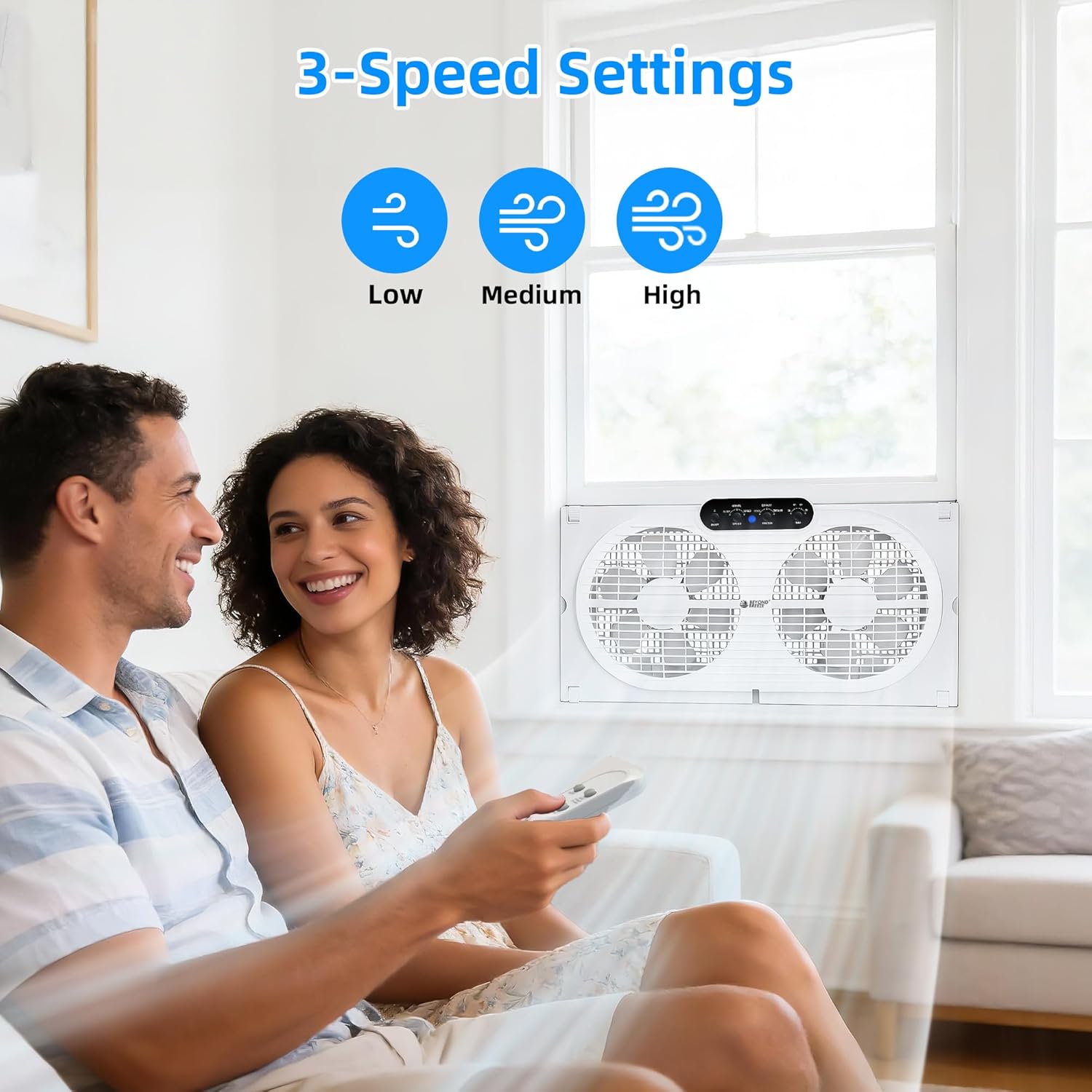 The BEYOND BREEZE Twin Window Fan is designed to enhance your indoor air quality with its versatile three-in-one modes. You can easily switch between cooling fresh air, exhausting stale air, or circulating air for optimal comfort. The fan's adjustable width allows it to fit securely in most standard windows, expanding from 23.5" to 37". With the included remote control, you can adjust the speed, select modes, and set a timer from across the room.