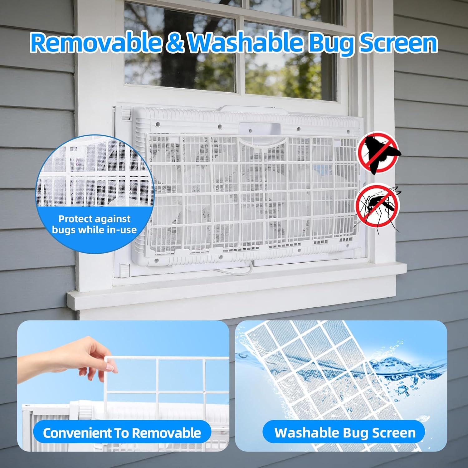 This fan operates quietly, ensuring a disturbance-free environment while efficiently projecting air throughout your space. Additionally, it features an 8-hour energy-saving timer with auto shut-off, promoting energy efficiency and peace of mind. The removable and washable bug screen helps keep your indoor air clean and fresh.
