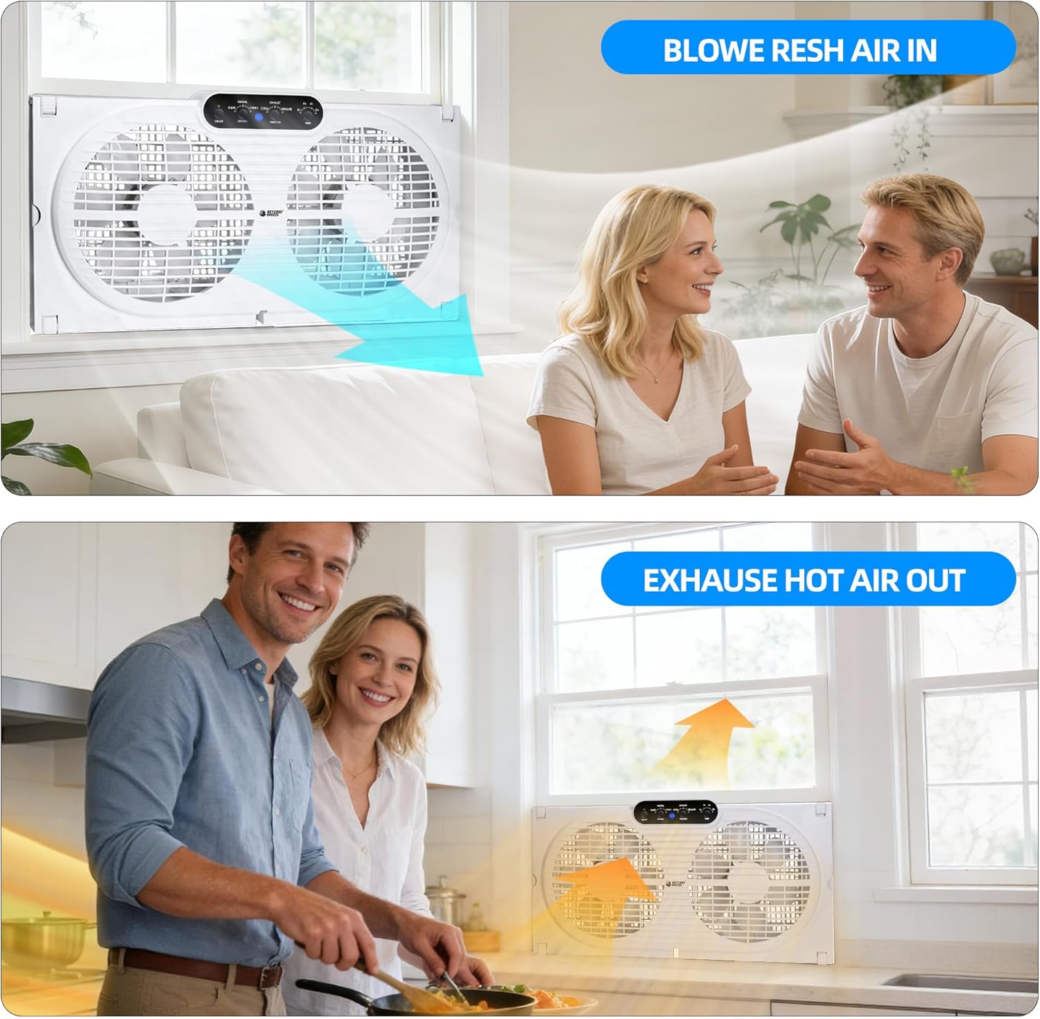 BEYOND BREEZE Twin Window Fan with Reversible Airflow, 9-Inch Window Fan with Remote Control and 3 Speeds, Expandable Window Exchaust Fans for Home Bedroom