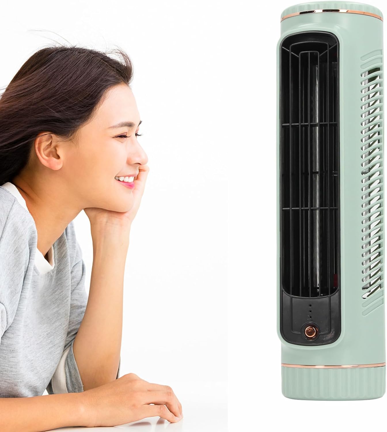 Bladeless Tower Fan Desktop Portable Cooler Fan, Quiet Rechargeable Standing Cooling Fan 3 Speeds Adjustable, 10.5in Bladeless Fan for Home Bedroom Office Table Cooling Fan (Green)