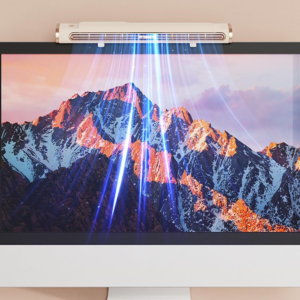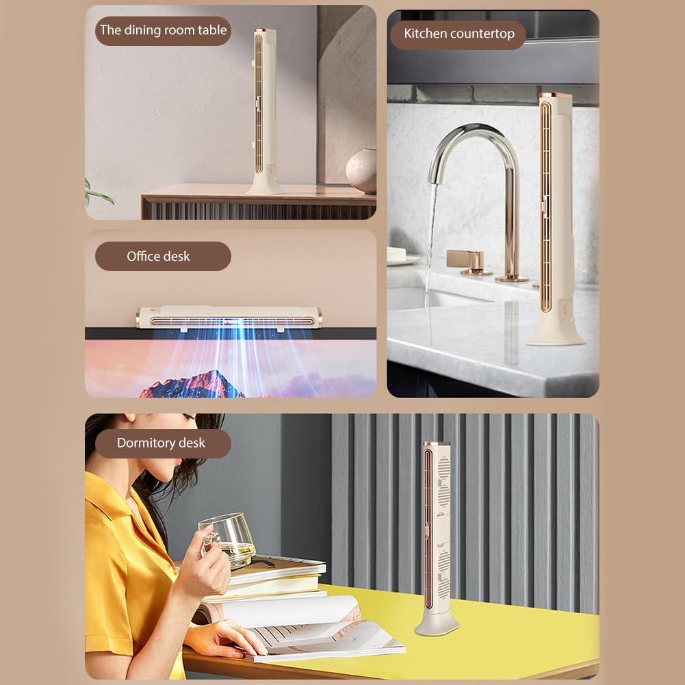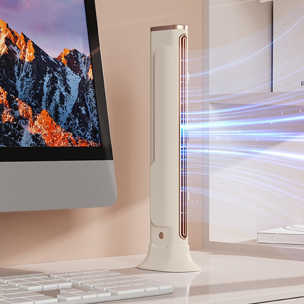 Bladeless Tower Fan, USB Rechargeable Quiet Energy Efficient Cooling Fan Table Fans, Space Saving Monitor Hanging Design, Ultra Long Air Outlet Low Noise, for Home Office Bedroom Library
