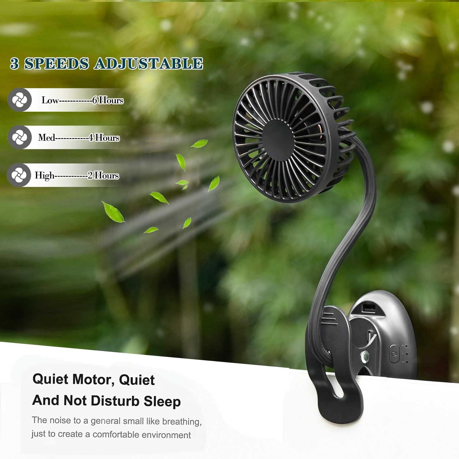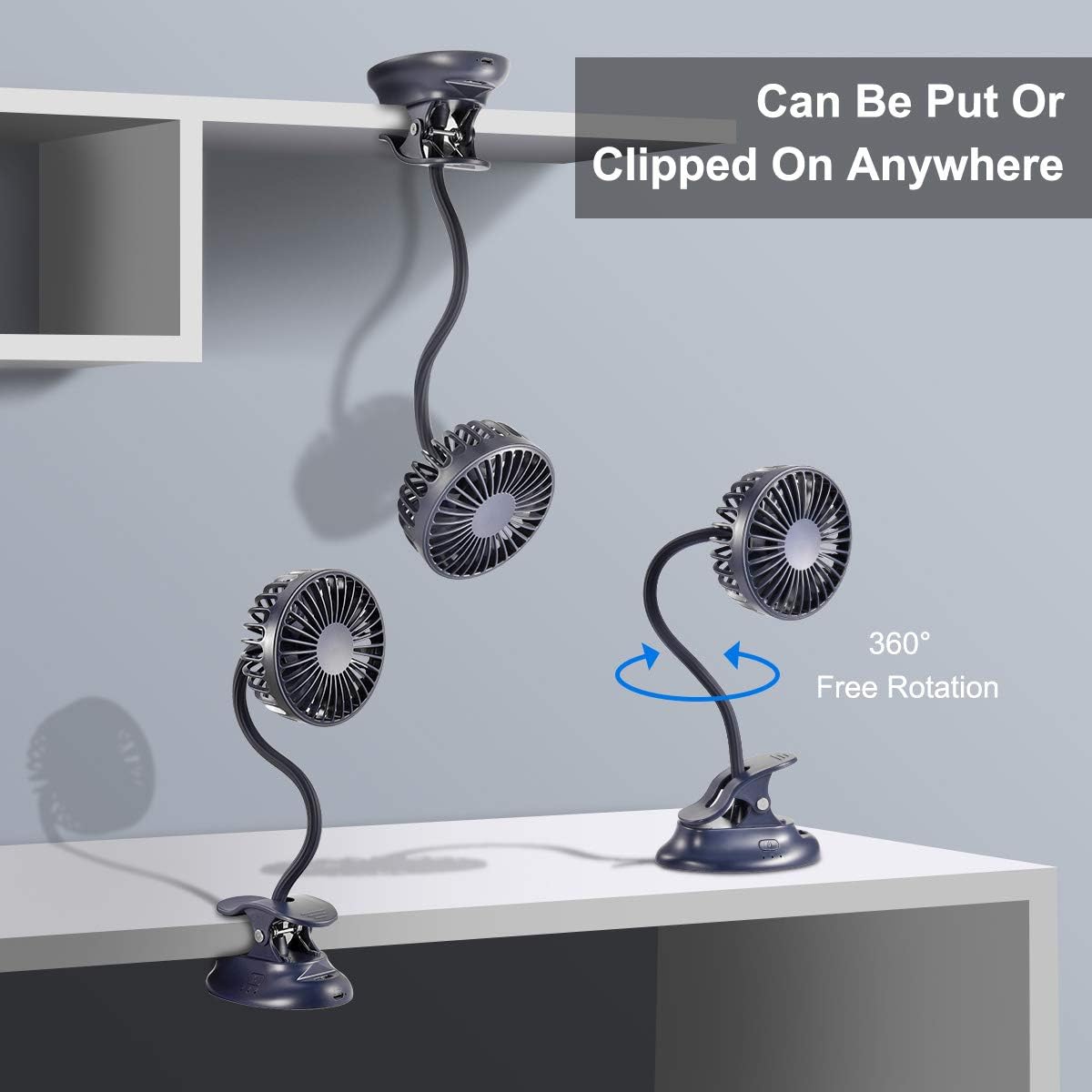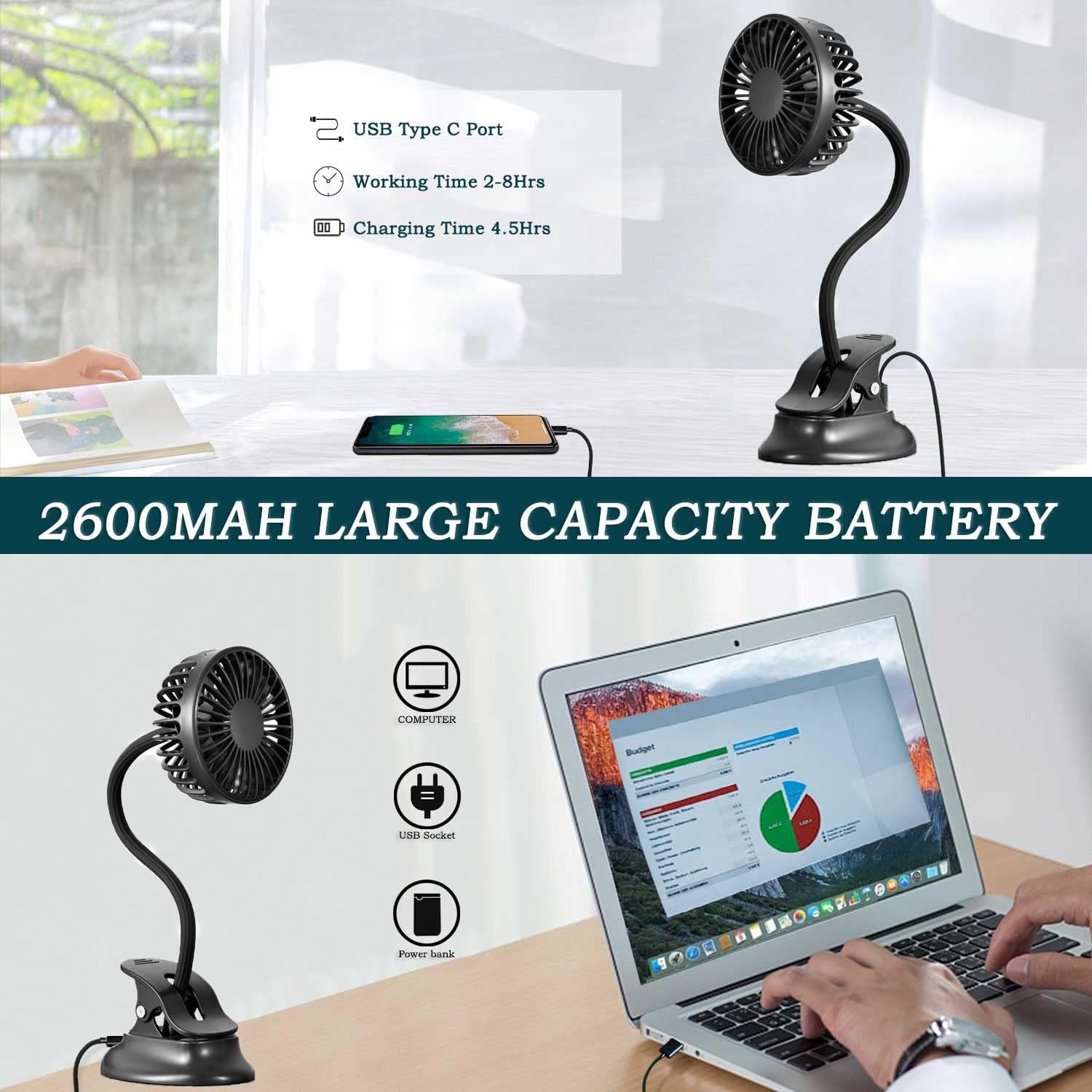 Clip on Fan with Power Bank – Rechargeable 3-Speed USB Desk Fan, Flexible Neck for Office, Car, Camping, Dorm & Travel, Portable Battery Operated Mini Fan – Black
