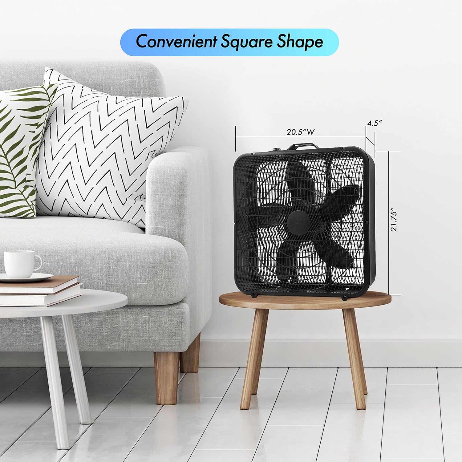 Comfort Zone CZ200ABK 20″ 3-Speed Box Fan for Full-Force Air Circulation with Air Conditioner, Black