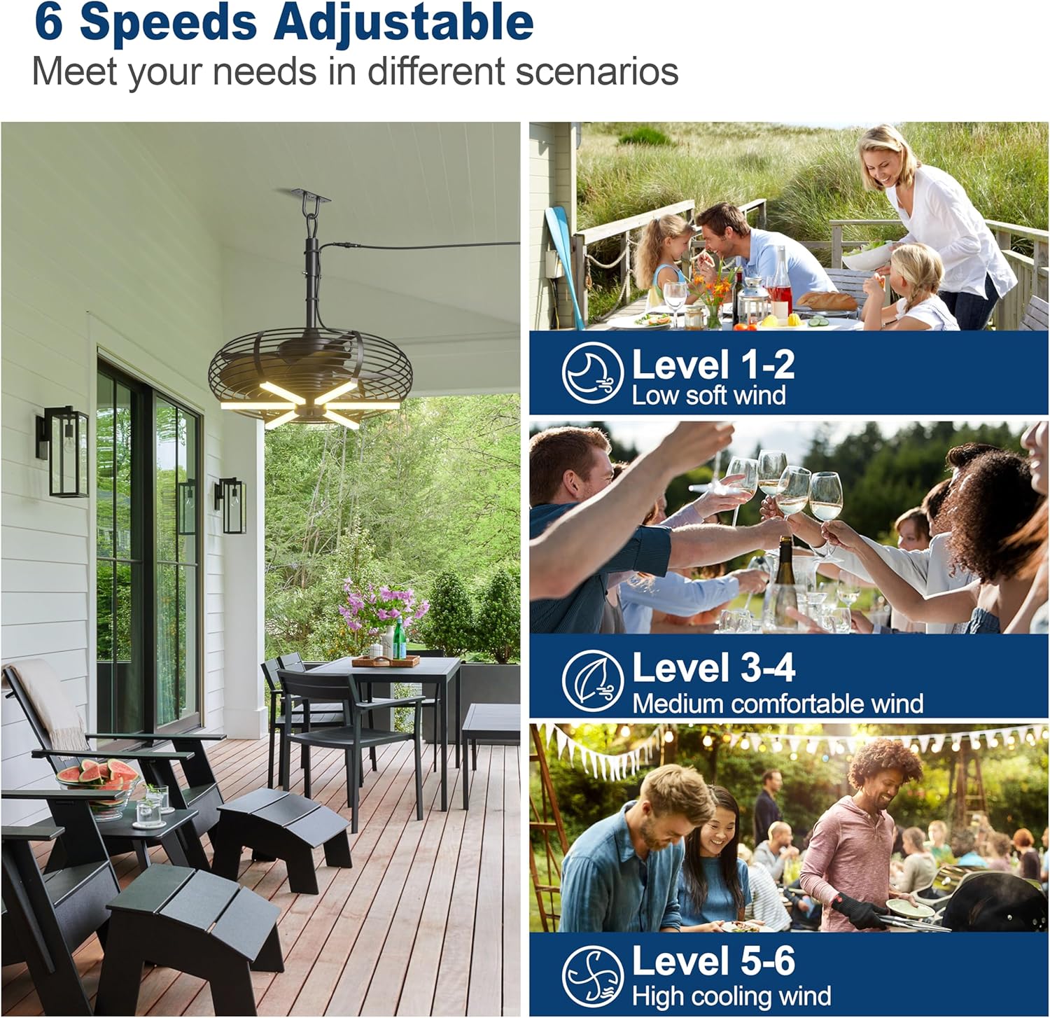 - Six adjustable wind speeds