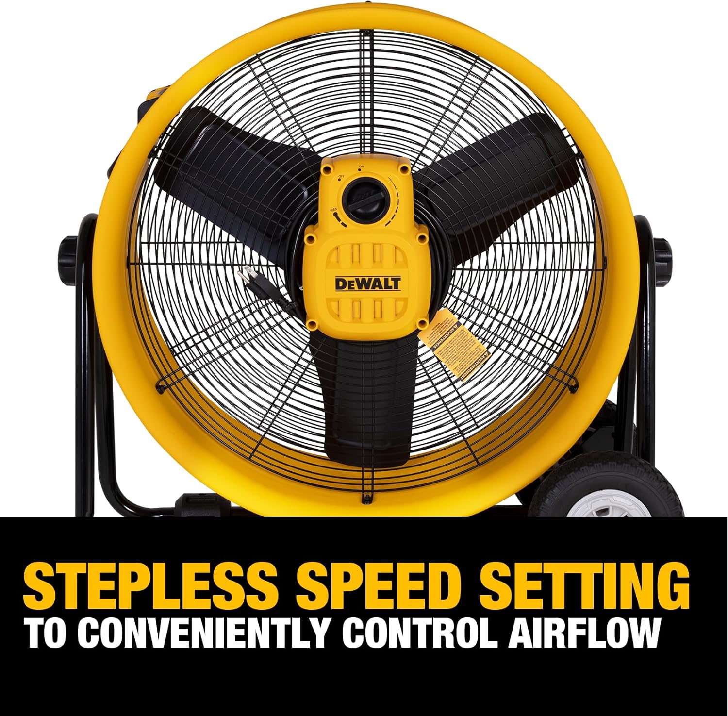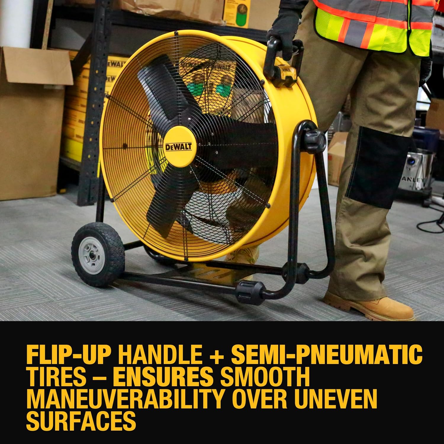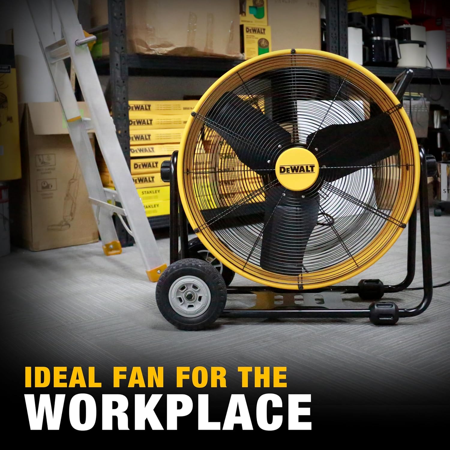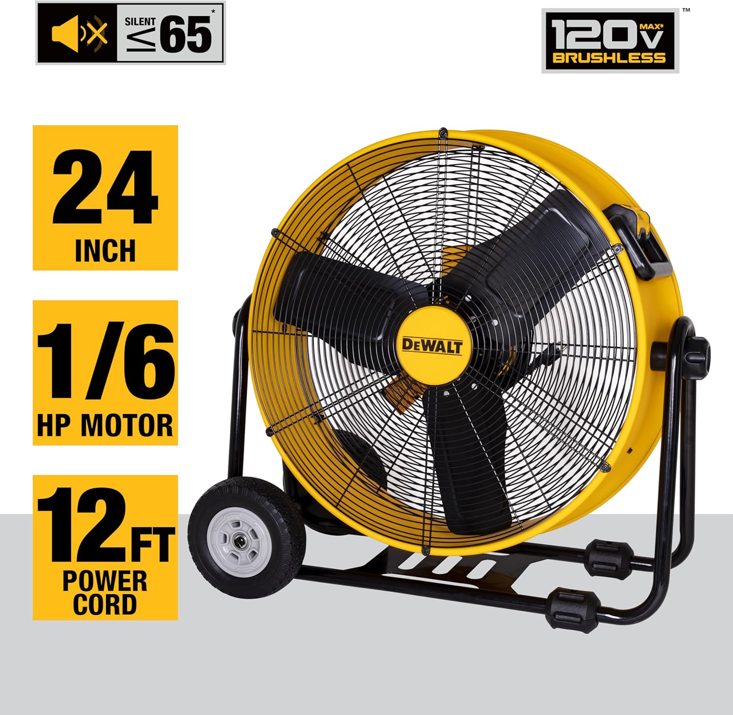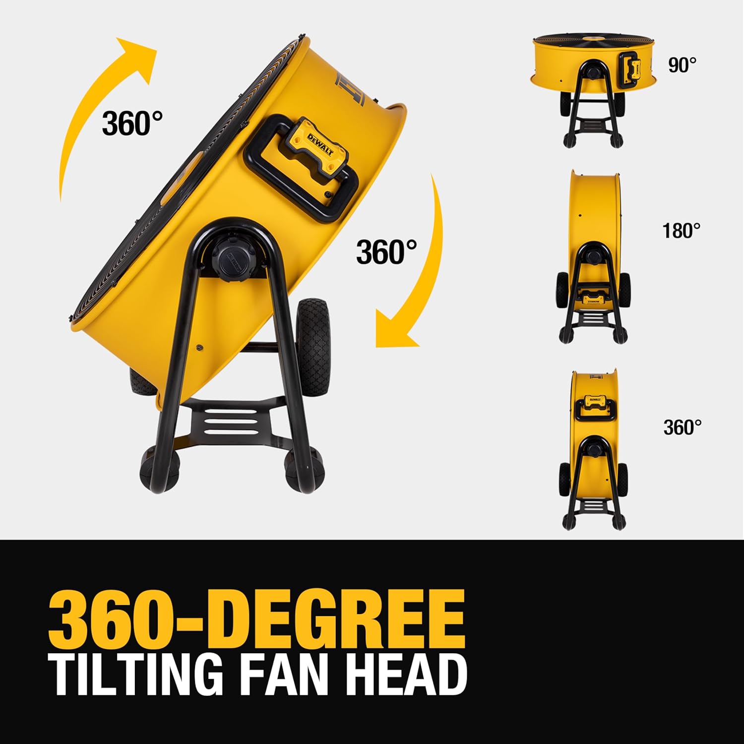 DEWALT DXF2490 High Velocity Fan, Floor Fans, 24 Inch Large Electric Metal Rotating Industrial Fan with 360° Adjustable Tilt & Large Wheel, Drum Fans for Outdoor and Warehouse, Yellow