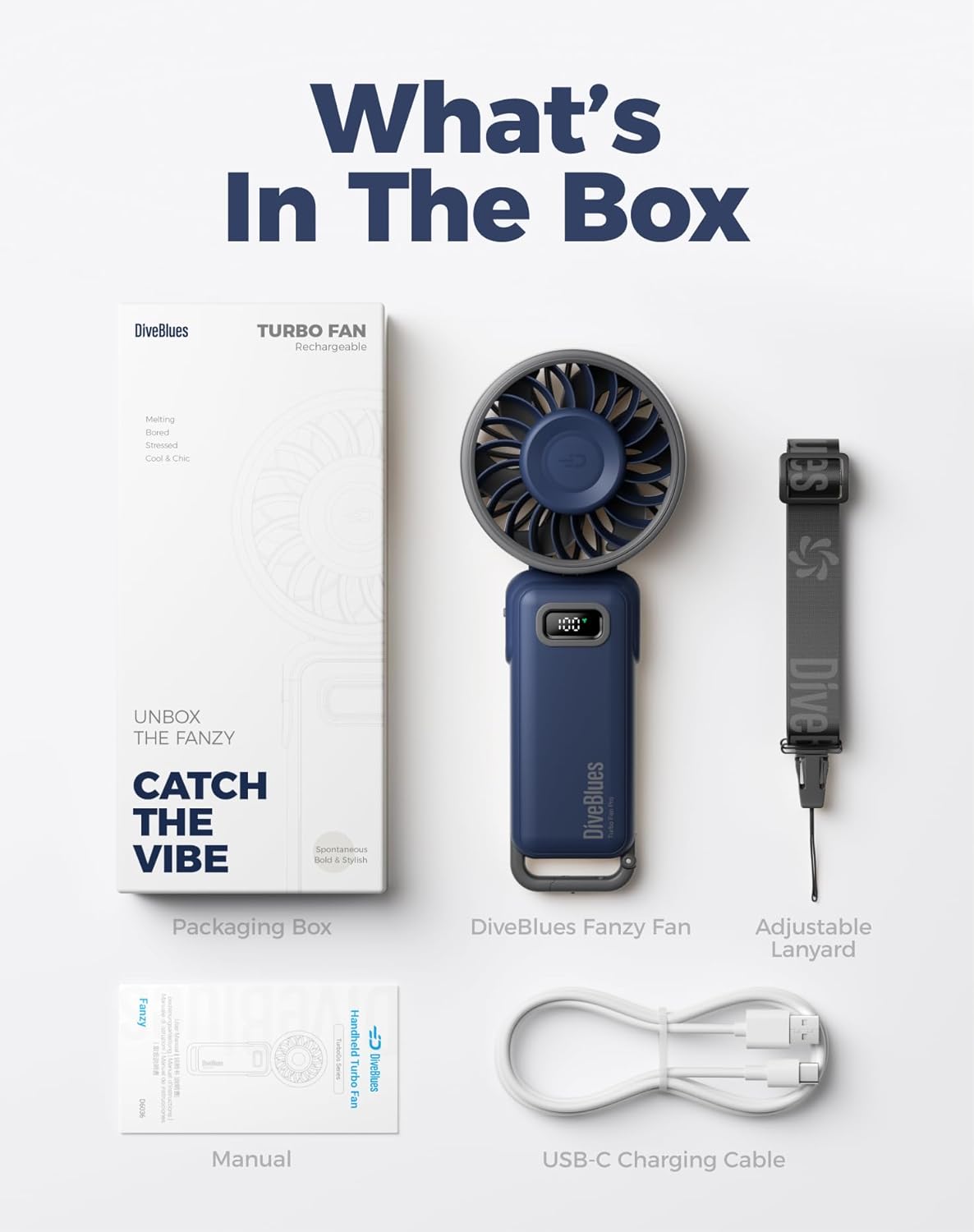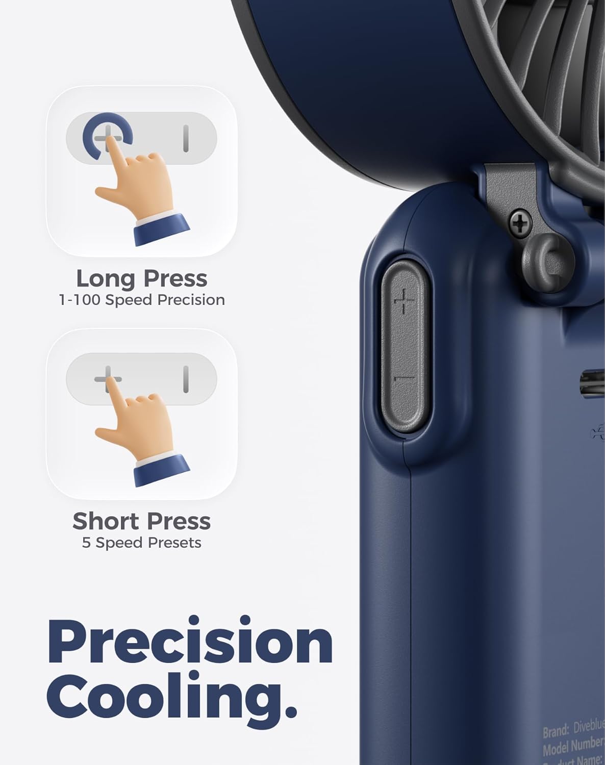 Diveblues Portable Hand Fan – Mini USB Rechargeable Handheld Fan Up to 12 Hours Cooling, 1-100 Speed Personal Fan with Turbo Airflow, 180° Foldable Desk Fan for Office & Bedroom & Travel & Commuting