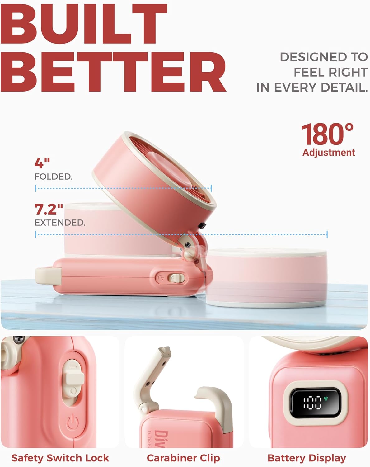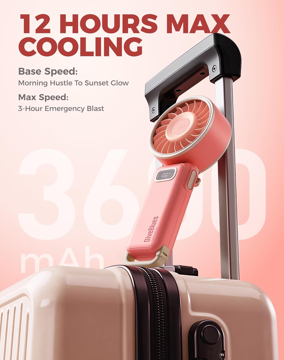 Diveblues Portable Hand Fan – Mini USB Rechargeable Handheld Fan Up to 12 Hours Cooling, 1-100 Speed Personal Fan with Turbo Airflow, 180° Foldable Desk Fan for Office & Bedroom & Travel & Commuting
