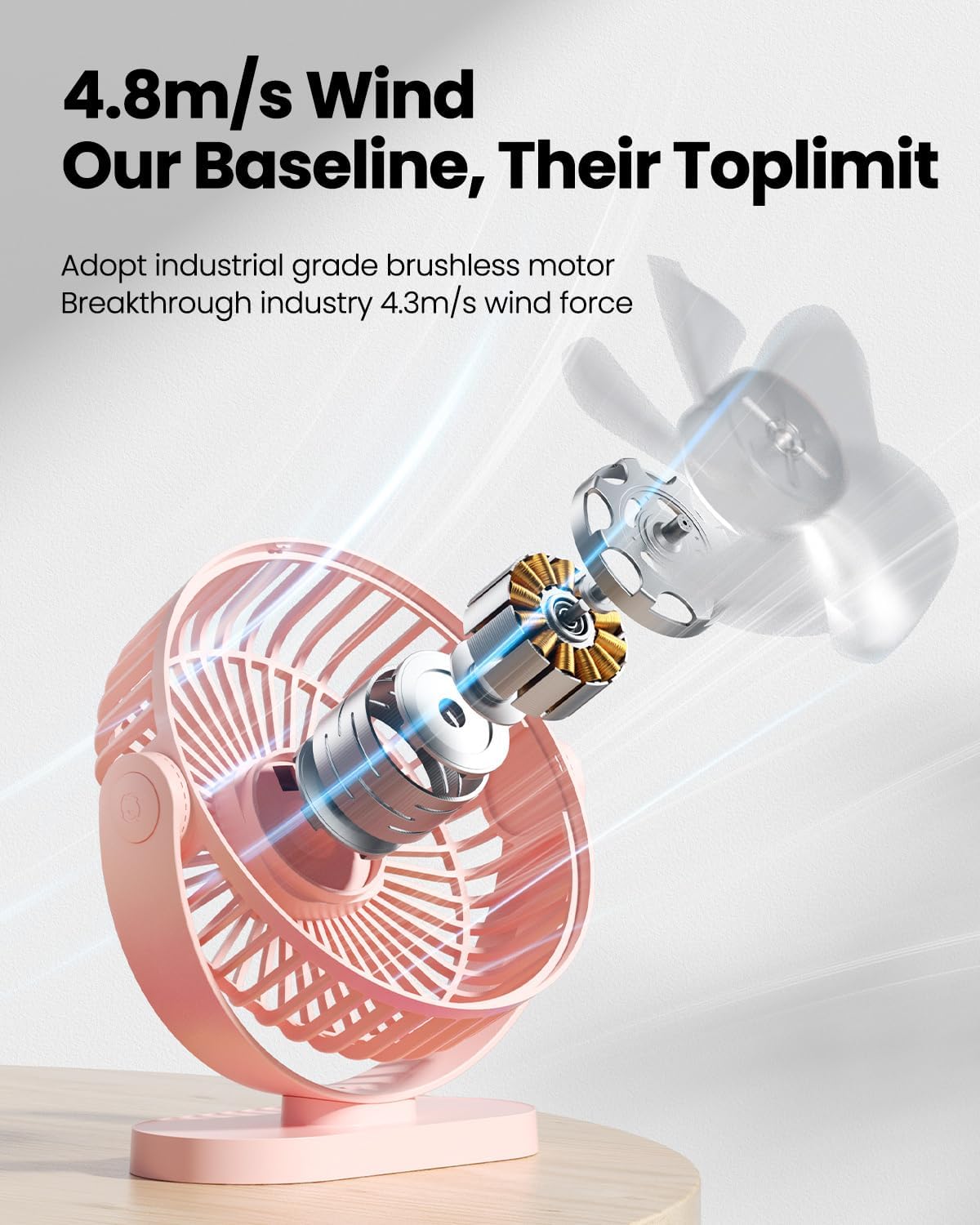 Gaiatop USB Desk Fan, 5.5 Inch Small Quiet Powerful 3 Speeds 90° Rotate, Personal Mini Portable Desktop Table Fans, Cooling for Home Office Car Travel Indoor Outdoor Pink