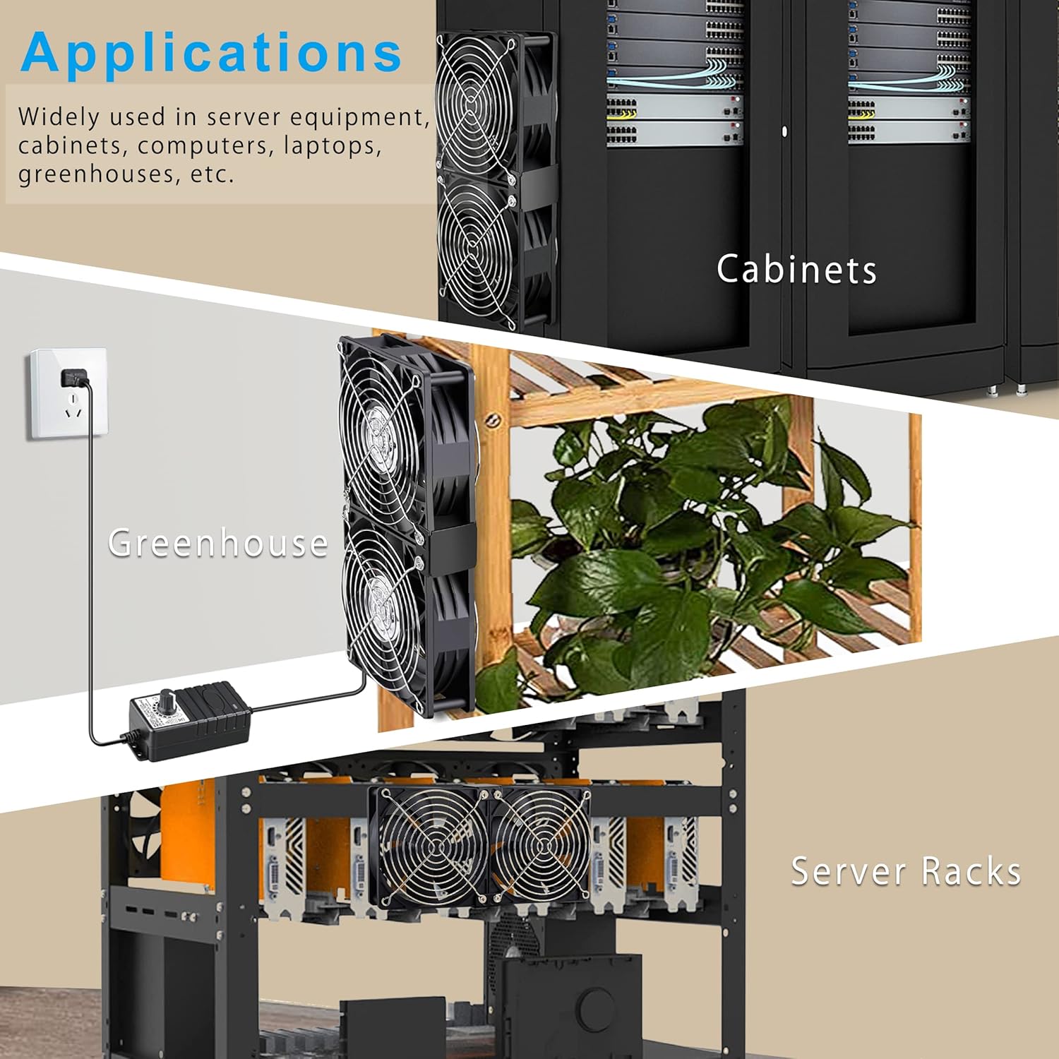 The GDSTIME Big Airflow Dual 120mm X 38mm Fans are designed for versatile cooling applications. With an AC voltage range of 100V-240V, these fans are suitable for various environments, including computer cases, server workstations, and even greenhouse incubators. The infinitely adjustable speed control allows you to customize airflow according to your needs.