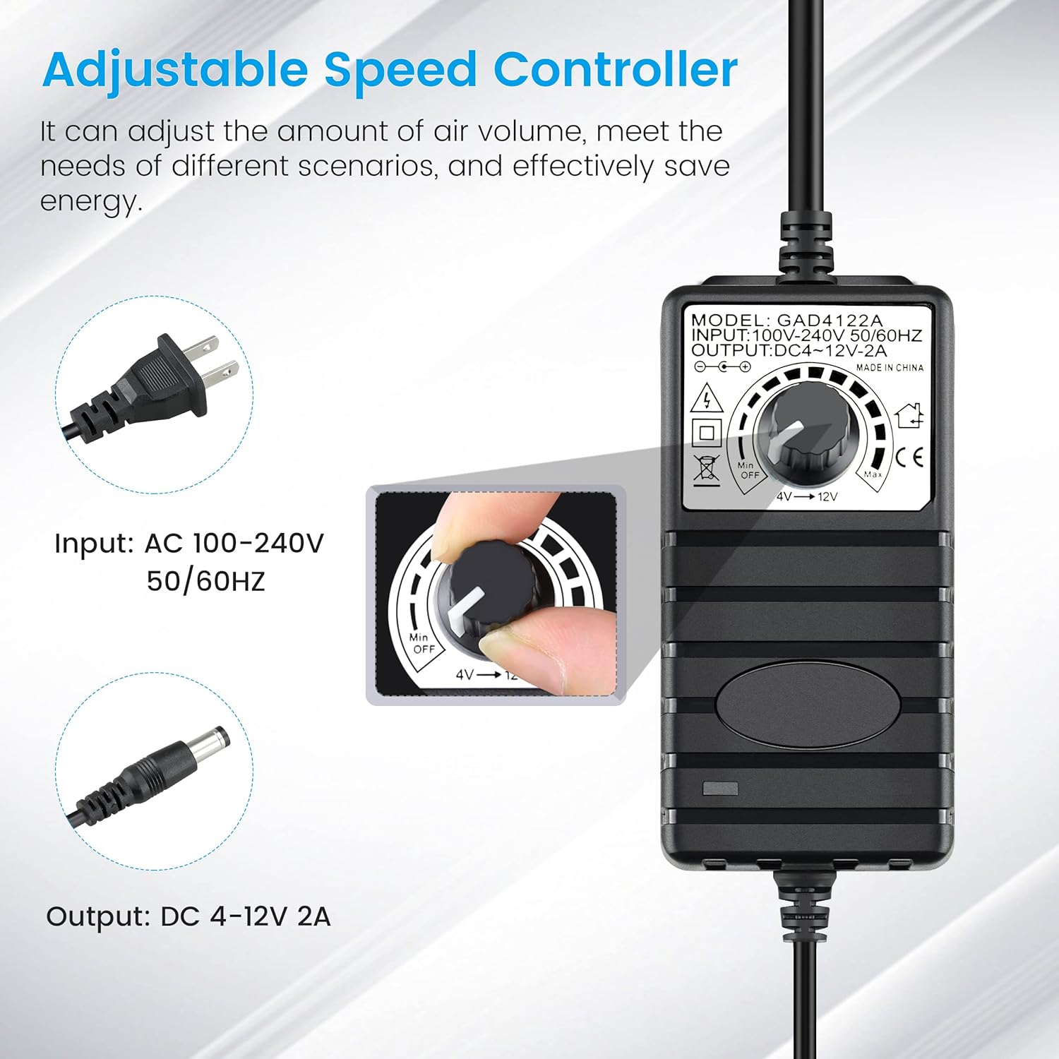 - Adjustable speed for tailored airflow