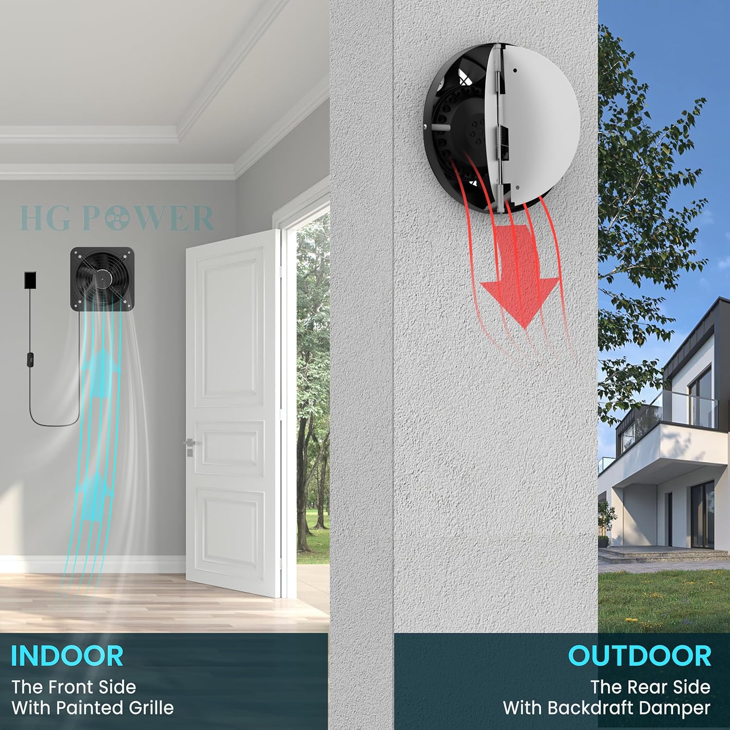 The HG Power 10 Inch Exhaust Fan is designed for efficient ventilation in various spaces, including kitchens, bathrooms, and attics. With a powerful airflow capacity of 988 CFM, it effectively removes odors and stale air, ensuring a fresh environment. The fan features an adjustable speed controller, allowing you to customize the airflow according to your needs.