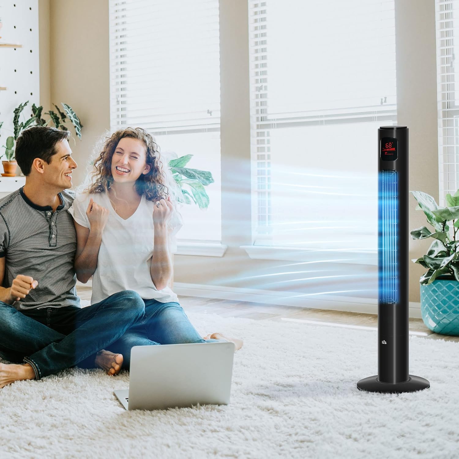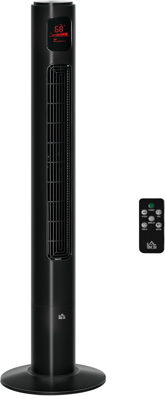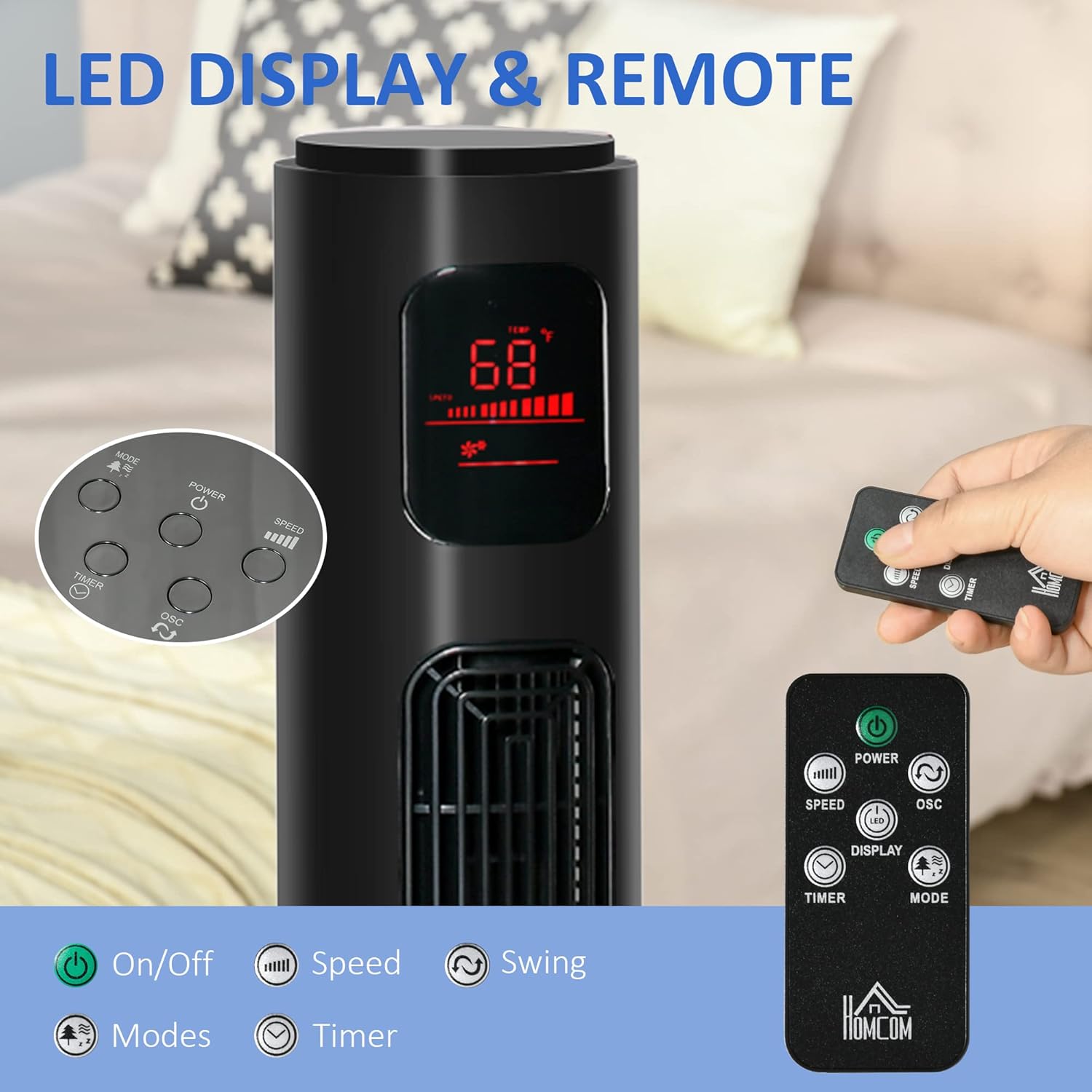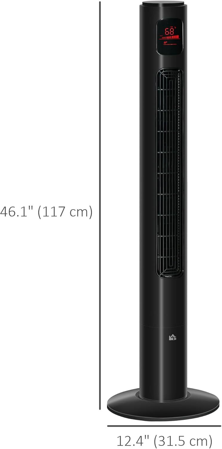 HOMCOM 46” Tower Fan for Bedroom, 70° Oscillating Bladeless Standing Fan with 3 Speeds, 3 Modes, 12H Timer, LED Display, Remote Controller, Black