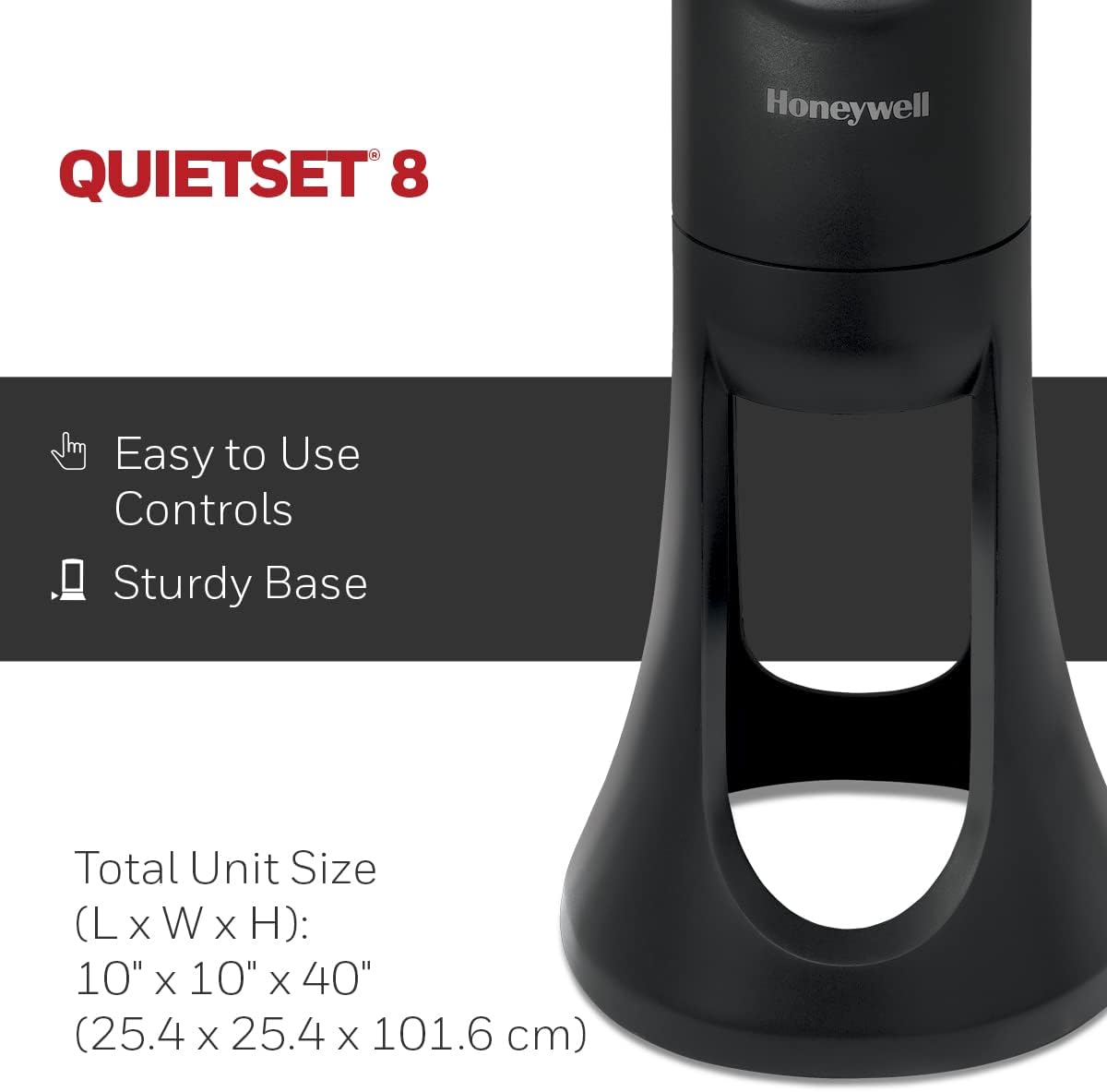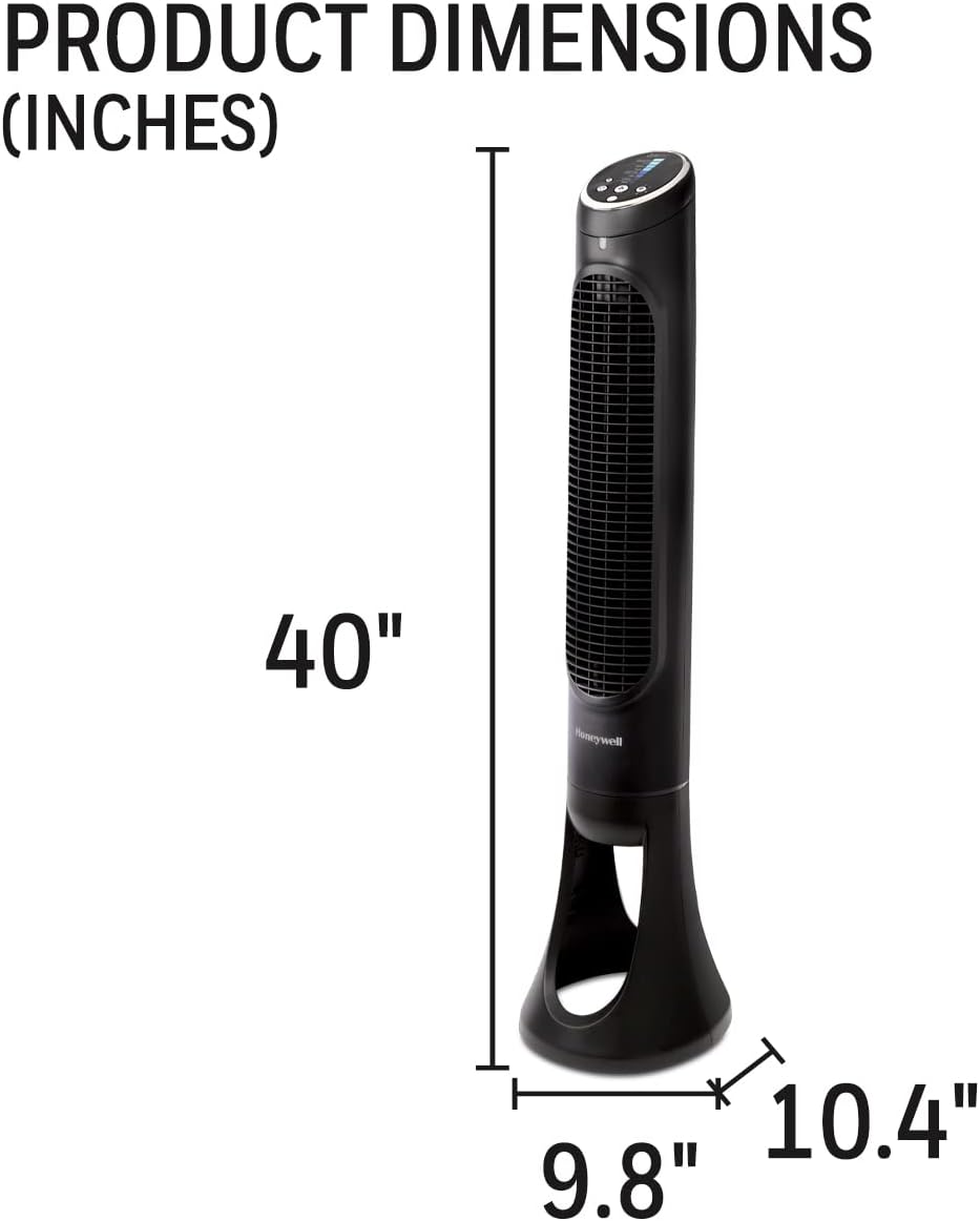 The Honeywell HYF290BC tower fan stands 40 inches tall from base to top.