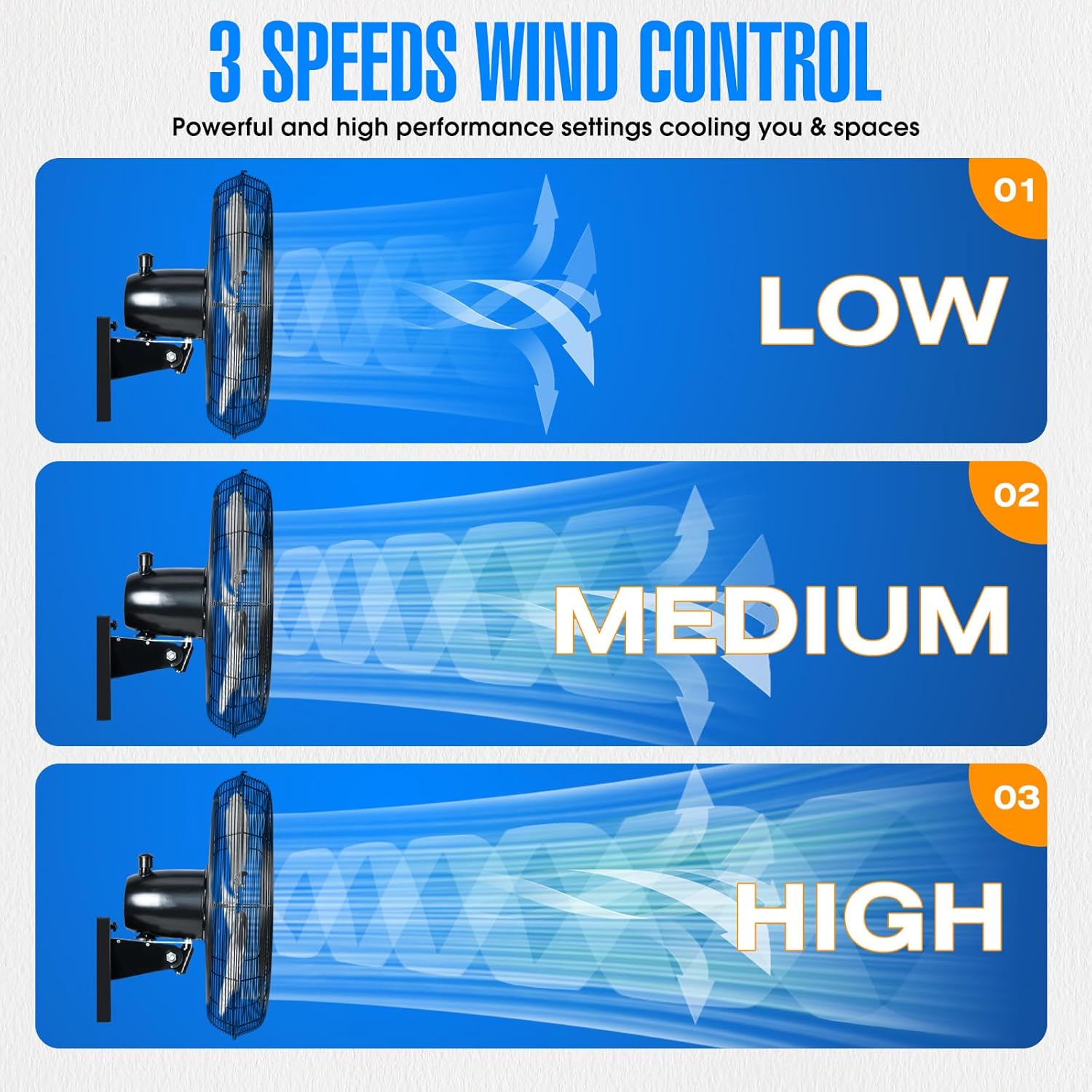 iLiving 20″ Outdoor Oscillating High Velocity Wall Fan with 4750 CFM Heavy Duty Weatherproof Motor, Variable Speed Adjustment for Workshop, Garage, Patios, Commercial and industrial, 20 inch,Black