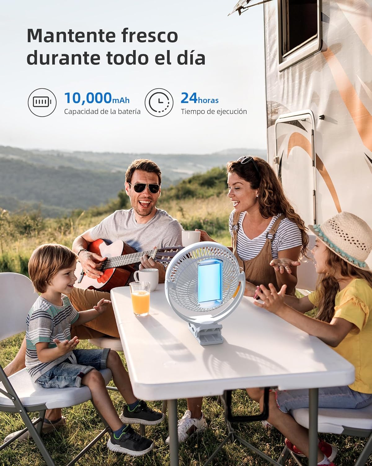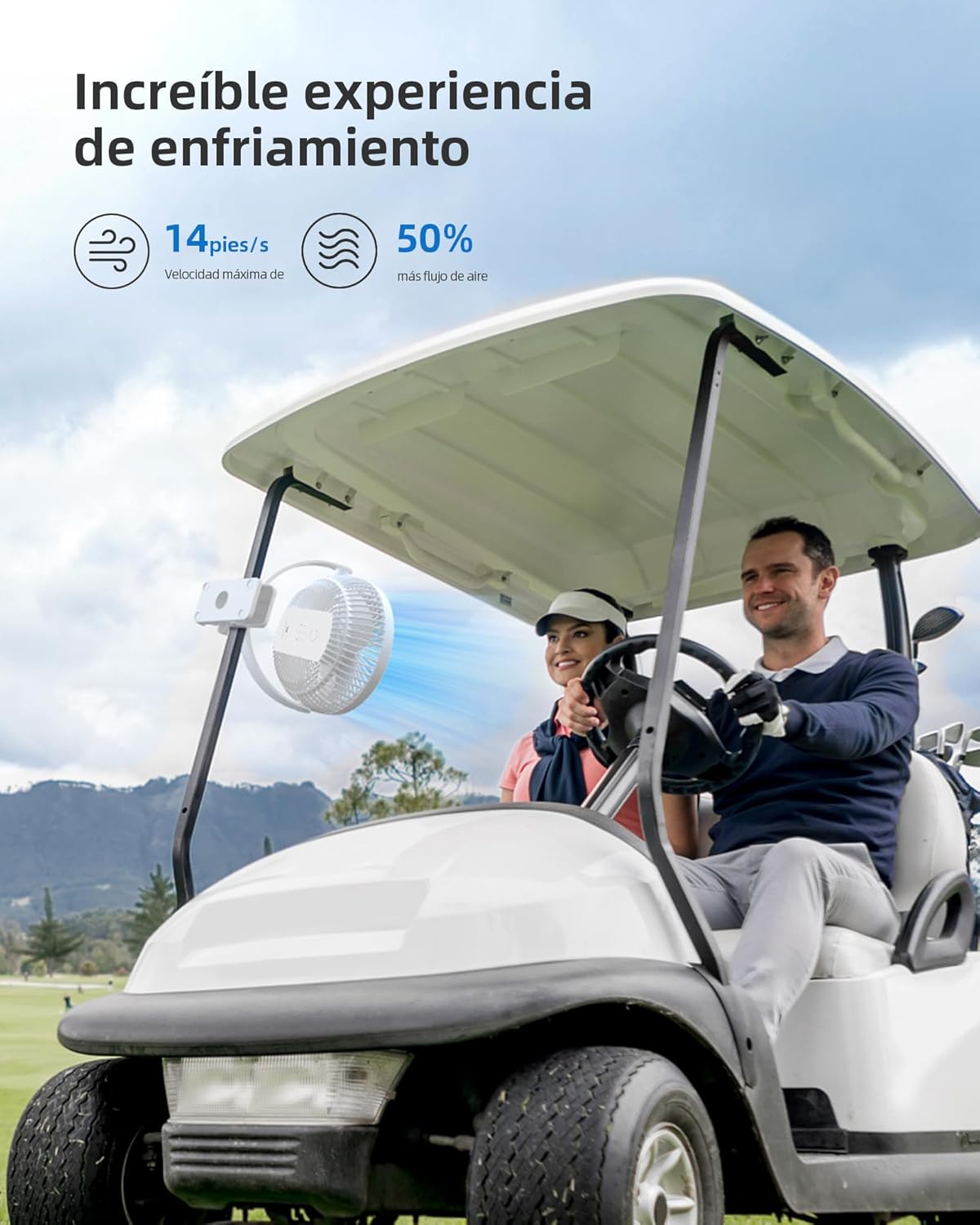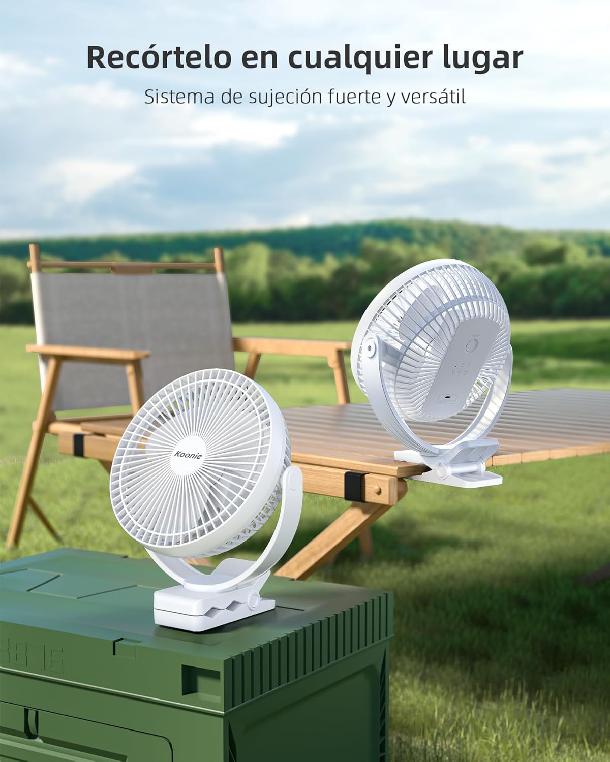 The Koonie 10000mAh Rechargeable Portable Fan is designed for versatility and convenience. With an 8-inch size, it easily clips onto various surfaces, making it ideal for office desks, golf carts, outdoor travel, and more. This fan features four adjustable speeds, allowing you to customize airflow to your comfort level. Its sturdy clamp ensures stability, whether you're using it at home or on the go.