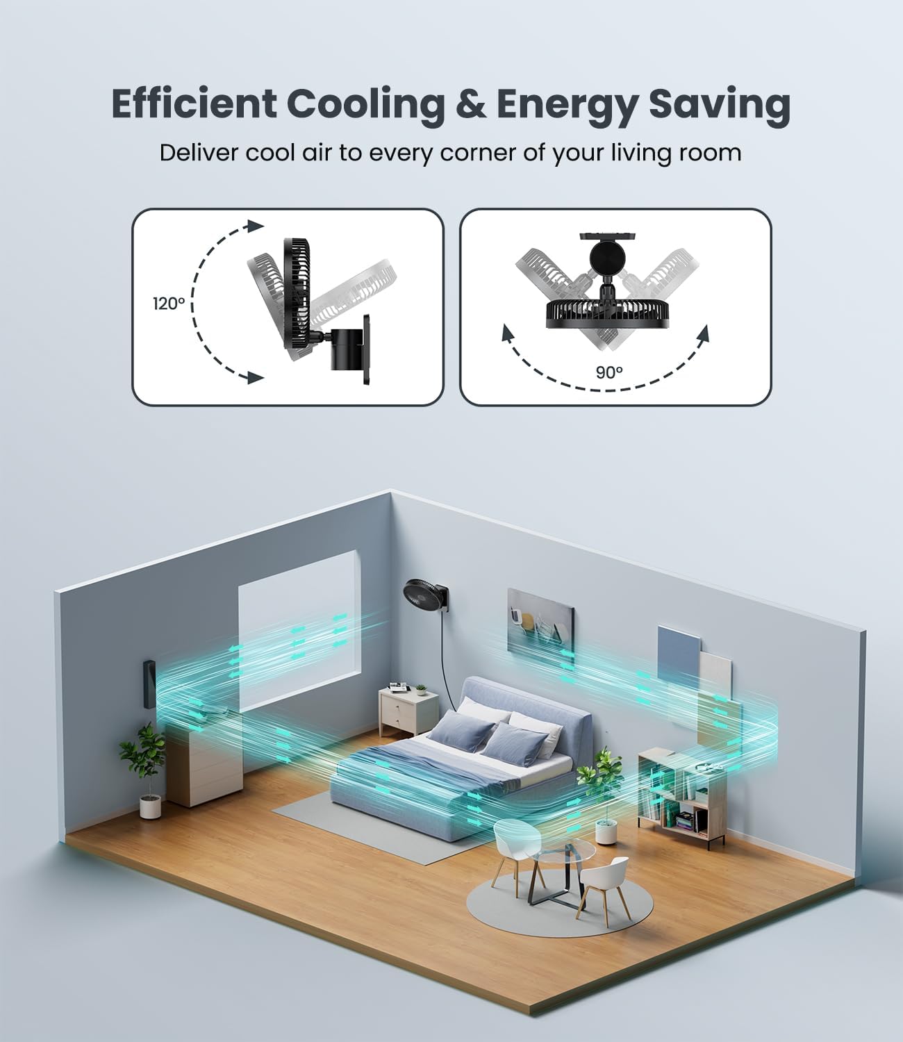 The LEMOISTAR 8 Inch Small Wall Mounted RV Fan is designed for versatility and convenience. With its 90° oscillation and adjustable tilt, it can effectively circulate air in various settings, whether in a corner bedroom, home office, or garage. The fan features four speed settings and a timer function, allowing you to customize your cooling experience. The included remote control adds to the ease of use, letting you adjust settings from a distance.