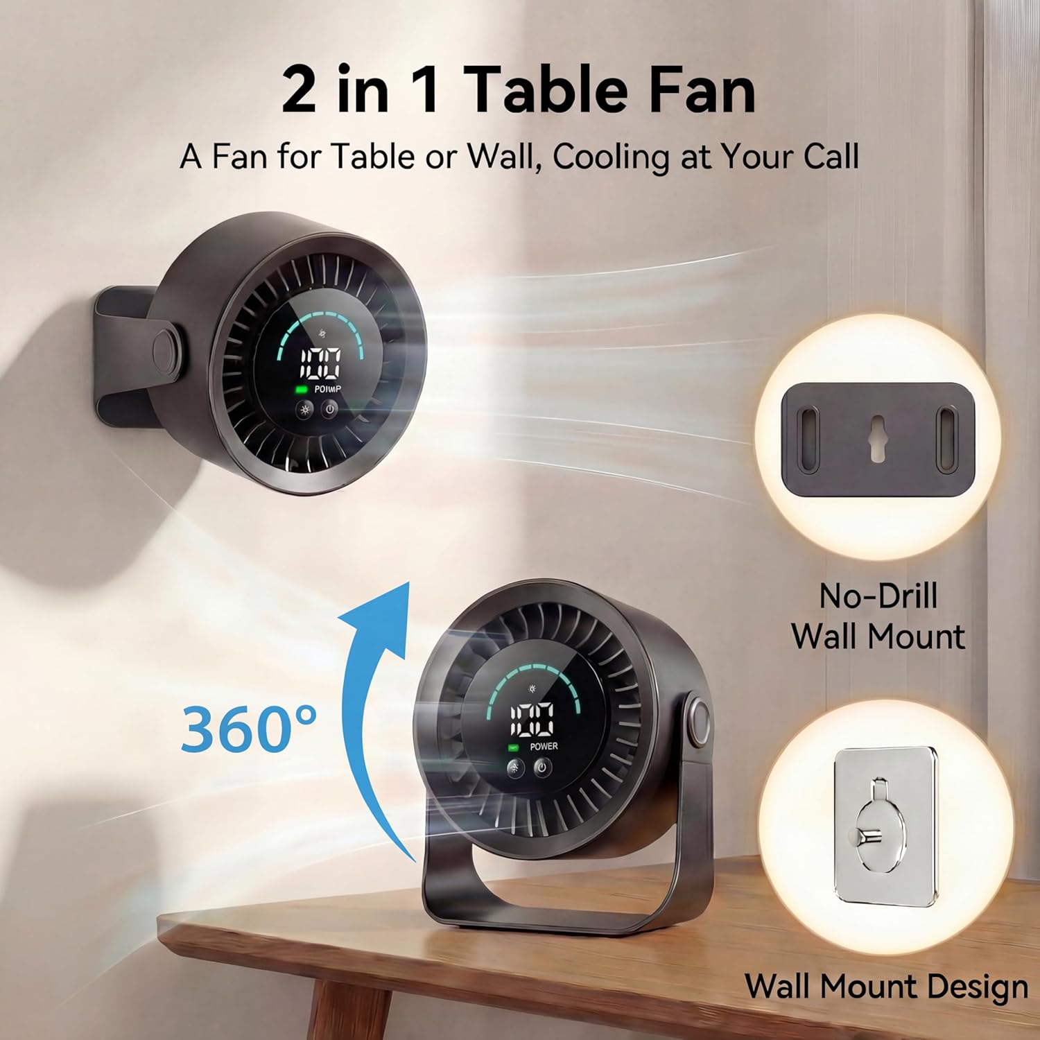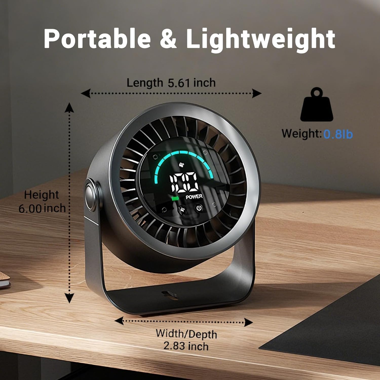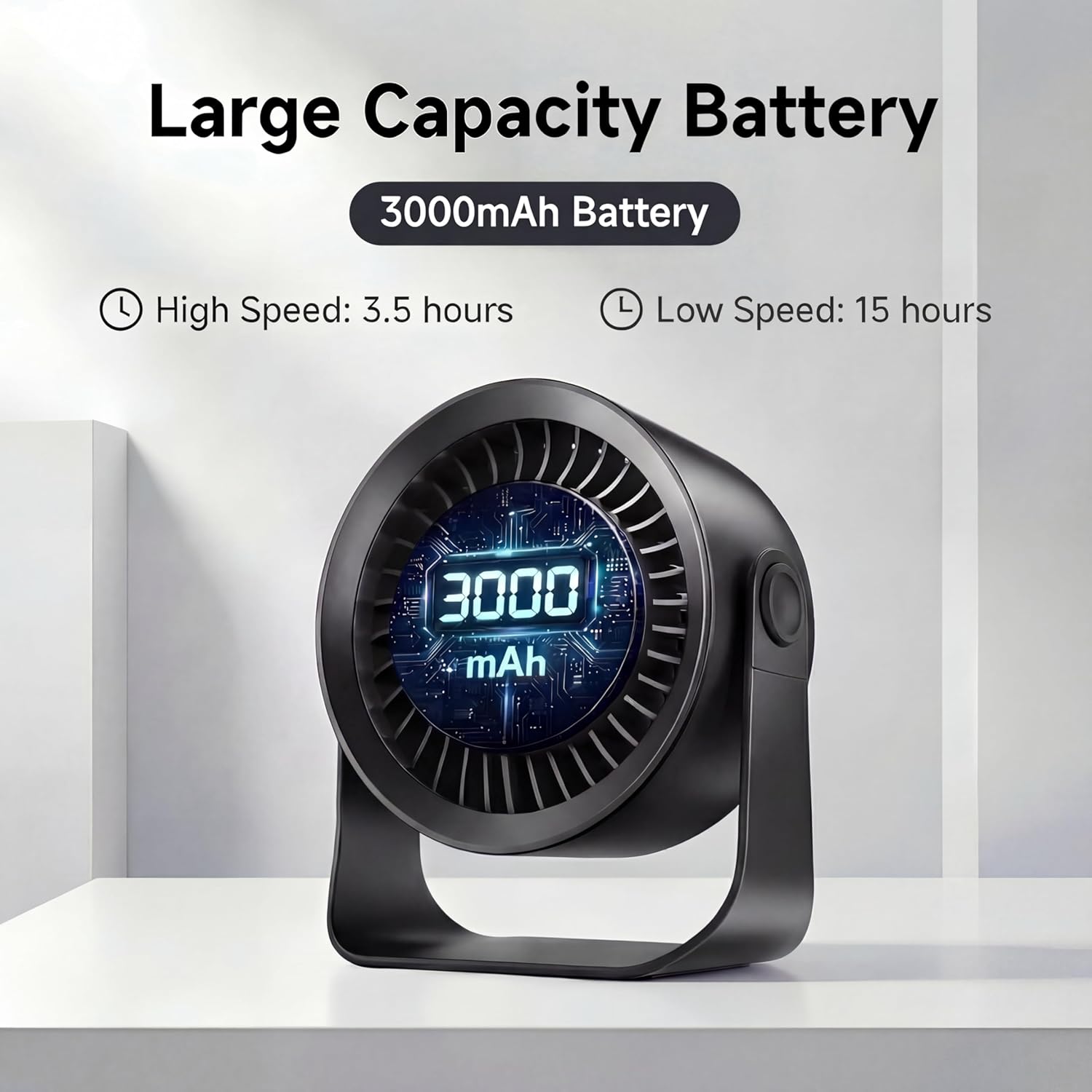 Mini Desk Fan, Small USB Rechargeable Quiet Desktop Fan, Cooling Table Electric Fan with LED Digital Display, 360°Adjustable Tilt for Bedroom, Office & Home (Black)