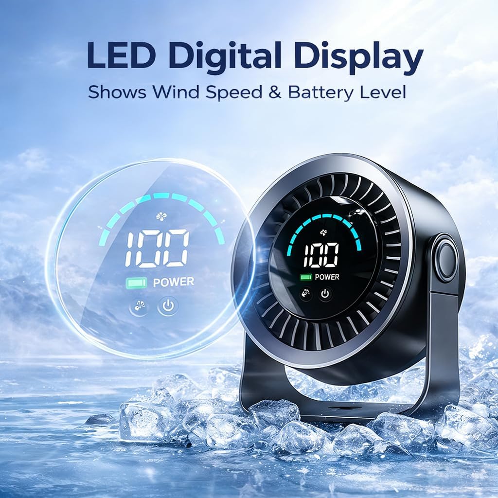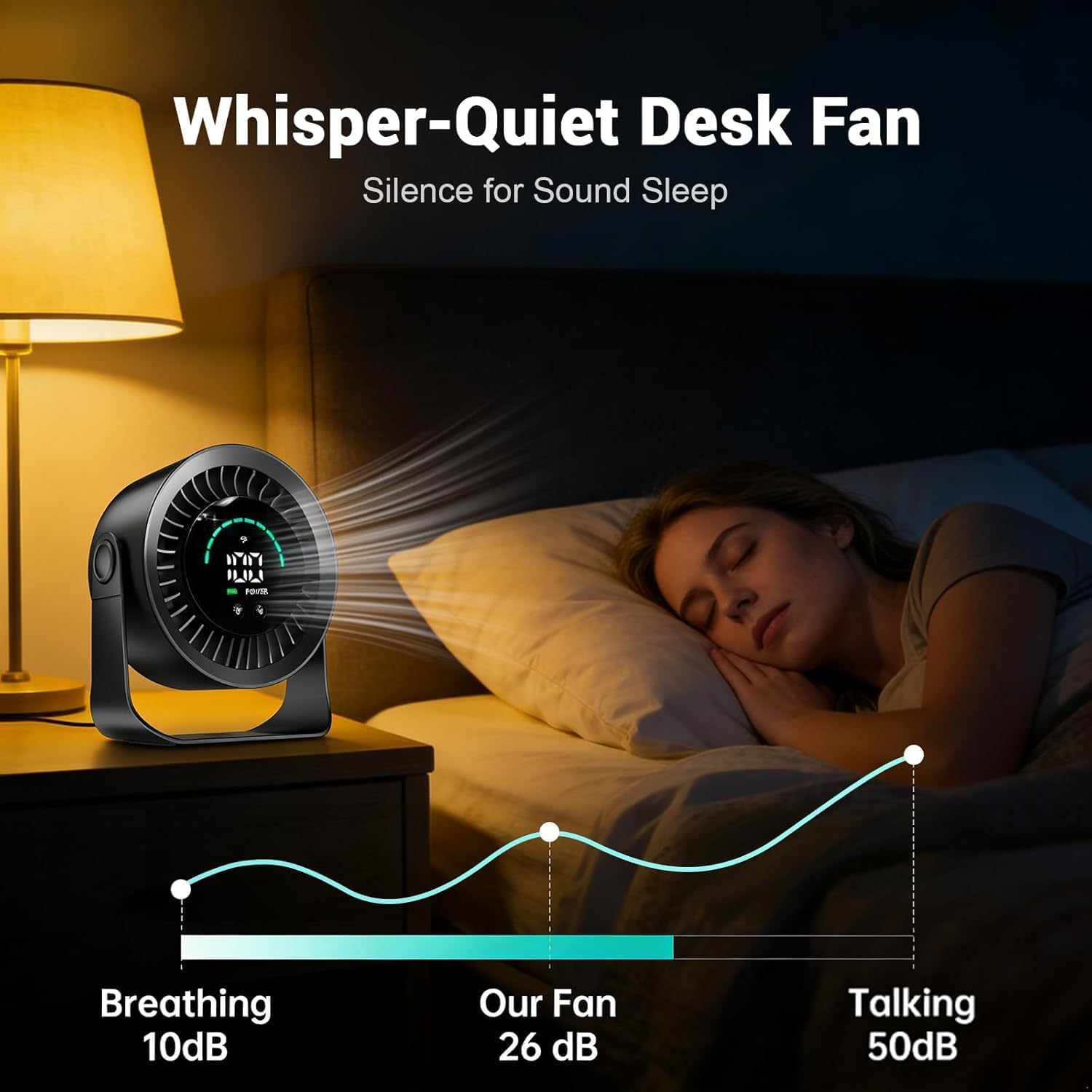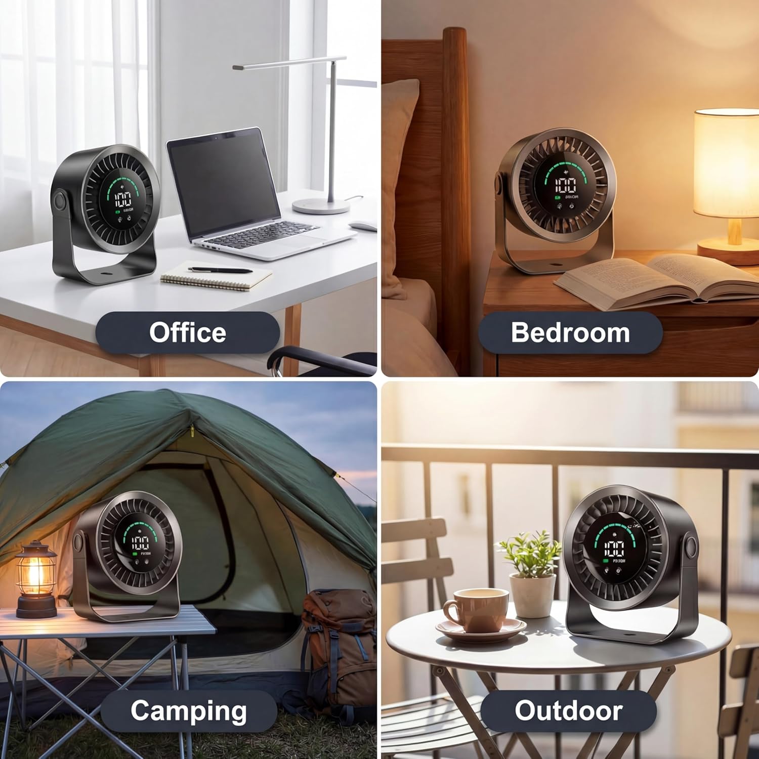 Mini Desk Fan, Small USB Rechargeable Quiet Desktop Fan, Cooling Table Electric Fan with LED Digital Display, 360°Adjustable Tilt for Bedroom, Office & Home (Black)