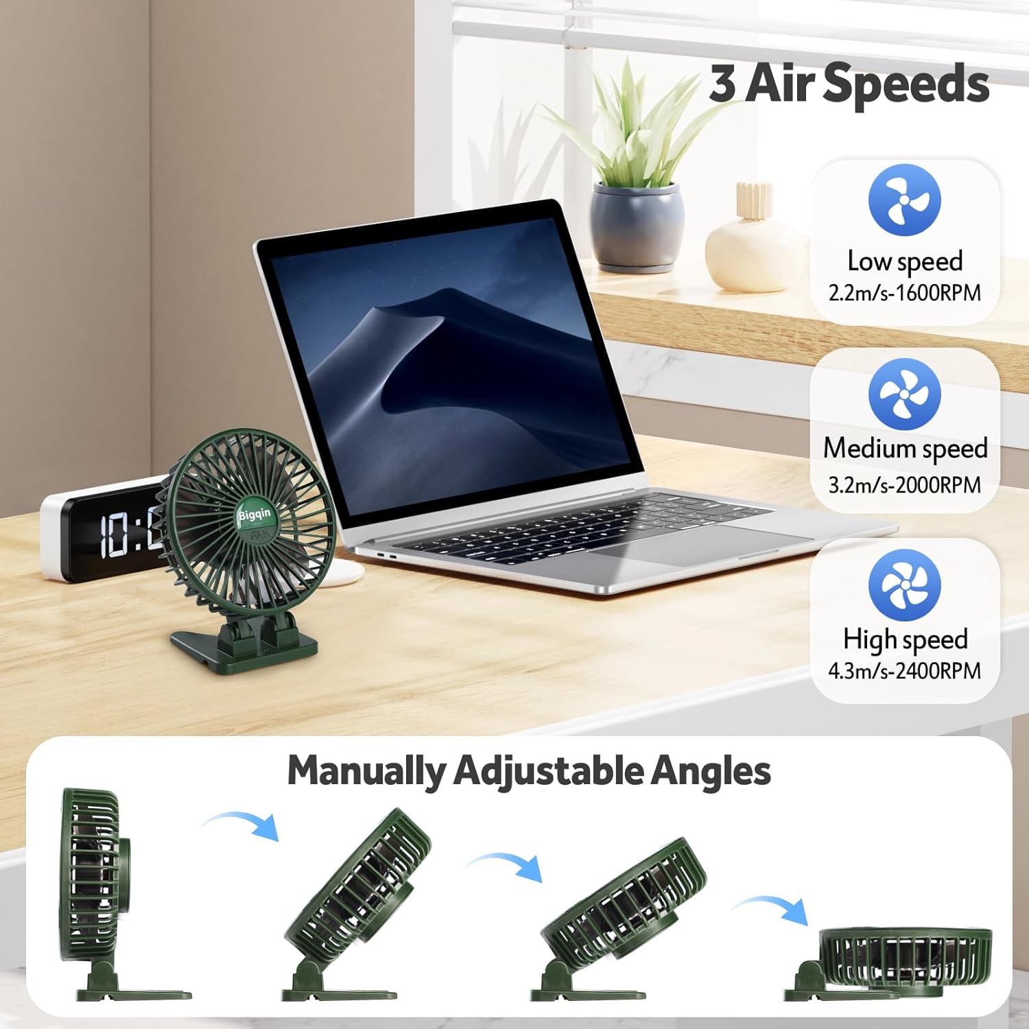 Mini USB Fan Desk Fan Small but Powerful 3 Speeds Angle Adjustable Quiet Operation Personal Portable Fan for Home Office Car Outdoor Use, USB Powered ONLY (No Battery), Green