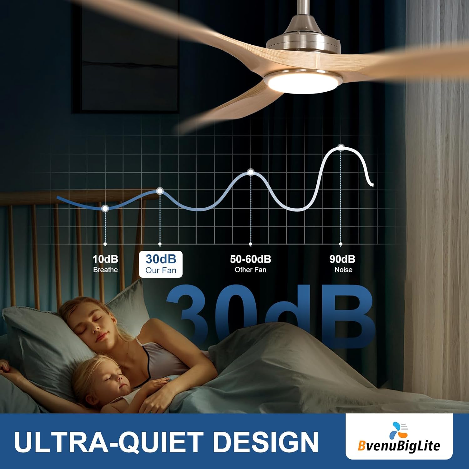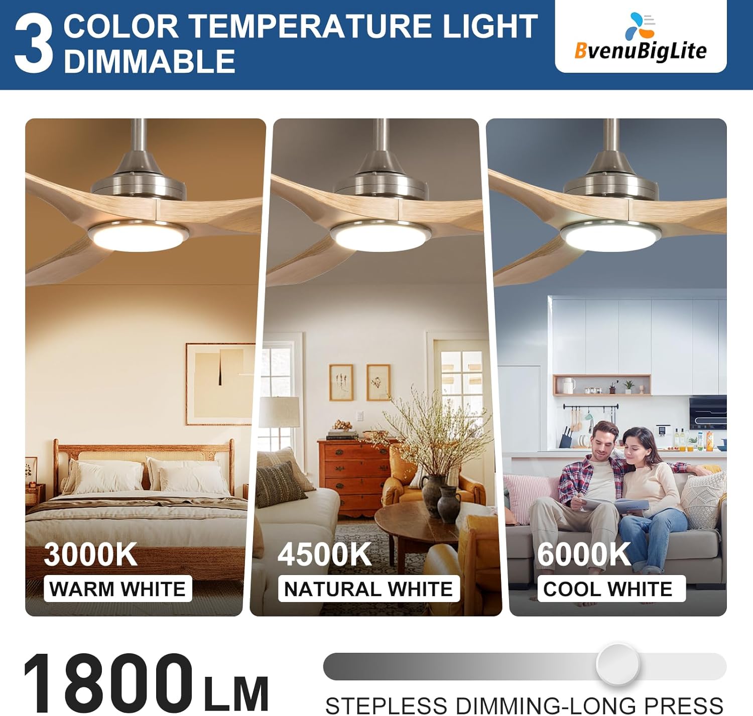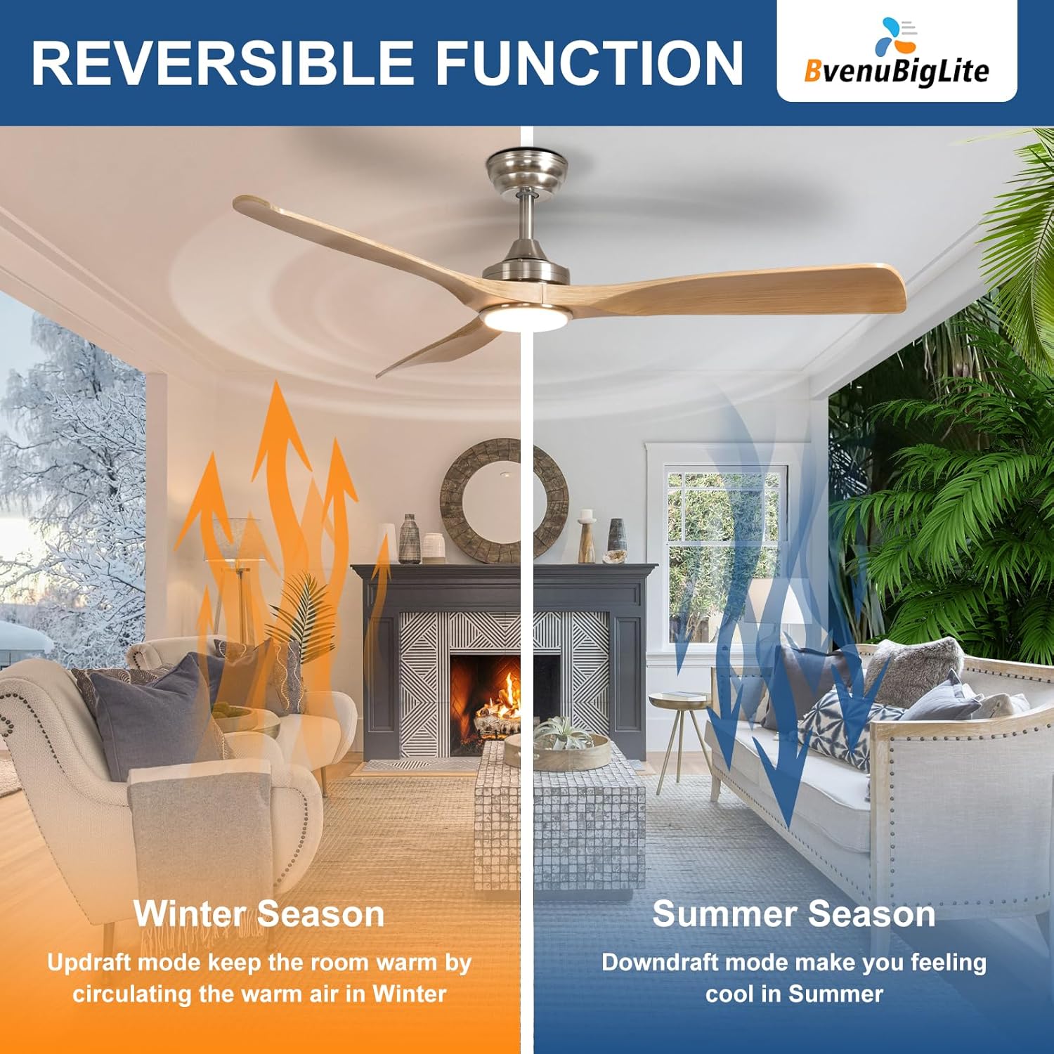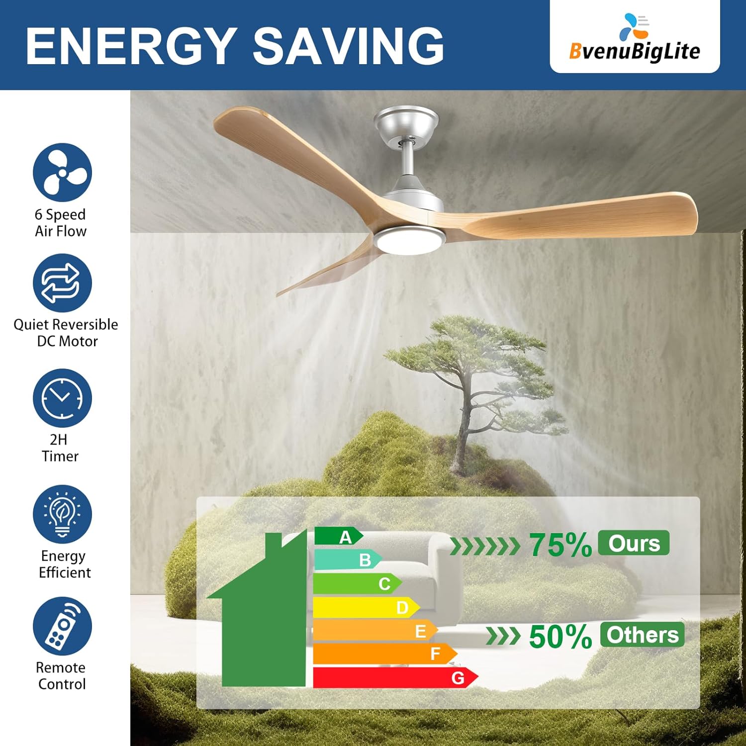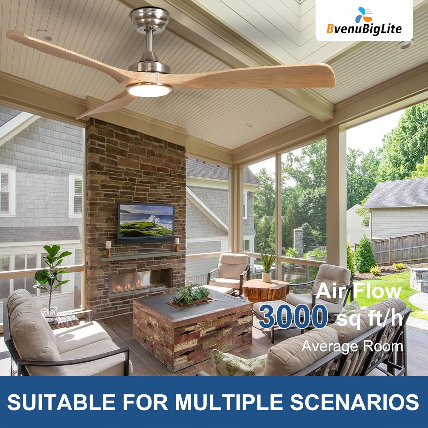 The BvenuBigLite 52" Outdoor Ceiling Fan is designed to enhance your outdoor spaces with modern elegance and reliable comfort. Featuring a quiet DC motor, this fan provides efficient airflow while being energy efficient. The reversible airflow function allows for year-round use, making it suitable for both cooling in the summer and warming in the winter.