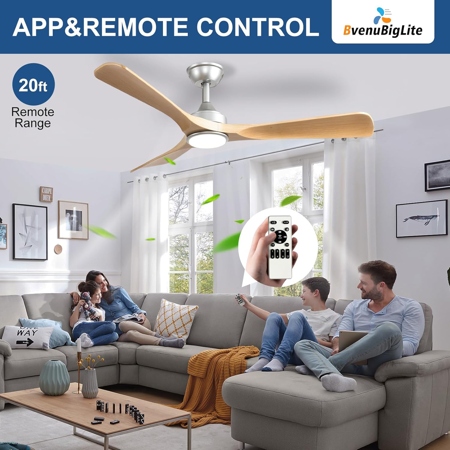 With a sleek design, it complements various outdoor aesthetics. The fan comes with a dimmable light, controlled via remote or an app, adding convenience to your outdoor gatherings. Enjoy the tranquility of a quiet operation while benefiting from its stylish presence.