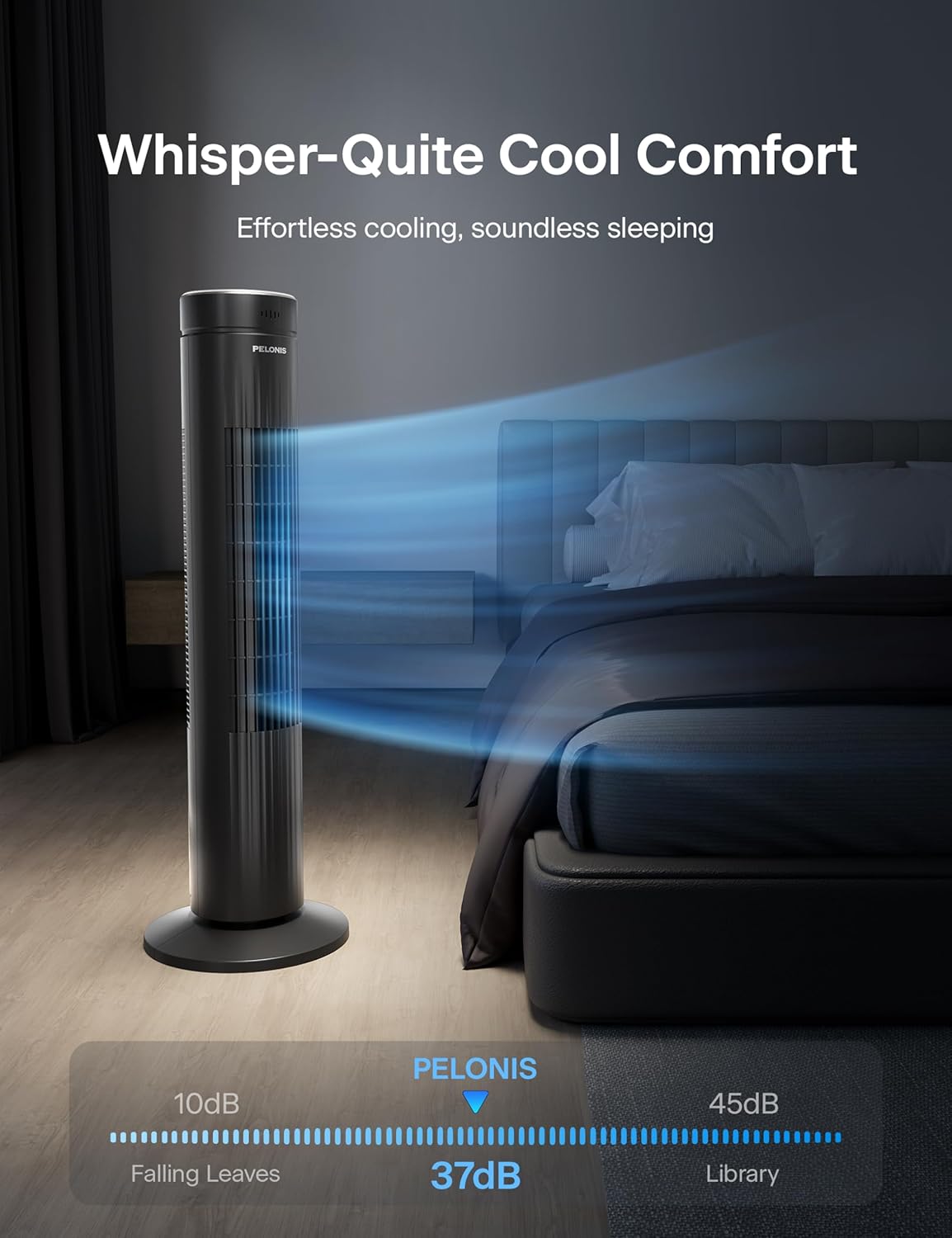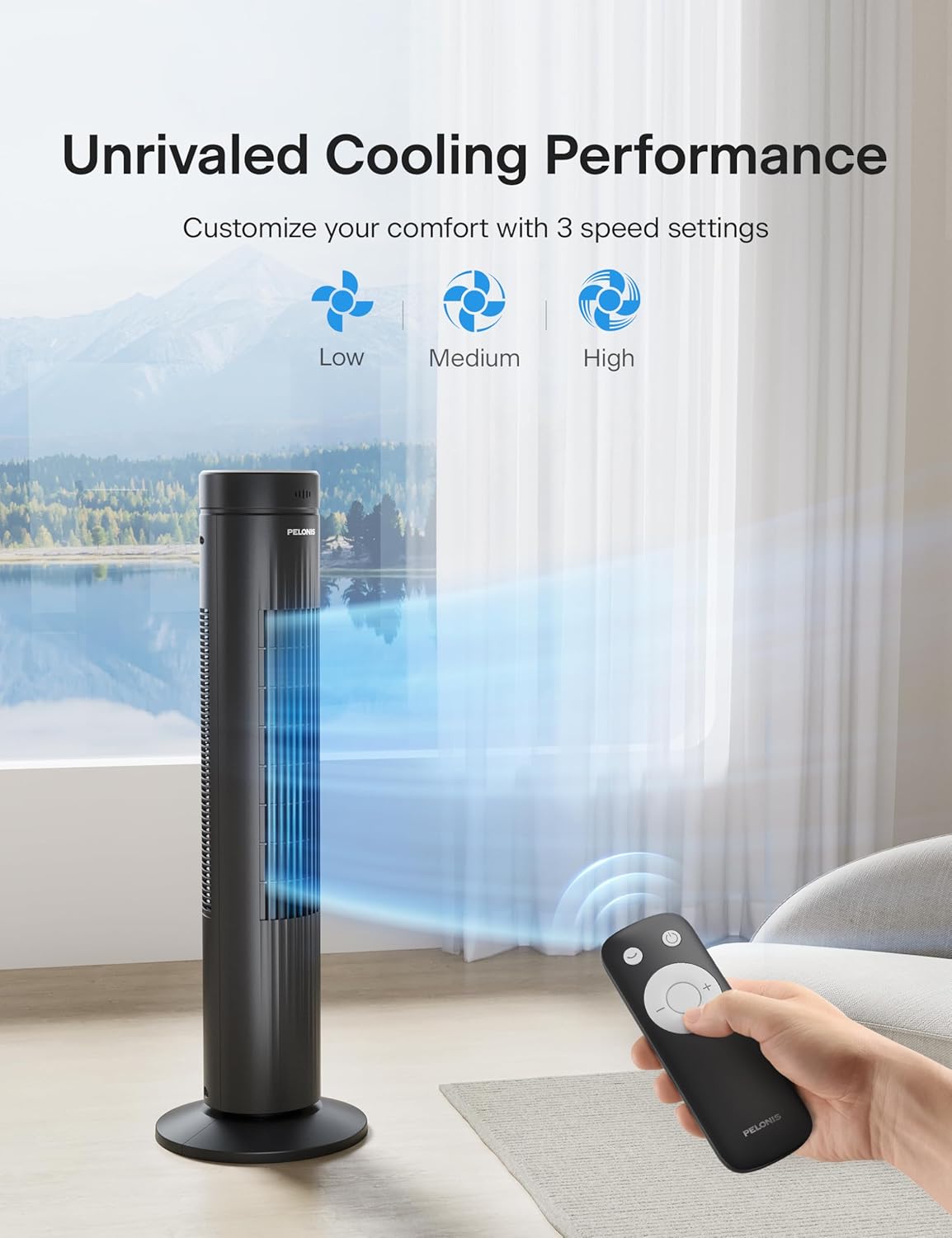 Pelonis 30-Inch Oscillating Tower Fan for Bedroom – Quiet 3-Speed Fan with Remote Control, 7-Hour Timer, 37dB Ultra-Quiet Operation – ETL Certified, Black
