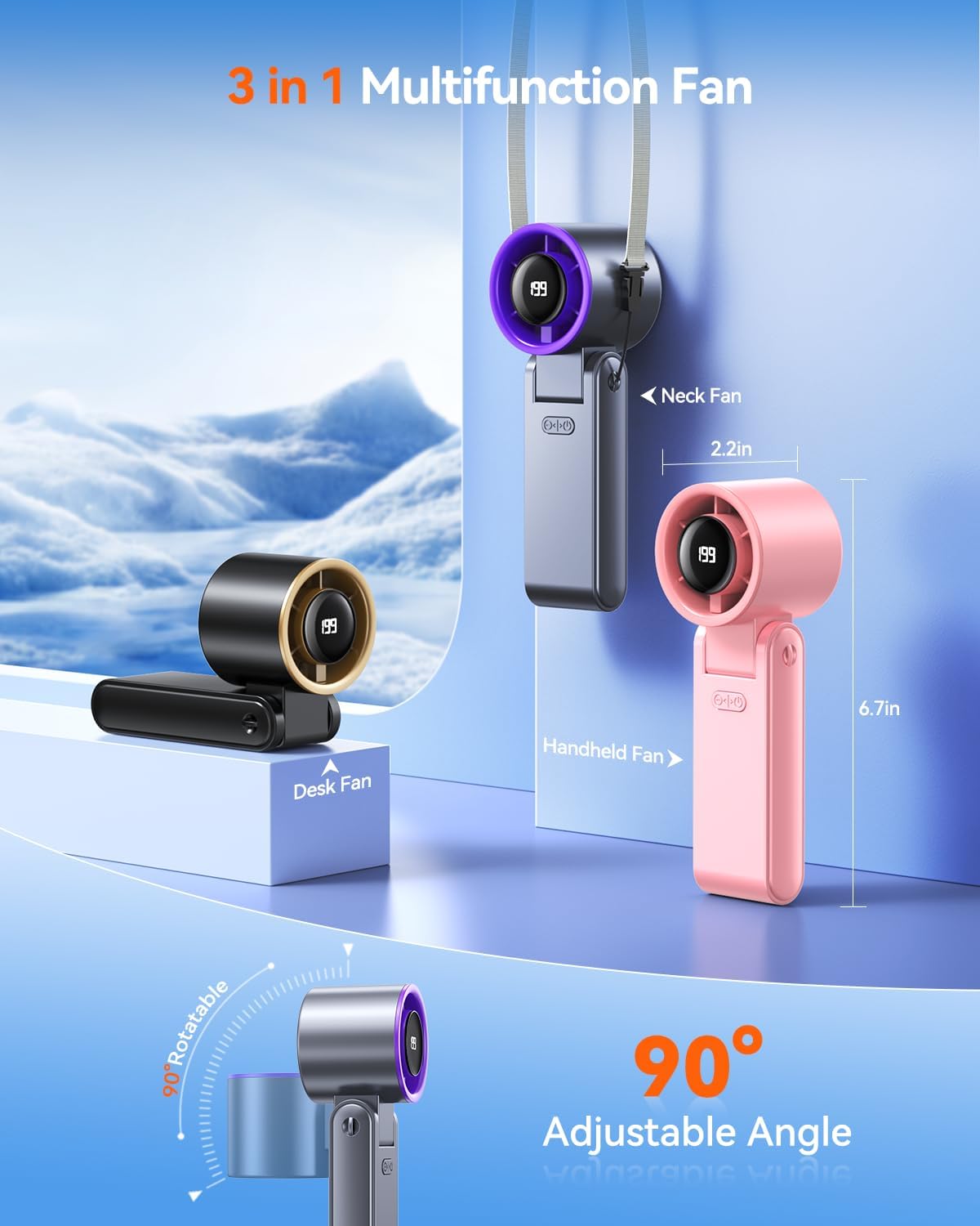 The Portable Handheld Turbo Fan is designed for convenience and efficiency. With 199 gear speeds, it allows you to customize your cooling experience. This fan features a foldable design, making it easy to carry on trips, whether to the beach or for outdoor activities. The 5500mAh rechargeable battery provides up to 24 hours of cooling time, ensuring you stay comfortable throughout the day.