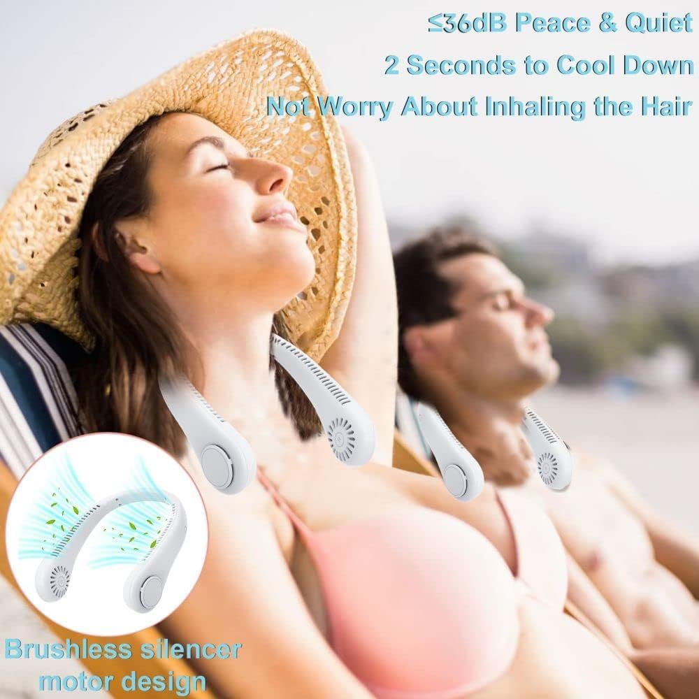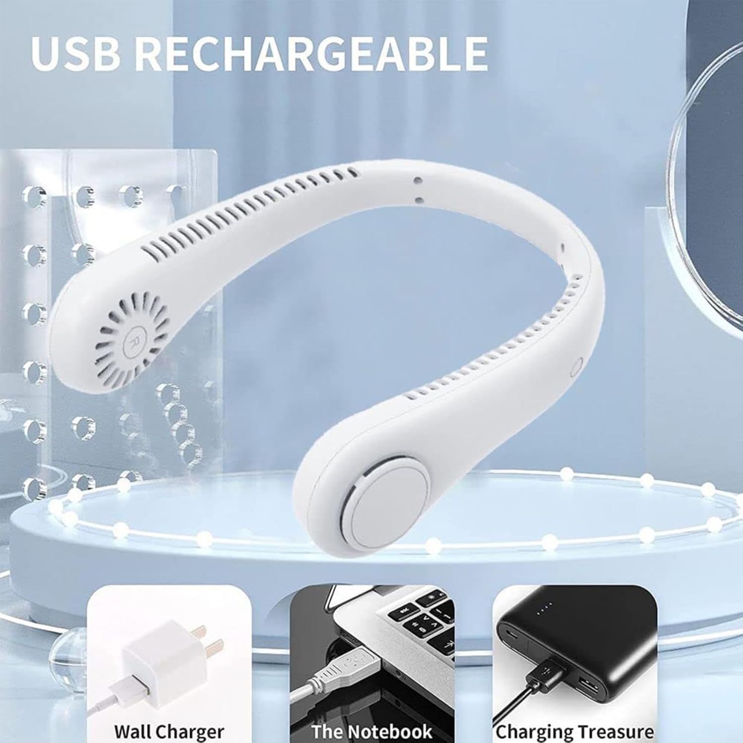 Stay cool this summer with the Portable Neck Fan, designed for both indoor and outdoor use. This upgraded, USB rechargeable fan features a bladeless design for safe and quiet operation. The 360-degree airflow ensures you receive a consistent breeze, making it perfect for various activities such as traveling, sports, or simply enjoying a sunny day. Its fashionable design not only helps you beat the heat but also adds a stylish touch to your outfit. Made from high-quality silicone, the neck fan is soft against the skin, preventing slipping and discomfort during extended wear.