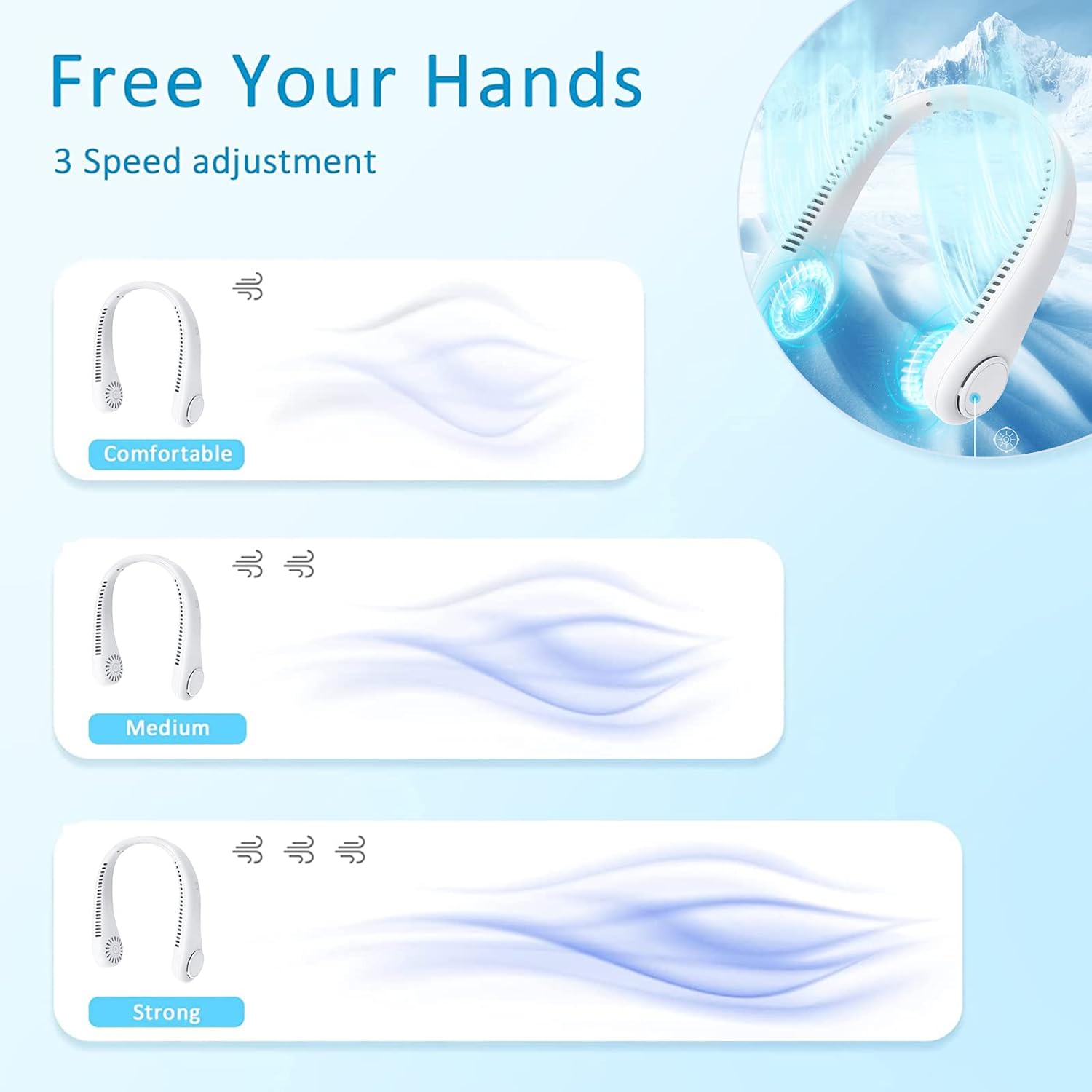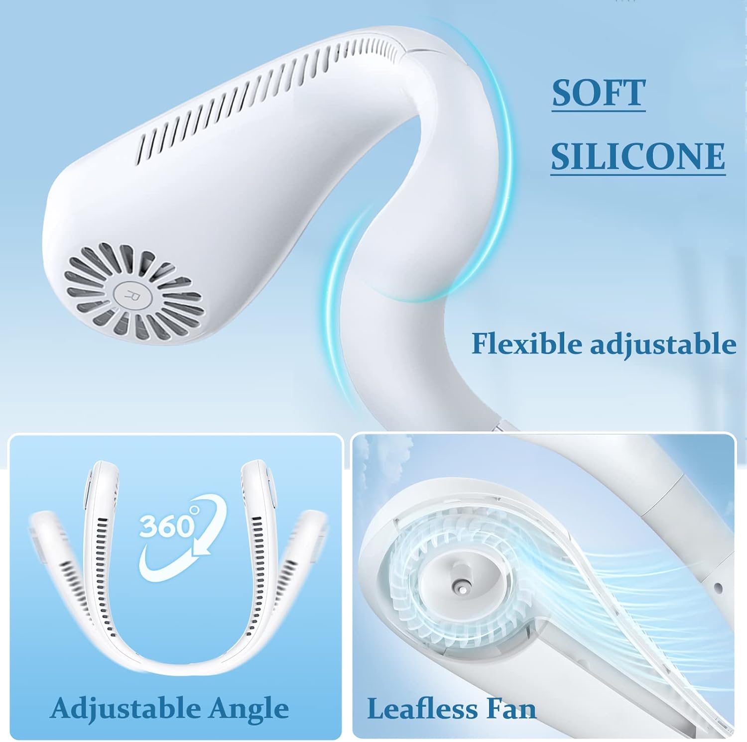 Portable Neck Fan Upgraded, USB Rechargeable Bladeless Cooling Fan, Quiet Neck Cooler Personal Hanging Fan, 360 Degrees Airflow Neck Fans for Indoor Outdoor Travel Sports