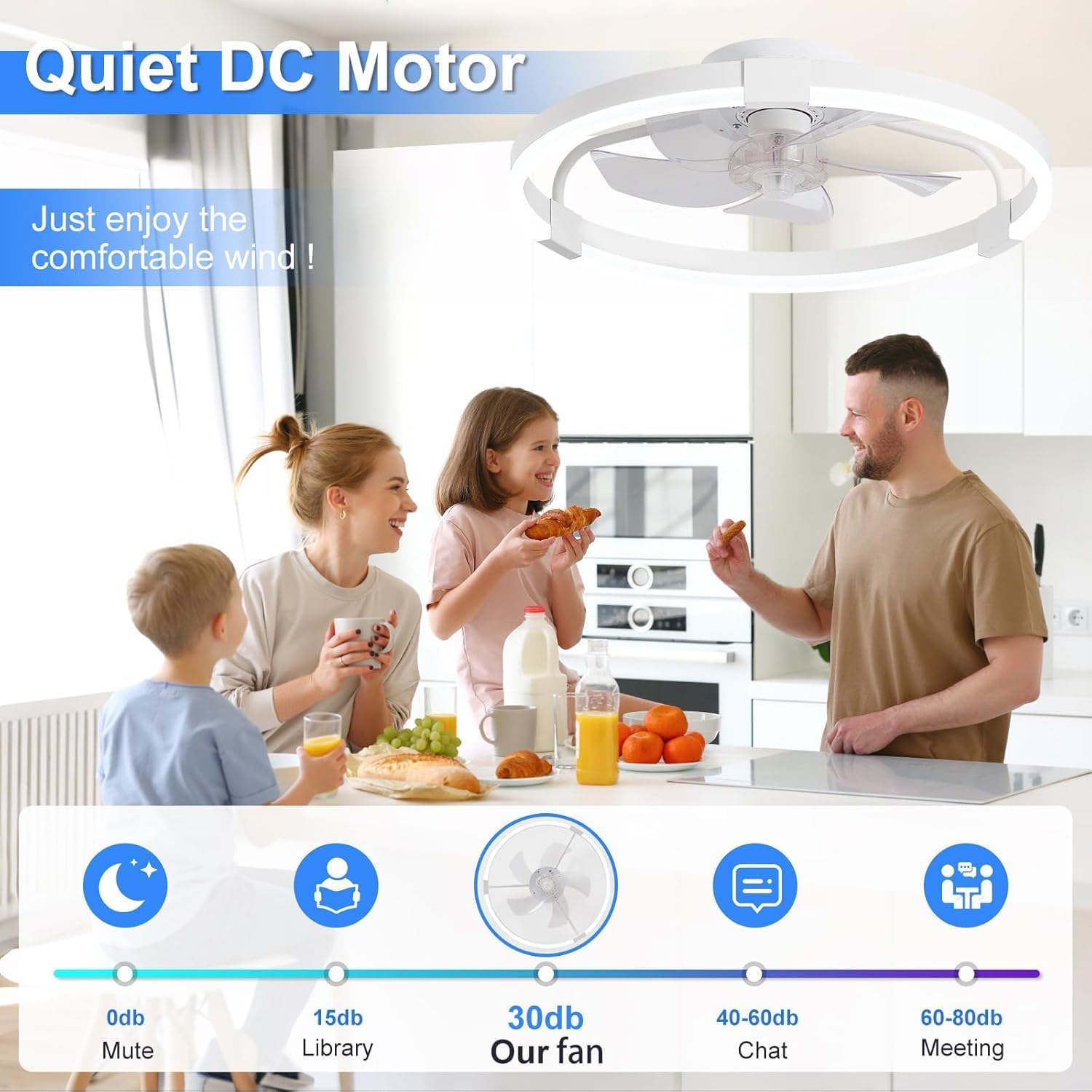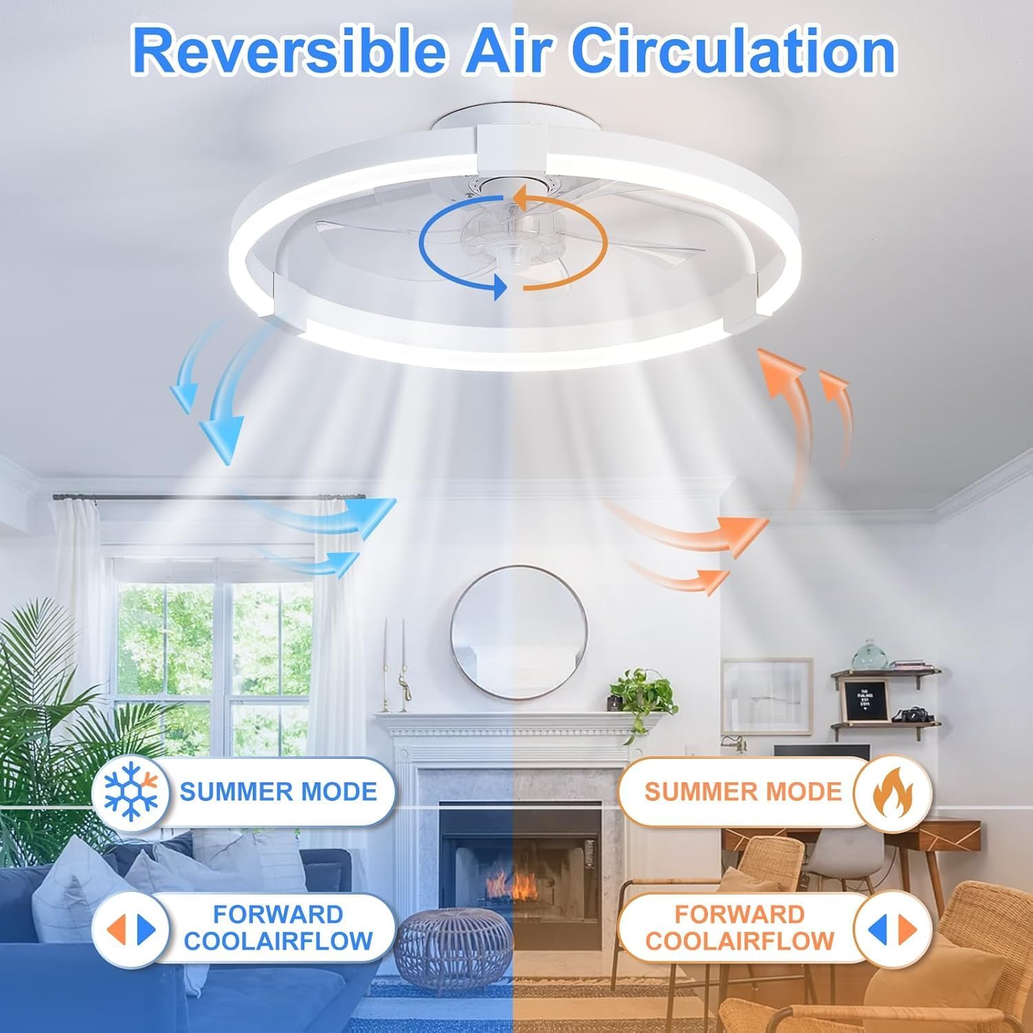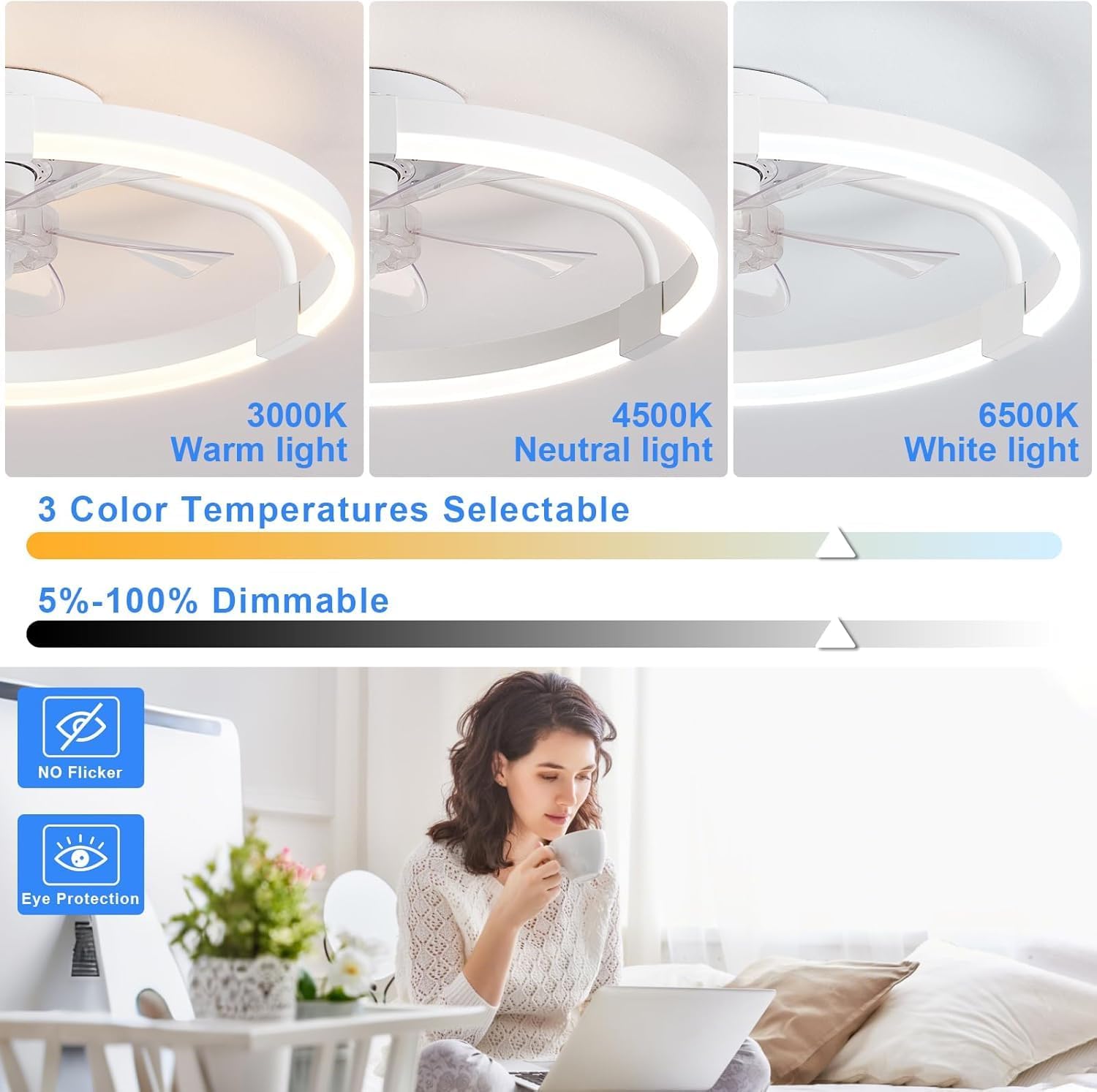 POWROL Ceiling Fans with Lights and Remote, 20 Inch 6 Speeds Reversible Flush Mount Ceiling Fan with Light, LED Dimmable Modern Low Profile Ceiling Fan for Bedroom Kitchen