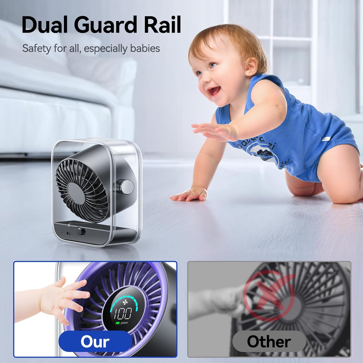 The Rechargeable USB Desk Fan is designed for versatility and convenience. With its quiet operation and turbo airflow, it provides a refreshing breeze without disturbing your peace. The fan features a digital display and offers 100 speed settings, allowing you to customize your airflow according to your needs. Its 90° rotating head ensures that air circulates effectively in any direction.