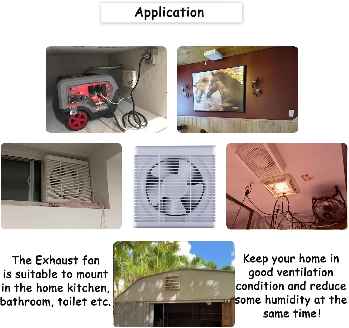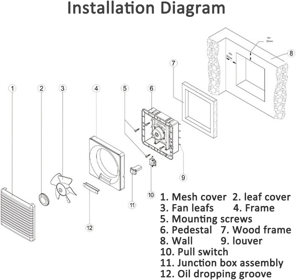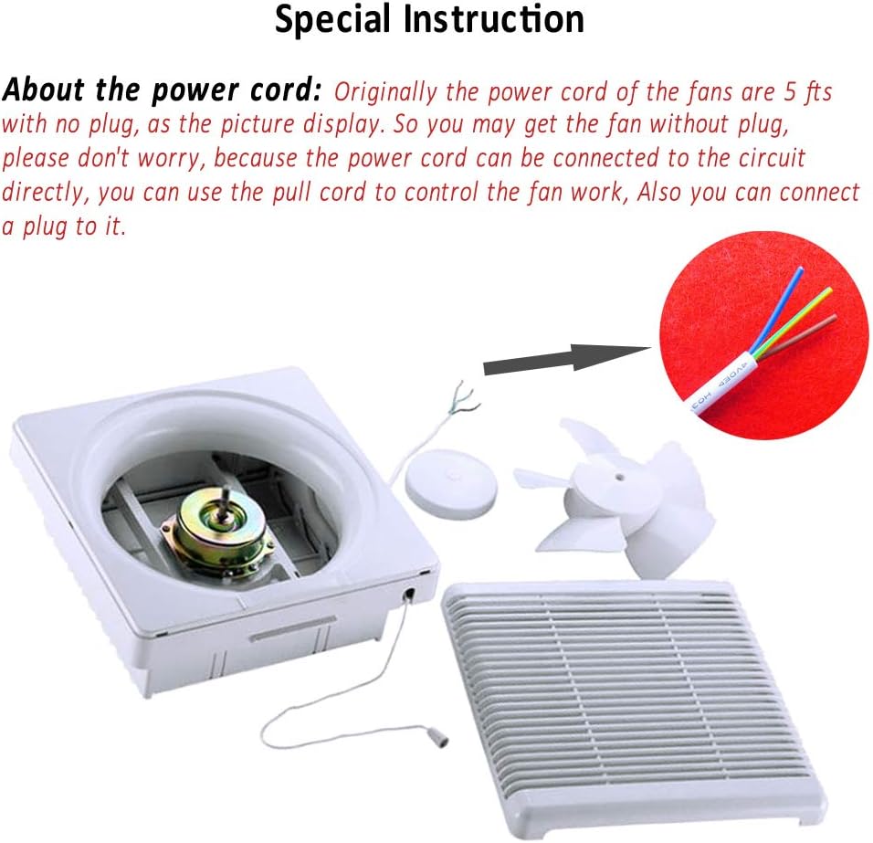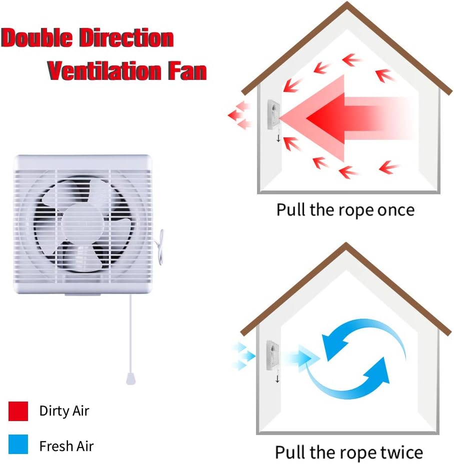 The SAILFLO 8 Inch Wall Mounted Exhaust Fan is designed for effective ventilation in various spaces such as bathrooms, kitchens, attics, and basements. This fan features a double direction airflow system, allowing it to exhaust air out or draw fresh air in with just a pull of the cord. With a powerful 300 CFM airflow, it helps maintain a comfortable indoor environment by promoting air circulation.