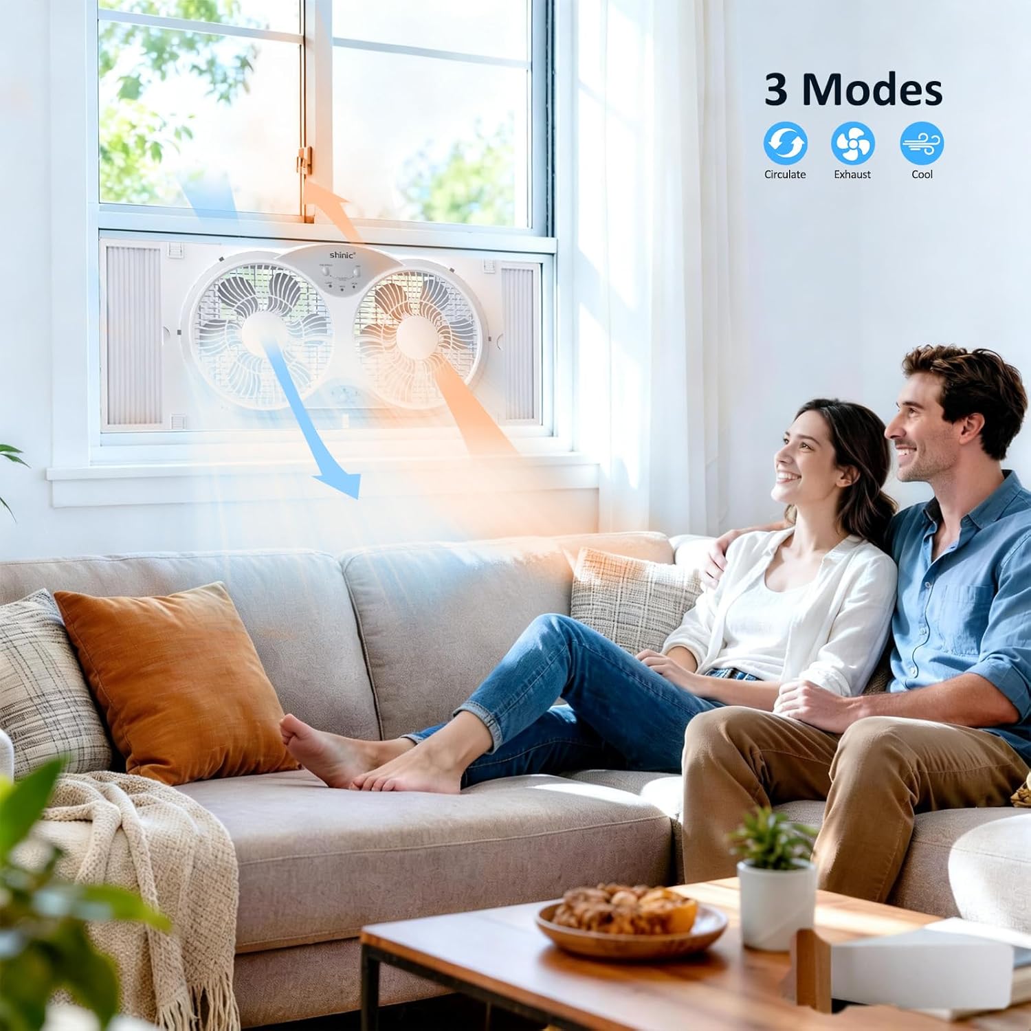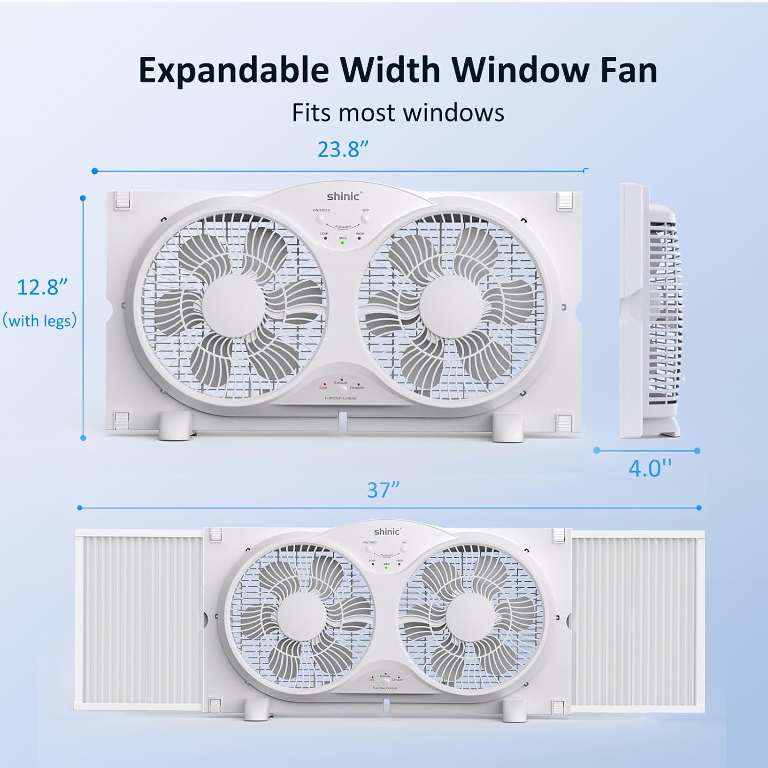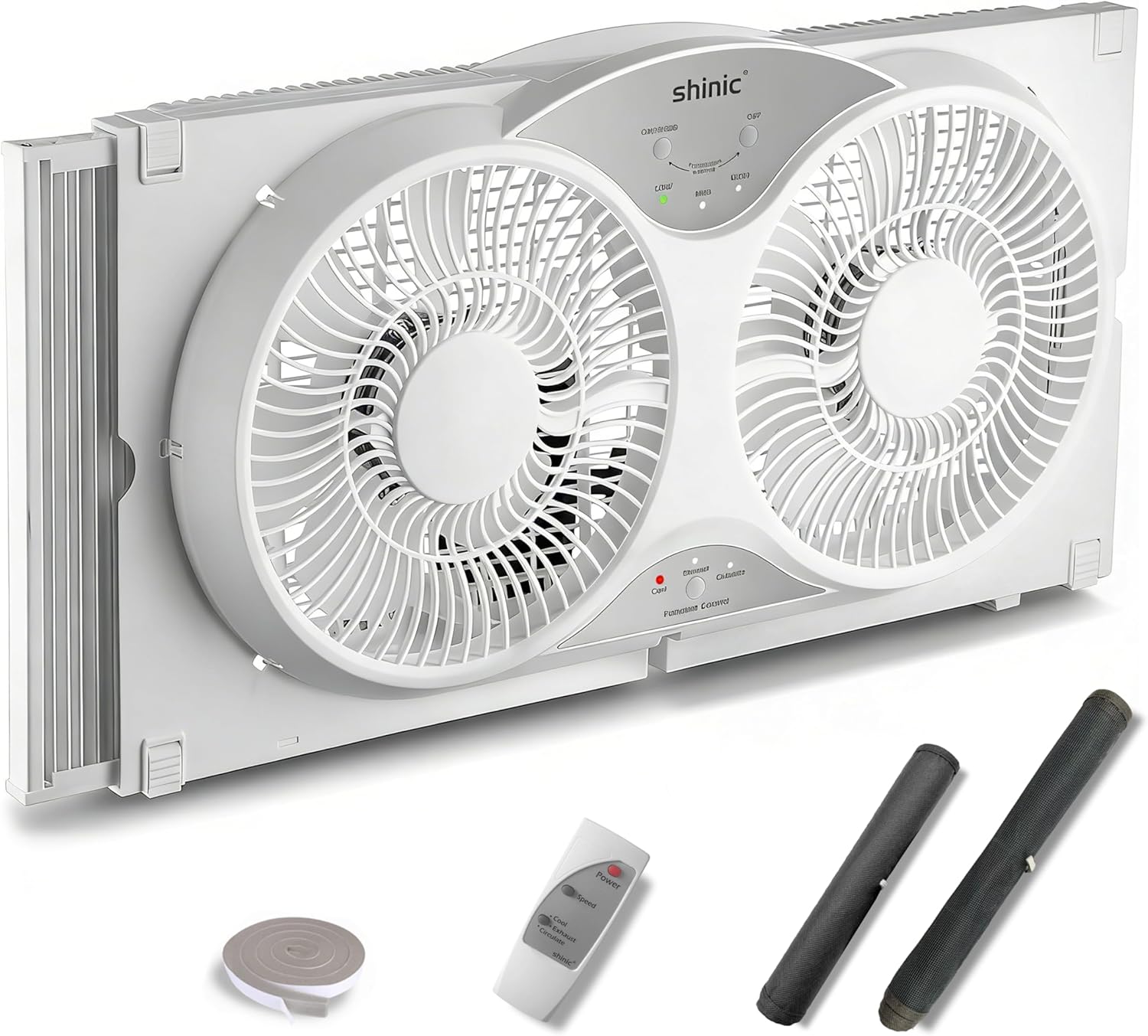 shinic 9″ Twin Window Fan with Remote Control,Reversible Airflow,Removable Cover,3 Speeds, 3 Modes, Expandable Panels (From 24″ to 37″),ETL Certified, White