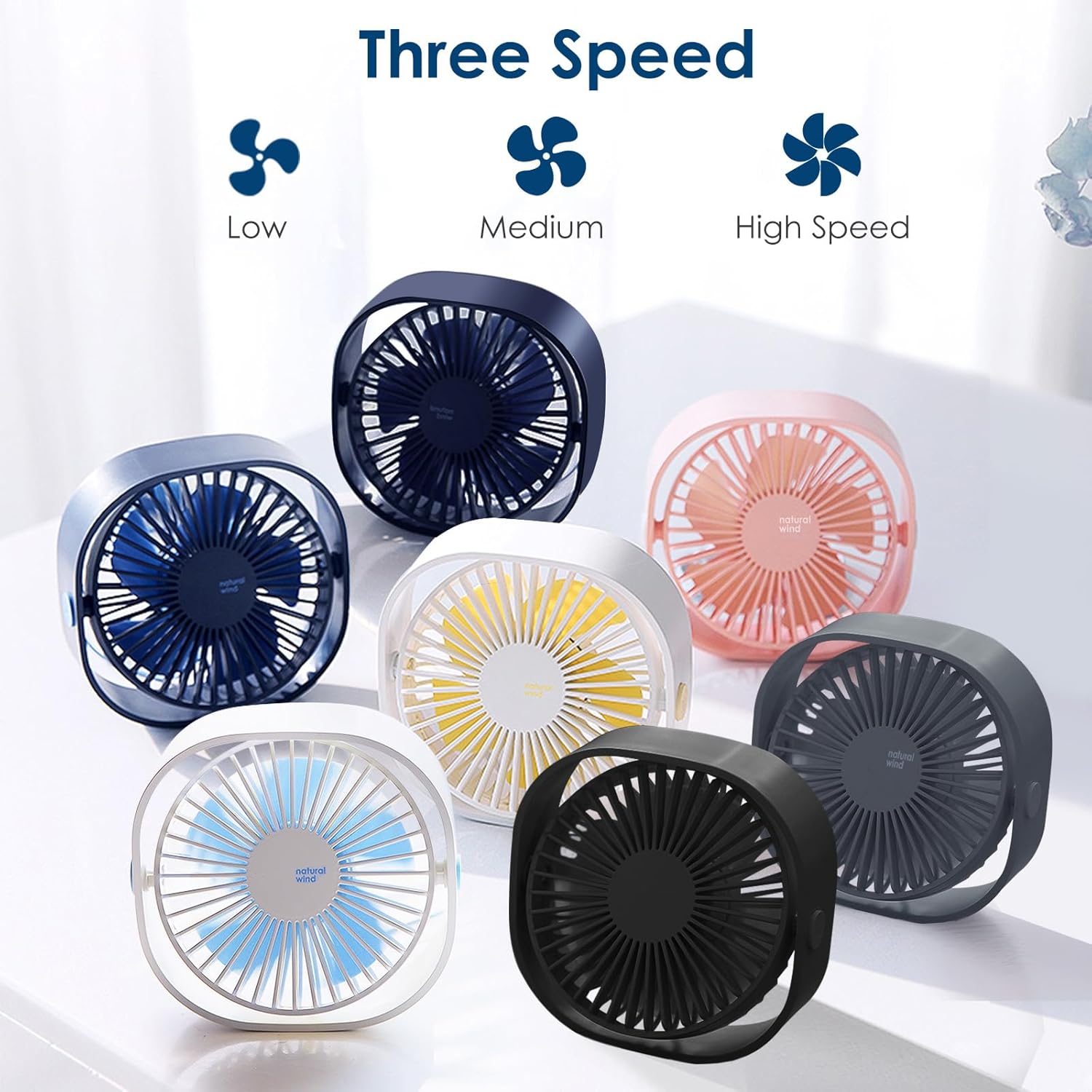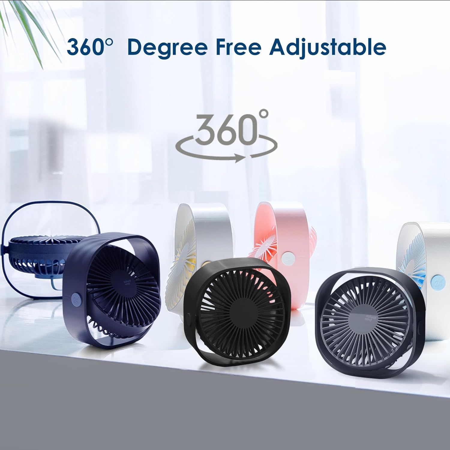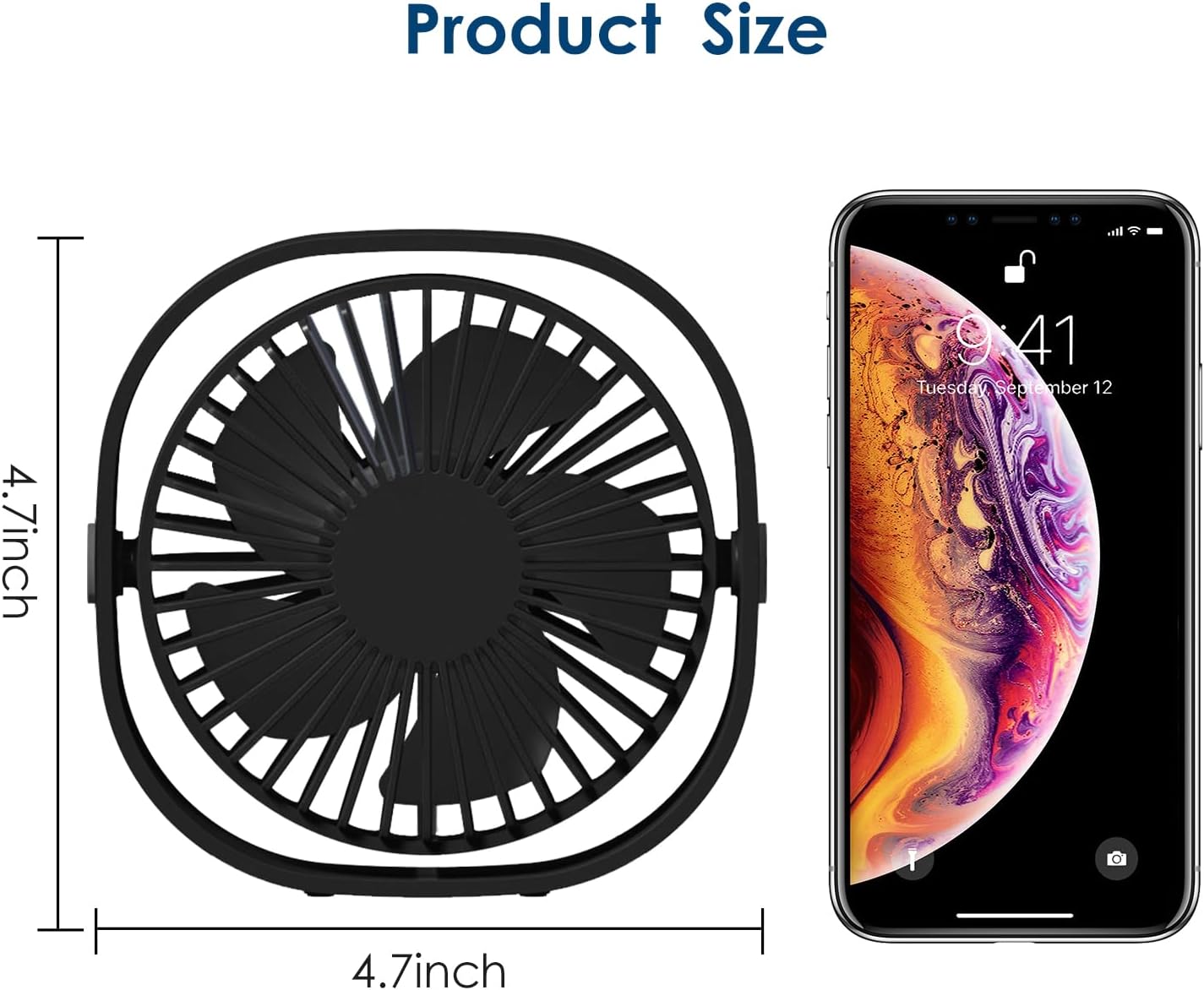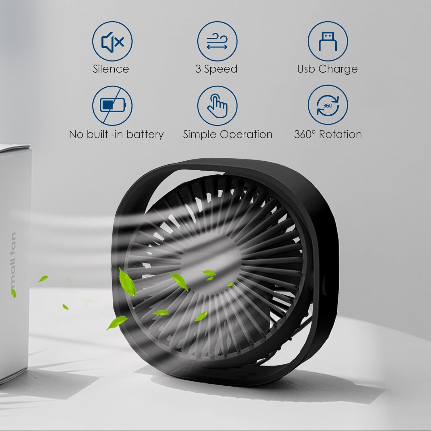Simpeak USB Fan, Portable Small Desk Fan Quiet (No Battery), 3 Speed 360° Adjustable Mini Table Fan USB, Personal Fan for Home Office Bedroom, Black