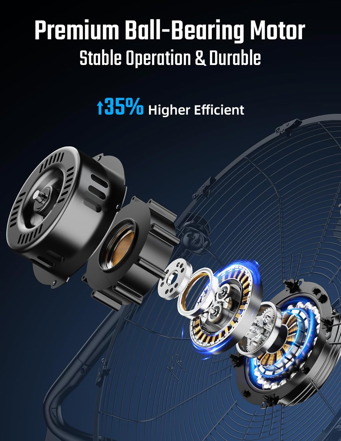 The Simple Deluxe 18 Inch 3-Speed High Velocity Heavy Duty Metal Industrial Floor Fan is designed for robust performance in various settings such as warehouses, workshops, and basements. This fan features a durable powder-coated steel construction and a powerful thermally protected motor that operates at 120 volts. With a 360-degree tilt capability, it allows for versatile airflow direction. The rear-mounted controls make it easy to switch between three speed settings, providing flexibility based on your needs.