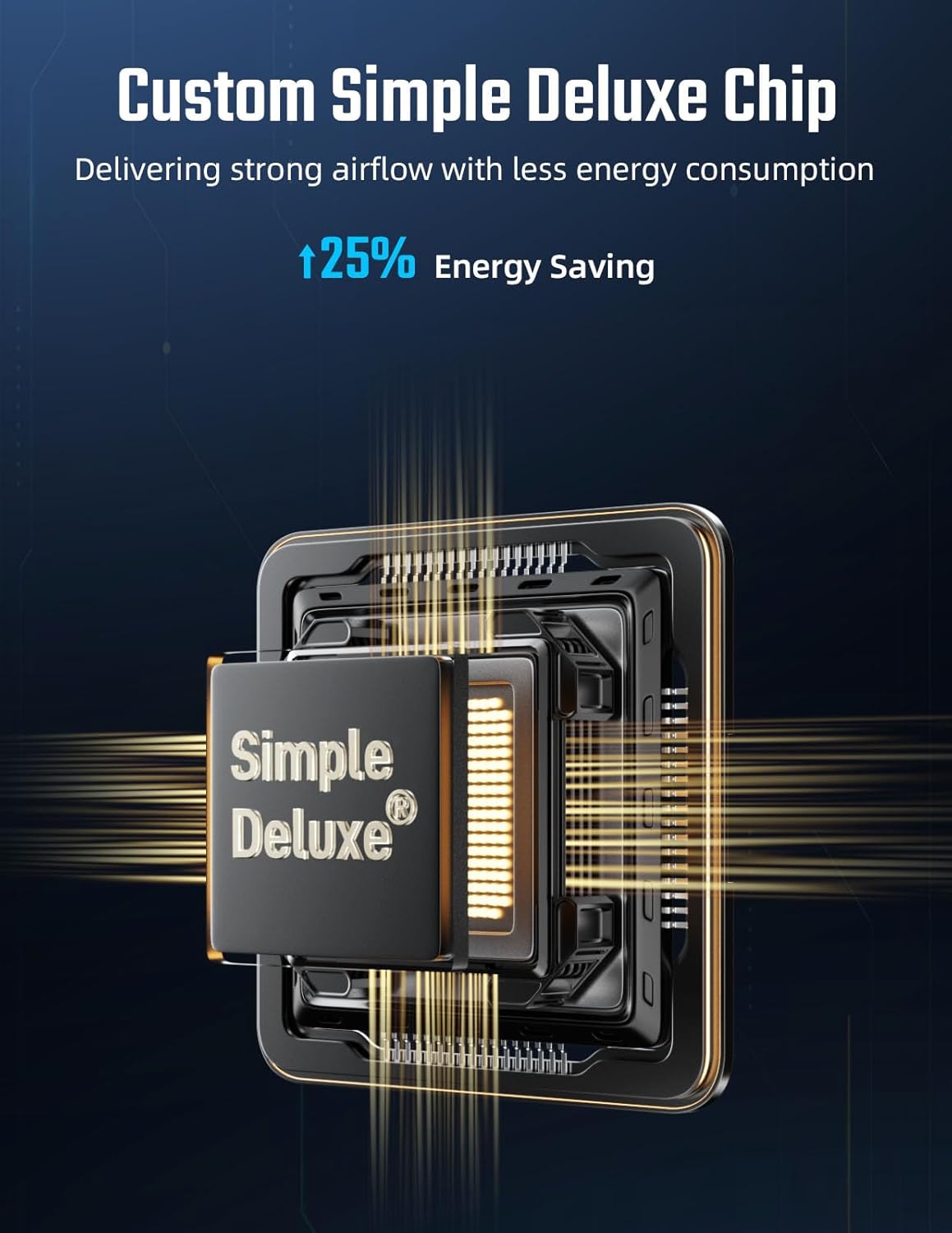 The Simple Deluxe 18 Inch 3-Speed High Velocity Heavy Duty Metal Industrial Floor Fan is designed for effective airflow in various indoor settings. Constructed from durable powder-coated steel, this fan features a robust design that ensures longevity. It tilts a full 360 degrees, allowing you to direct airflow where it's needed most. The fan is equipped with a thermally protected motor that operates at three different speeds, providing versatility for different environments.