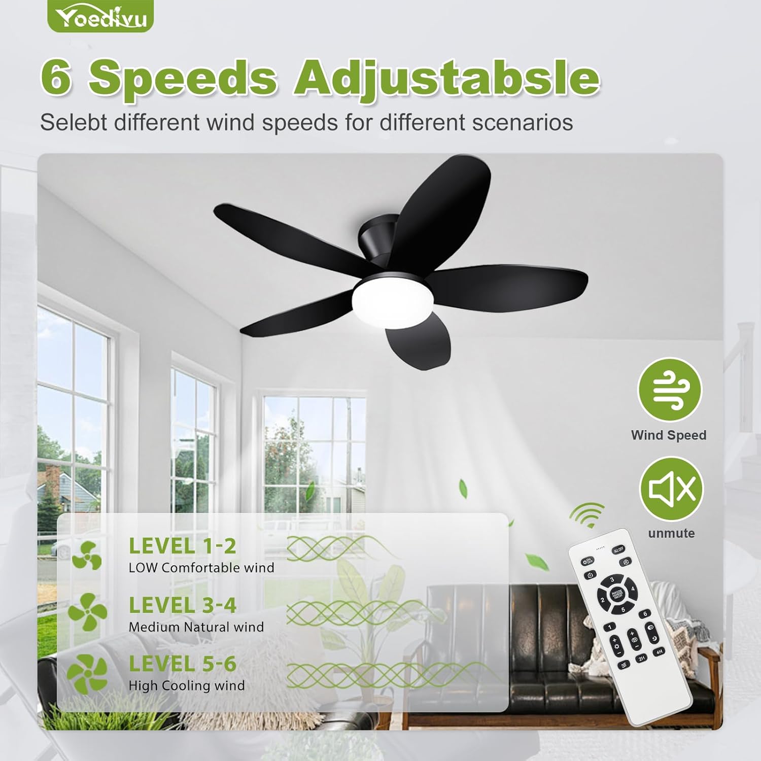 - Six wind speeds for customizable airflow