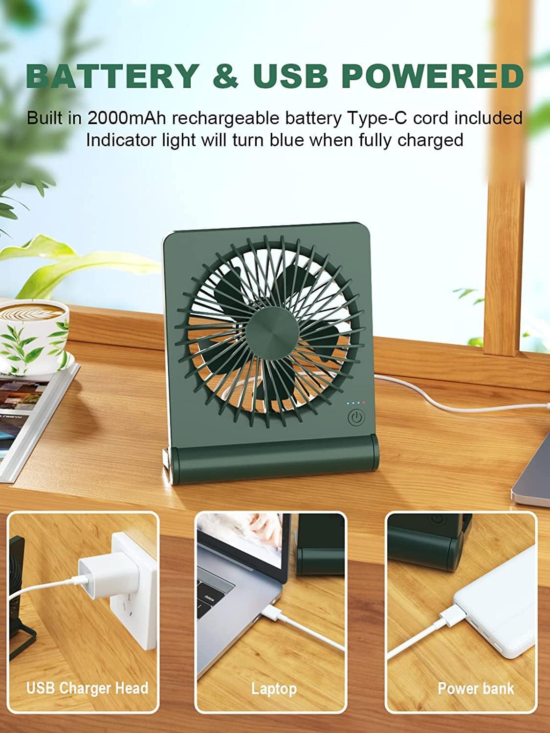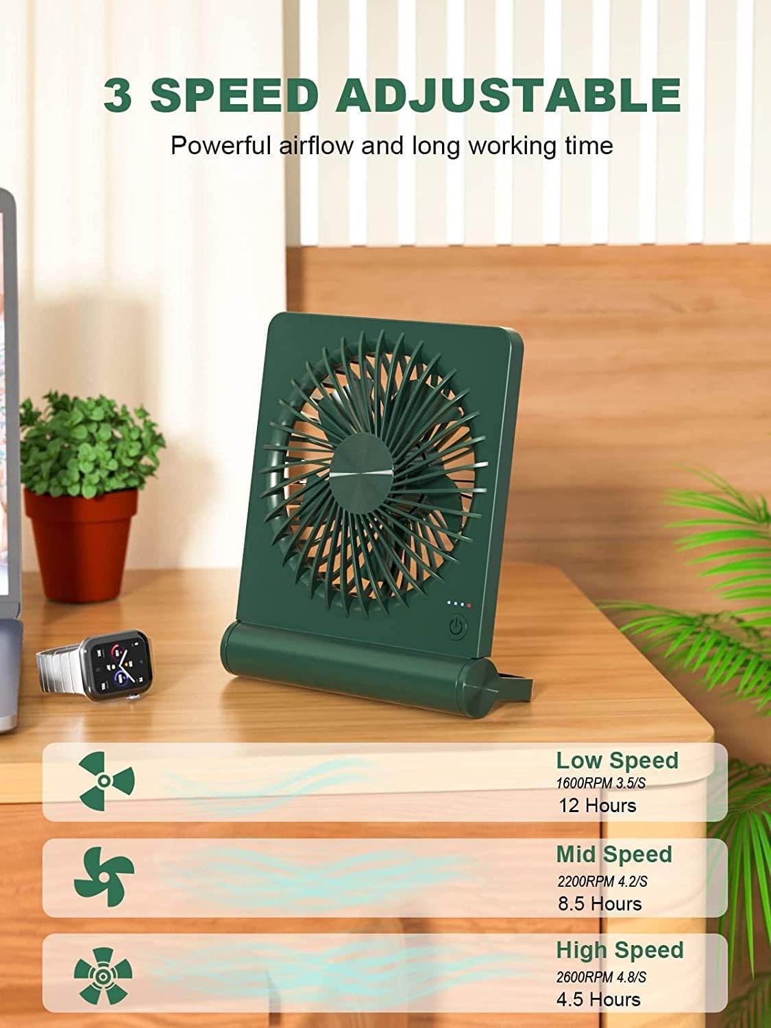 Small Desk Fan,Rechargeable USB Fan Battery Operated,Ultra Quiet, Strong Wind, 3 Speeds Travel Fans